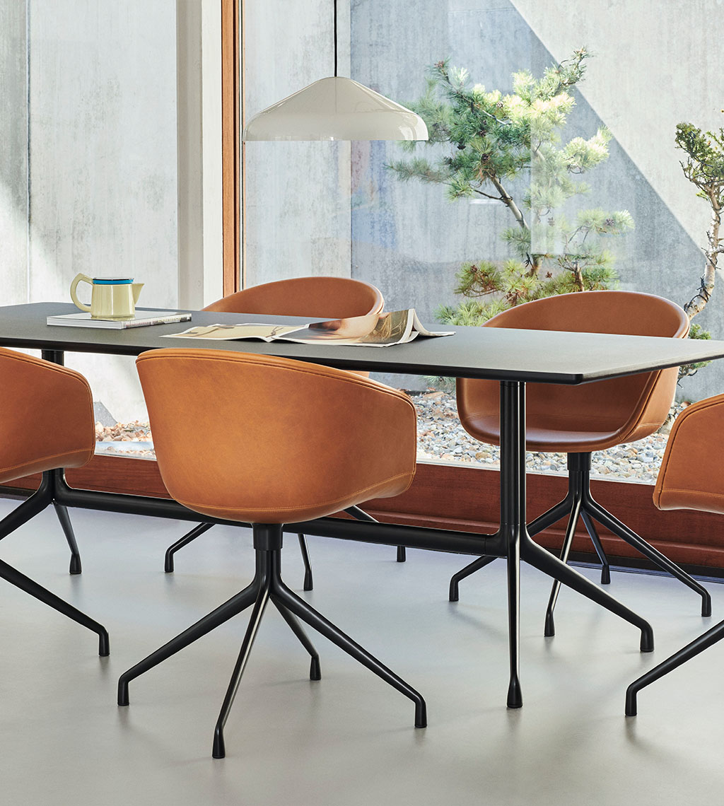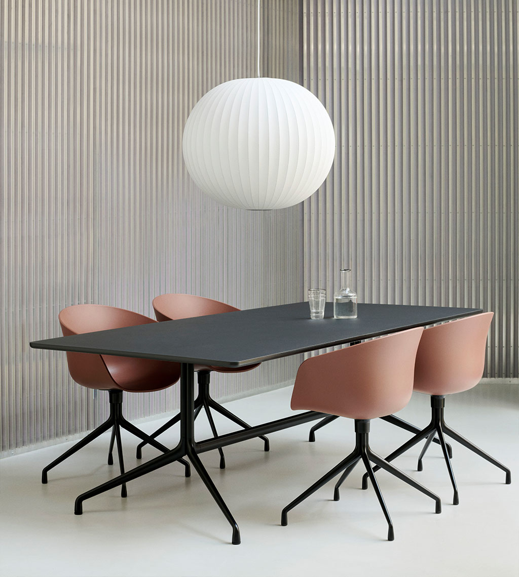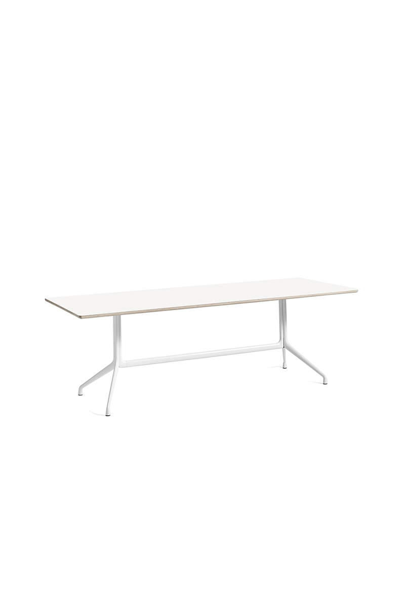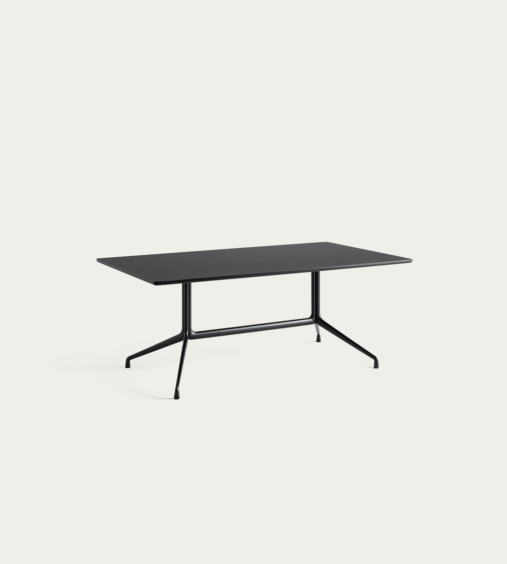 AAT 10 – įvairių matmenų stačiakampis stalas, universaliai pritaikomu dizainu tiek namų, tiek biuro erdvėse. Tvirtas, surišantis stalo rėmas ir dailiai pasistiebusios kojelės, kontrastuoja, kuria lengvumo įspūdį. Klasikinės juoda ir balta spalvos atsako į visus klausimus apie įvairiapusį stalo panaudojimą interjere.