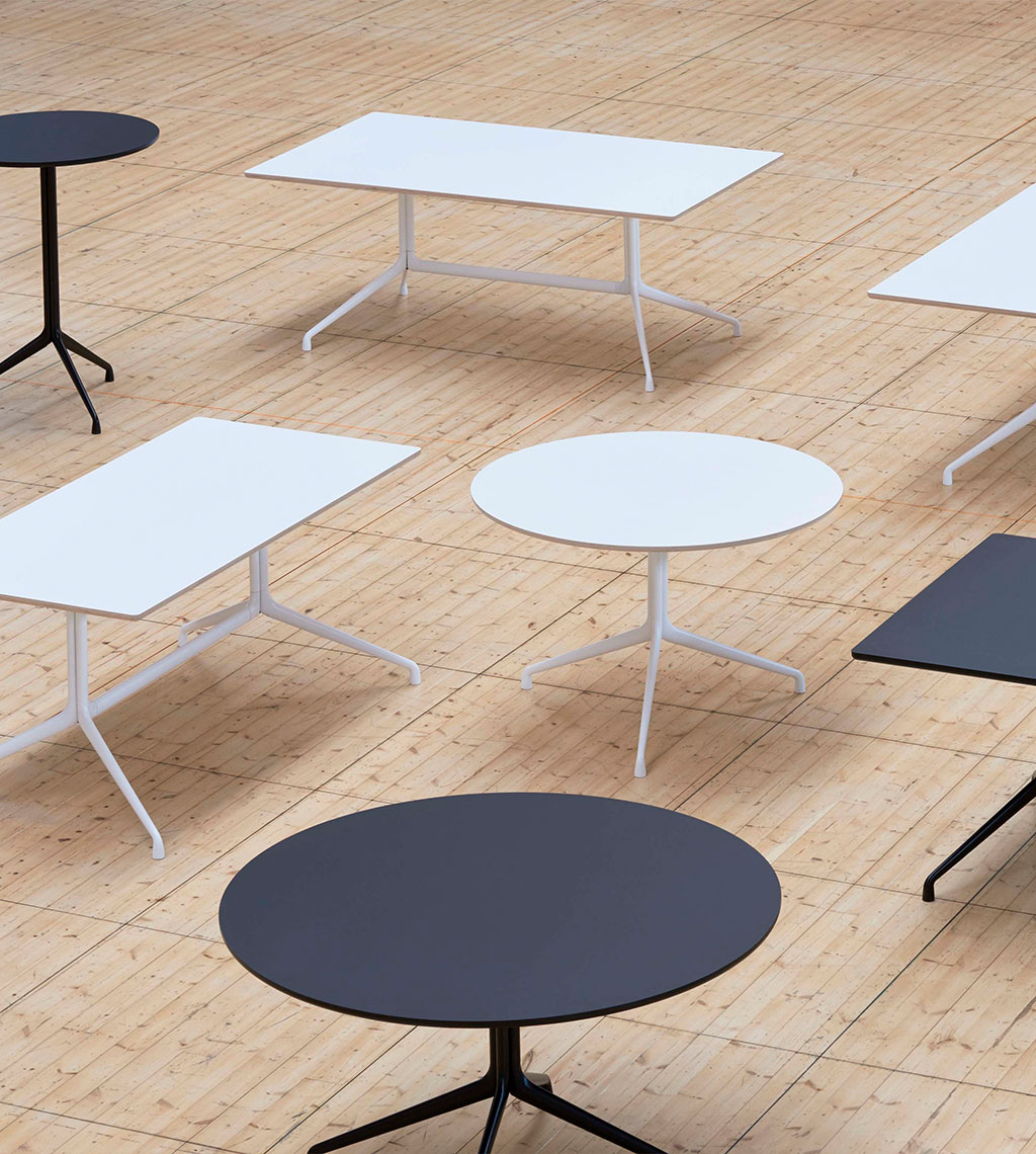 AAT 20 – apvalus pietų stalas. Pasistiebusios kojelės gražiai susilieja centre į tvirtą pagrindo koloną. Klasikinės juoda ir balta spalvos atsako į visus klausimus apie įvairiapusį stalo panaudojimą interjere.
