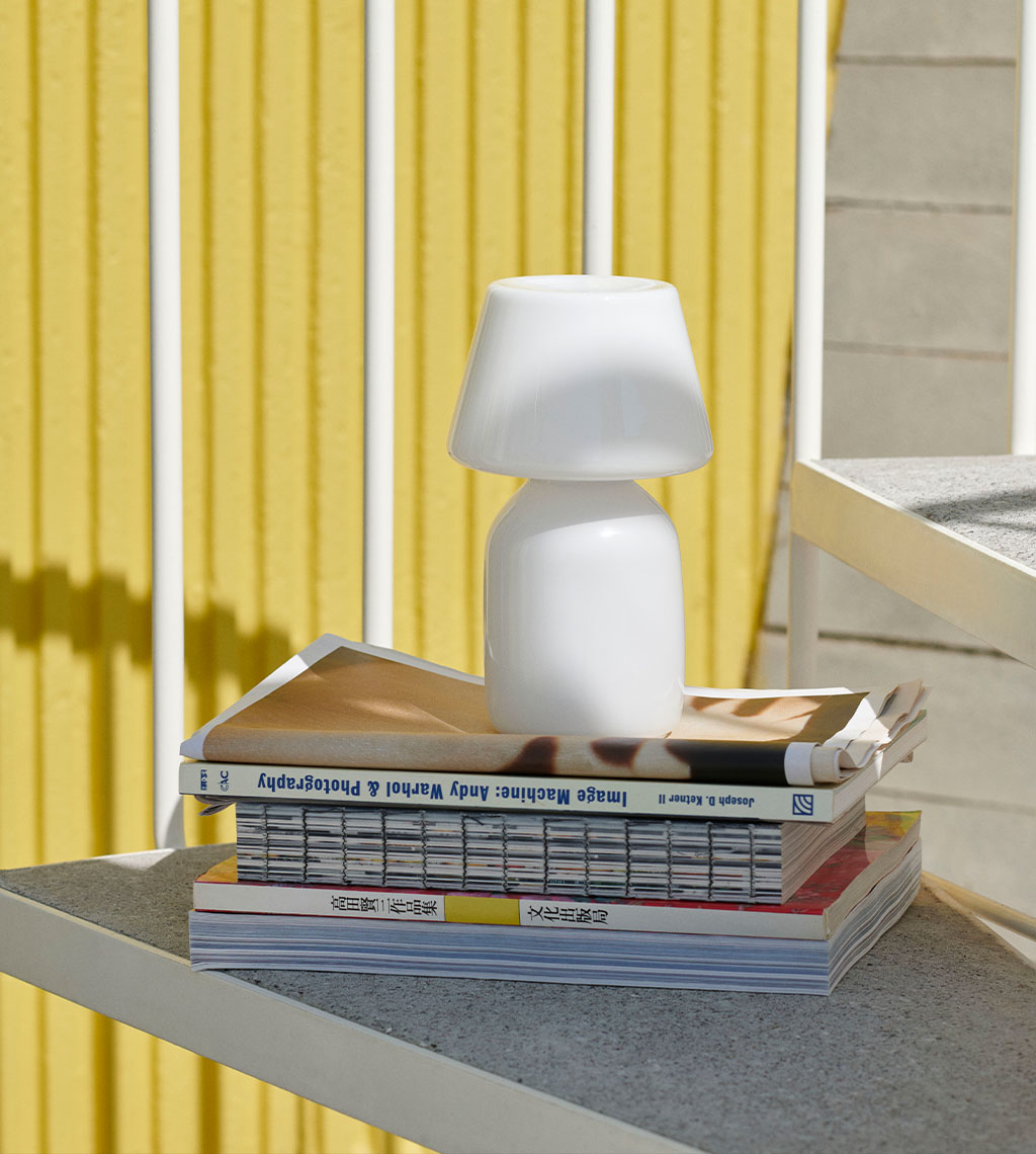 Nešiojamas belaidis šviestuvas APOLLO nuostabiai papildo nuolatinę kolekciją. Sukurtas Studio 0405, šis dizainas visų pirma buvo skirtas madingo Kopenhagos restorano Apollo Bar & Kantine interjerui. Savo siluetu primenantis klasikinį stalinį šviestuvą, APOLLO visgi išsiskiria šiuolaikiška interpretacija, akcentuojant simplistinę, vienalytę formą, įtvirtinamas dizaino aktualumas bei sąsaja su esamu laikmečiu. Tinkamas ir patogus naudoti tiek viduje, tiek ir lauke.