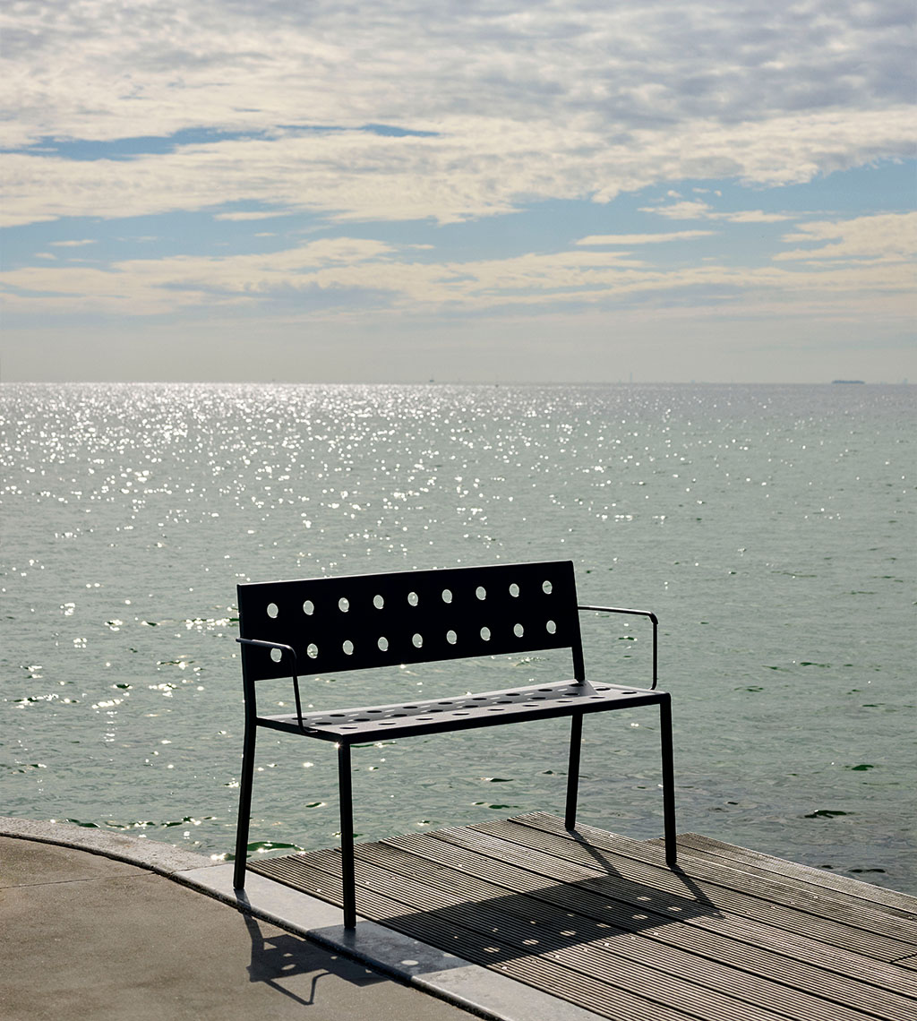 Charakteringo, tačiau universalaus dizaino paieškos brolių Bouroullec kūrybinį žvilgsnįkreipia į lauką. Specialiai HAY sukurta THE BALCONY COLLECTION pasiūlo itin praktiškus lauko erdvių apstatymo sprendimus. Išskirtinį charakterį šiai kolekcijai dovanoja speciali plieno perforavimo technika, leidžianti ne tik efektyviai išskirstyti baldams tenkančią apkrovą bei baldų paviršiuje besikaupiančią drėgmę, tačiau ir suteikianti ypatingo estetinio žavesio. Nors pavadinimas kolekcijos funkcinį vektorių brėžia balkono erdvės link, ši serija atliepia gerokai platesnio spektro poreikius, todėl neabejotina, kad BALCONY sutinkami visur: terasose, lauko kavinėse, soduose ar parkuose. Žavi spalvų gama BALCONY suteikia dar daugiau estetinio patrauklumo.