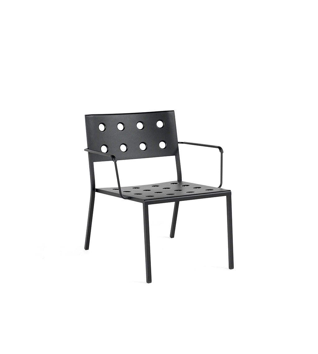 Charakteringo, tačiau universalaus dizaino paieškos brolių Bouroullec kūrybinį žvilgsnį kreipia į lauką. Specialiai HAY sukurta THE BALCONY COLLECTION pasiūlo itin praktiškus lauko erdvių apstatymo sprendimus. Išskirtinį charakterį šiai kolekcijai dovanoja speciali plieno perforavimo technika, leidžianti ne tik efektyviai išskirstyti baldams tenkančią apkrovą bei baldų paviršiuje besikaupiančią drėgmę, tačiau ir suteikianti ypatingo estetinio žavesio. Nors pavadinimas kolekcijos funkcinį vektorių brėžia balkono erdvėslink, ši serija atliepia gerokai platesnio spektro poreikius, todėl neabejotina, kad BALCONY sutinkami visur: terasose, lauko kavinėse, soduose ar parkuose. Žavi spalvų gama BALCONY suteikia dar daugiau estetinio patrauklumo.