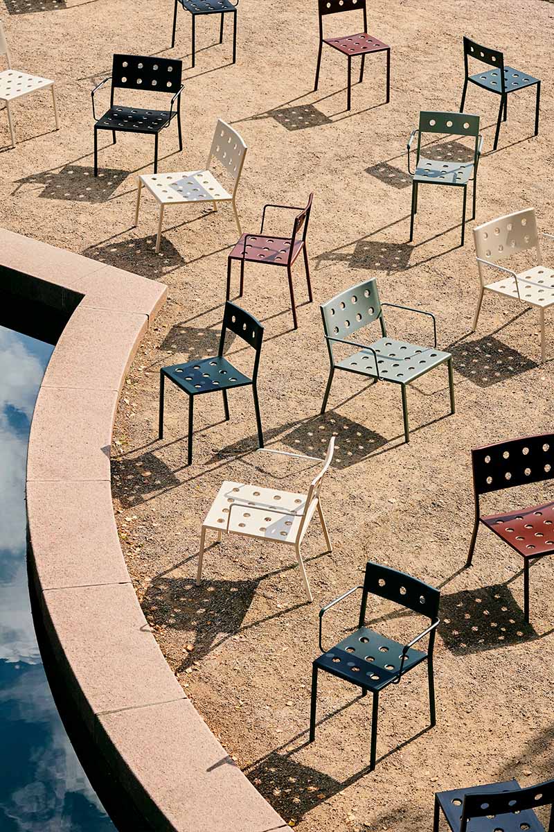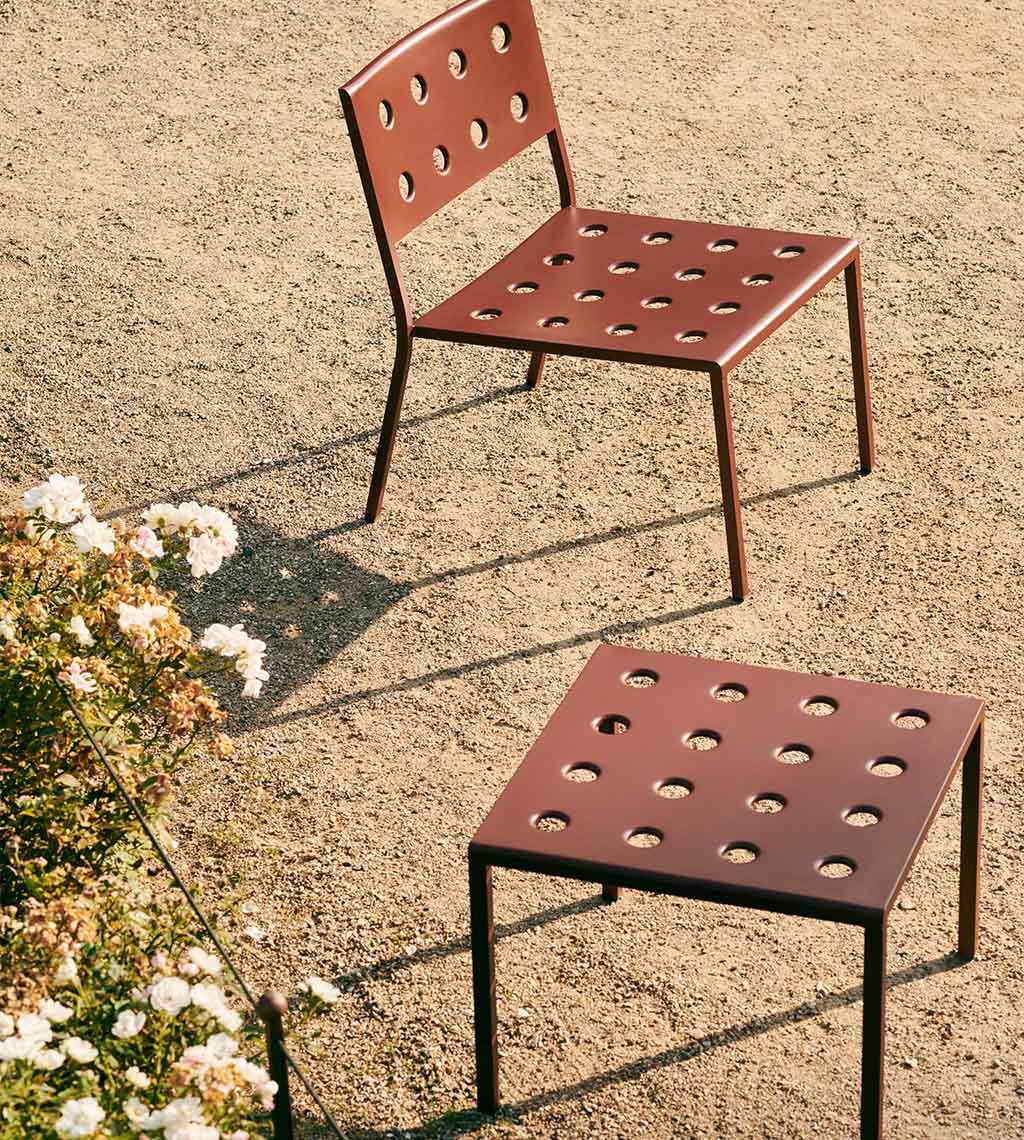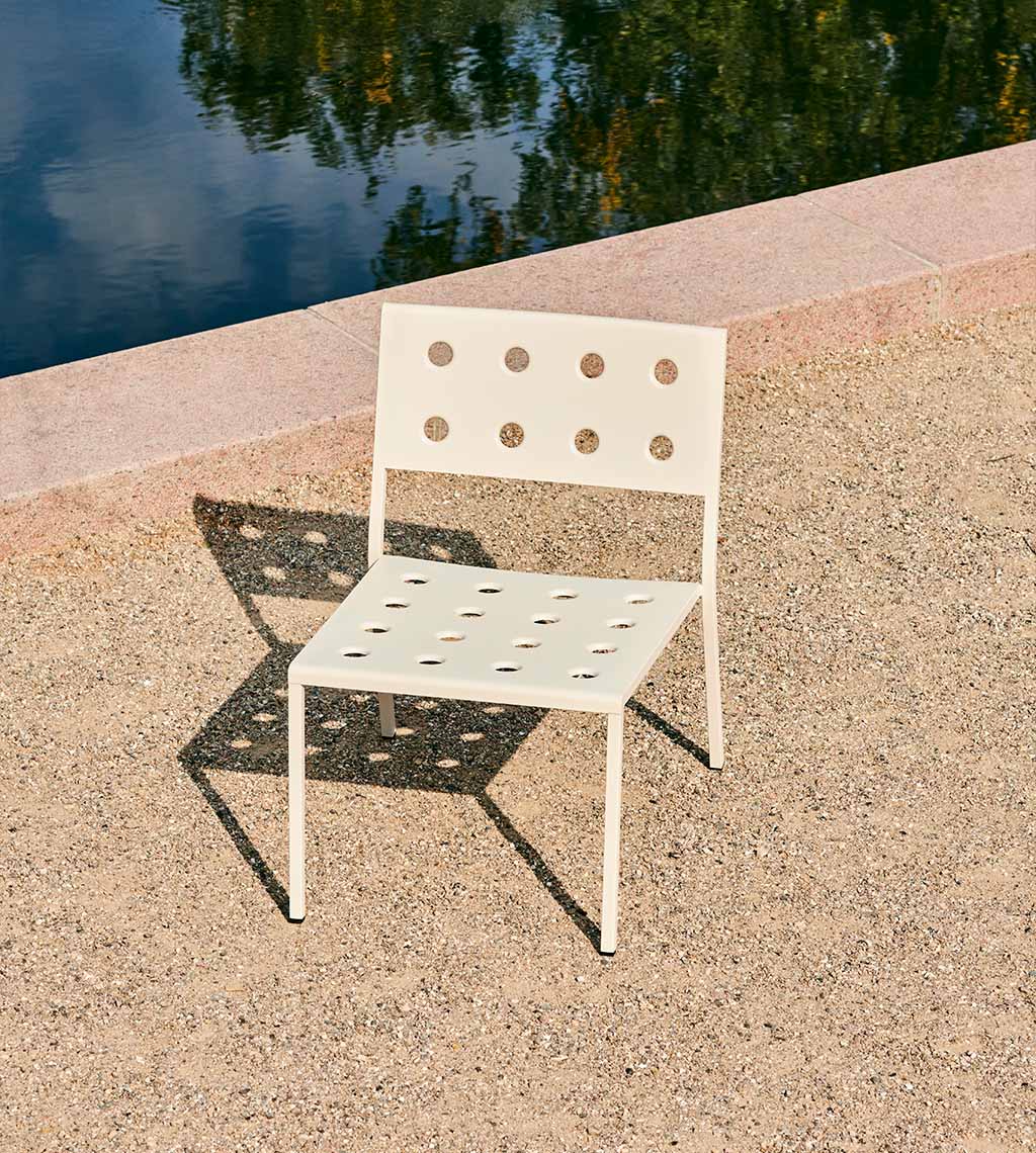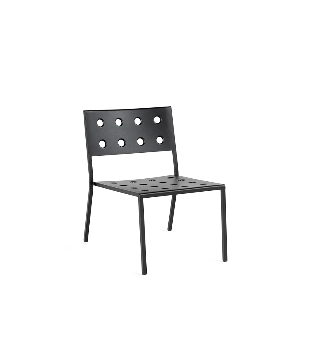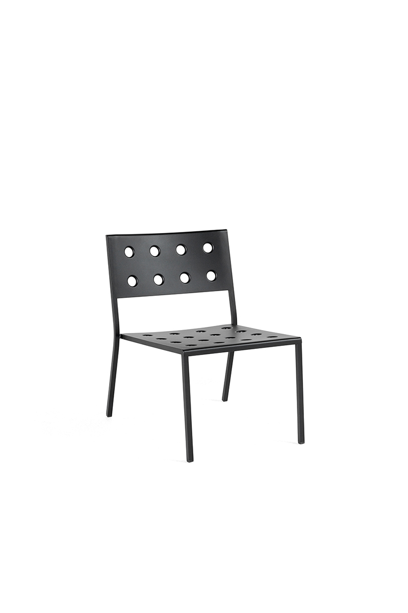 Charakteringo, tačiau universalaus dizaino paieškos brolių Bouroullec kūrybinį žvilgsnį kreipia į lauką. Specialiai HAY sukurta THE BALCONY COLLECTION pasiūlo itin praktiškus lauko erdvių apstatymo sprendimus. Išskirtinį charakterį šiai kolekcijai dovanoja speciali plieno perforavimo technika, leidžianti ne tik efektyviai išskirstyti baldams tenkančią apkrovą bei baldų paviršiuje besikaupiančią drėgmę, tačiau ir suteikianti ypatingo estetinio žavesio. Nors pavadinimas kolekcijos funkcinį vektorių brėžia balkono erdvės link, ši serija atliepia gerokai platesnio spektro poreikius, todėl neabejotina, kad BALCONY sutinkami visur: terasose, lauko kavinėse, soduose ar parkuose. Žavi spalvų gama BALCONY suteikia dar daugiau estetinio patrauklumo.