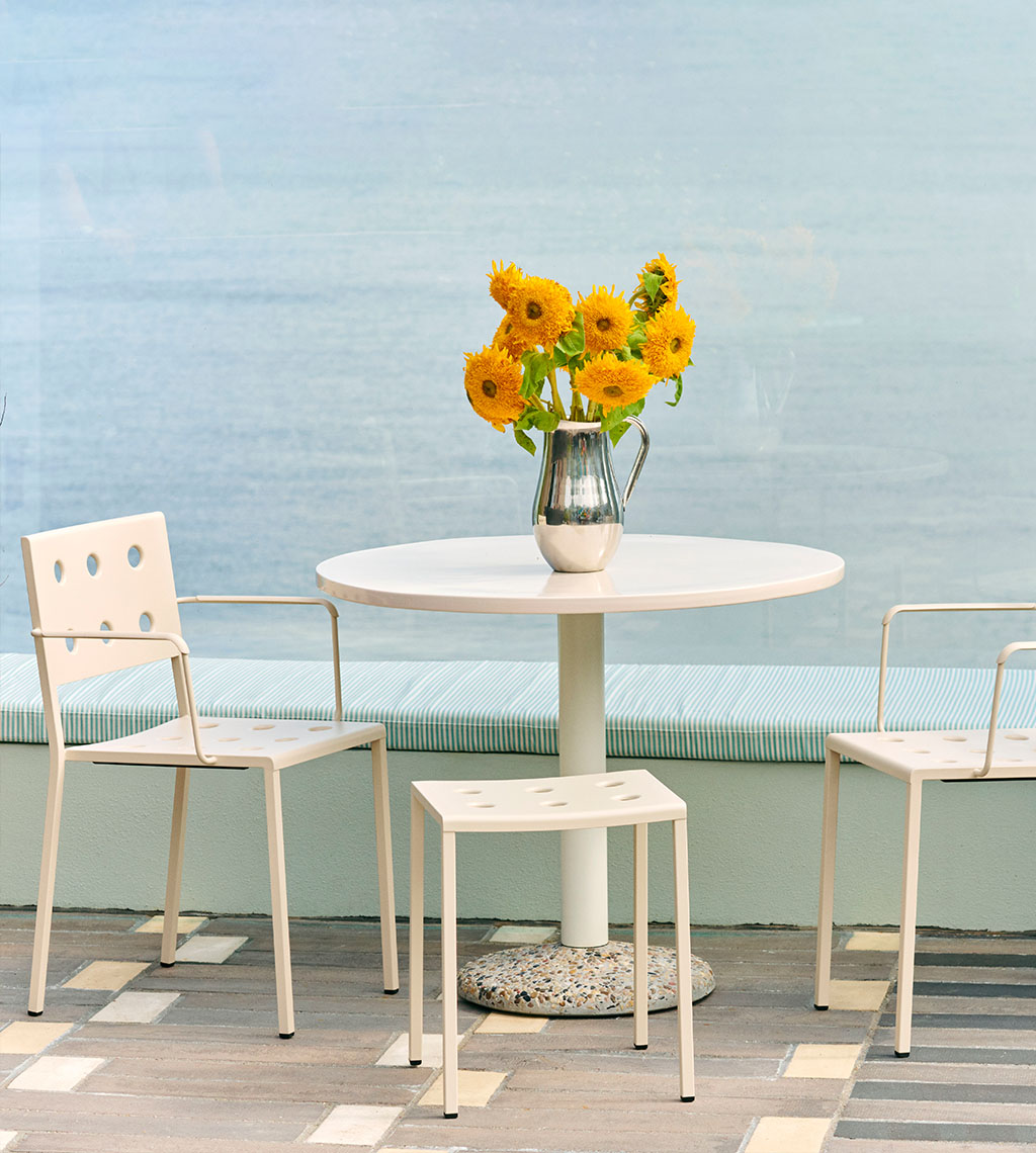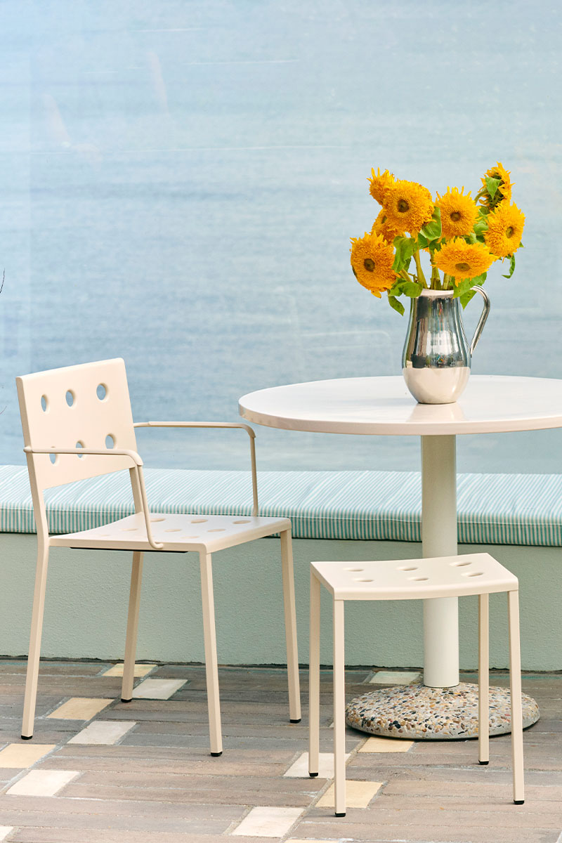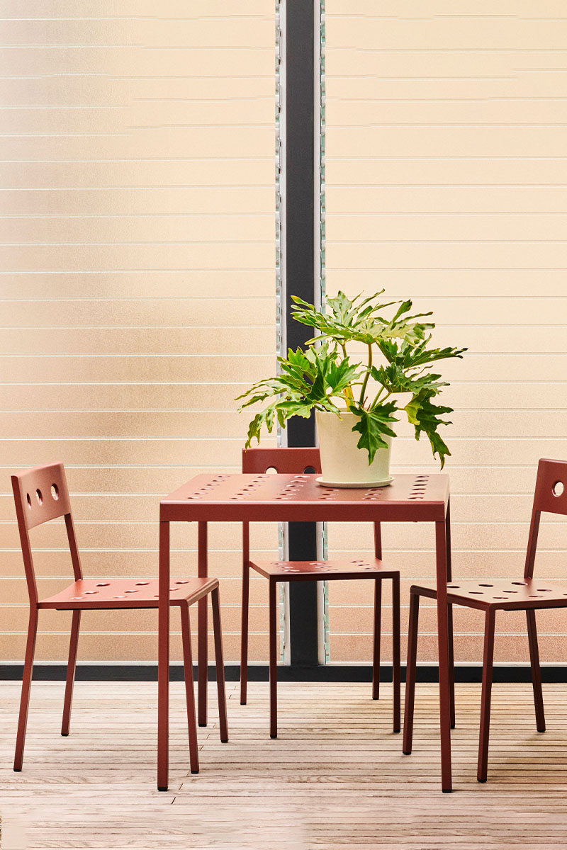 Charakteringo, tačiau universalaus dizaino paieškos brolių Bouroullec kūrybinį žvilgsnį kreipia į lauką. Specialiai HAY sukurta THE BALCONY COLLECTION pasiūlo itin praktiškus lauko erdvių apstatymo sprendimus. Išskirtinį charakterį šiai kolekcijai dovanoja speciali plieno perforavimo technika, leidžianti ne tik efektyviai išskirstyti baldams tenkančią apkrovą bei baldų paviršiuje besikaupiančią drėgmę, tačiau ir suteikianti ypatingo estetinio žavesio. Nors pavadinimas kolekcijos funkcinį vektorių brėžia balkono erdvės link, ši serija atliepia gerokai platesnio spektro poreikius, todėl neabejotina, kad BALCONY sutinkami visur: terasose, lauko kavinėse, soduose ar parkuose. Žavi spalvų gama BALCONY suteikia dar daugiau estetinio patrauklumo.