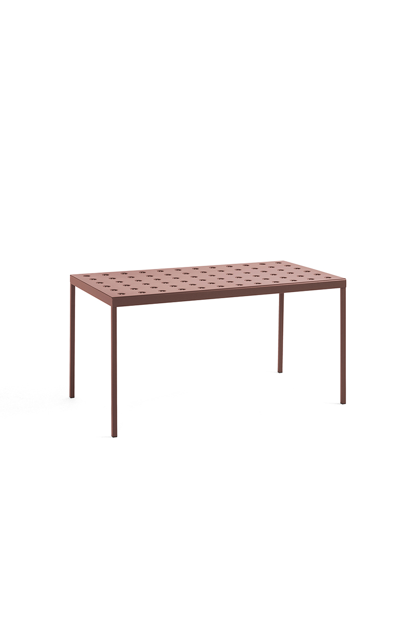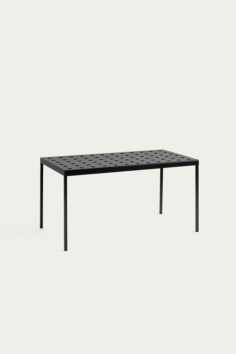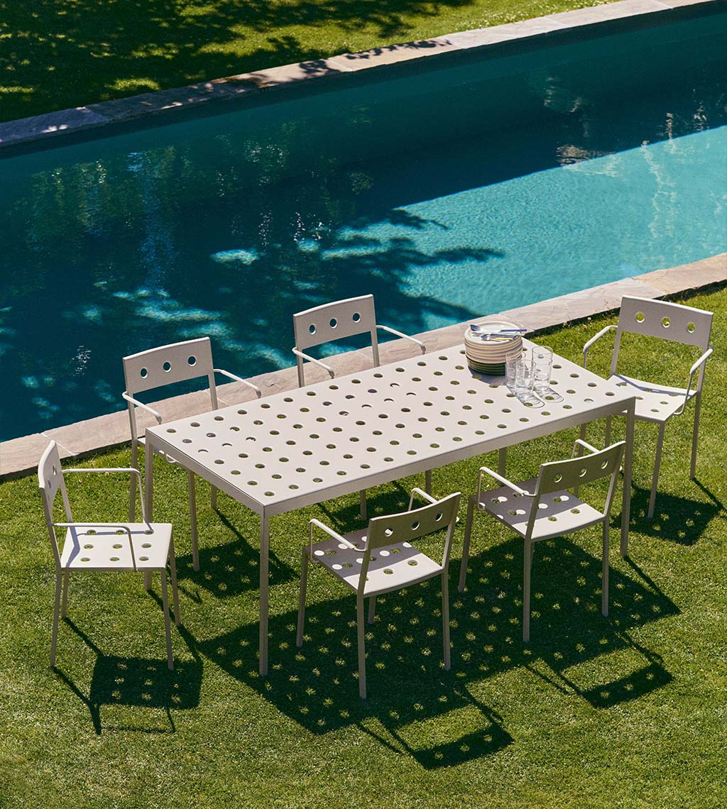 Charakteringo, tačiau universalaus dizaino paieškos brolių Bouroullec kūrybinį žvilgsnį kreipia į lauką. Specialiai HAY sukurta THE BALCONY COLLECTION pasiūlo itin praktiškus lauko erdvių apstatymo sprendimus. Išskirtinį charakterį šiai kolekcijai dovanoja speciali plieno perforavimo technika, leidžianti ne tik efektyviai išskirstyti baldams tenkančią apkrovą bei baldų paviršiuje besikaupiančią drėgmę, tačiau ir suteikianti ypatingo estetinio žavesio. Nors pavadinimas kolekcijos funkcinį vektorių brėžia balkono erdvės link, ši serija atliepia gerokai platesnio spektro poreikius, todėl neabejotina, kad BALCONY sutinkami visur: terasose, lauko kavinėse, soduose ar parkuose. Žavi spalvų gama BALCONY suteikia dar daugiau estetinio patrauklumo.