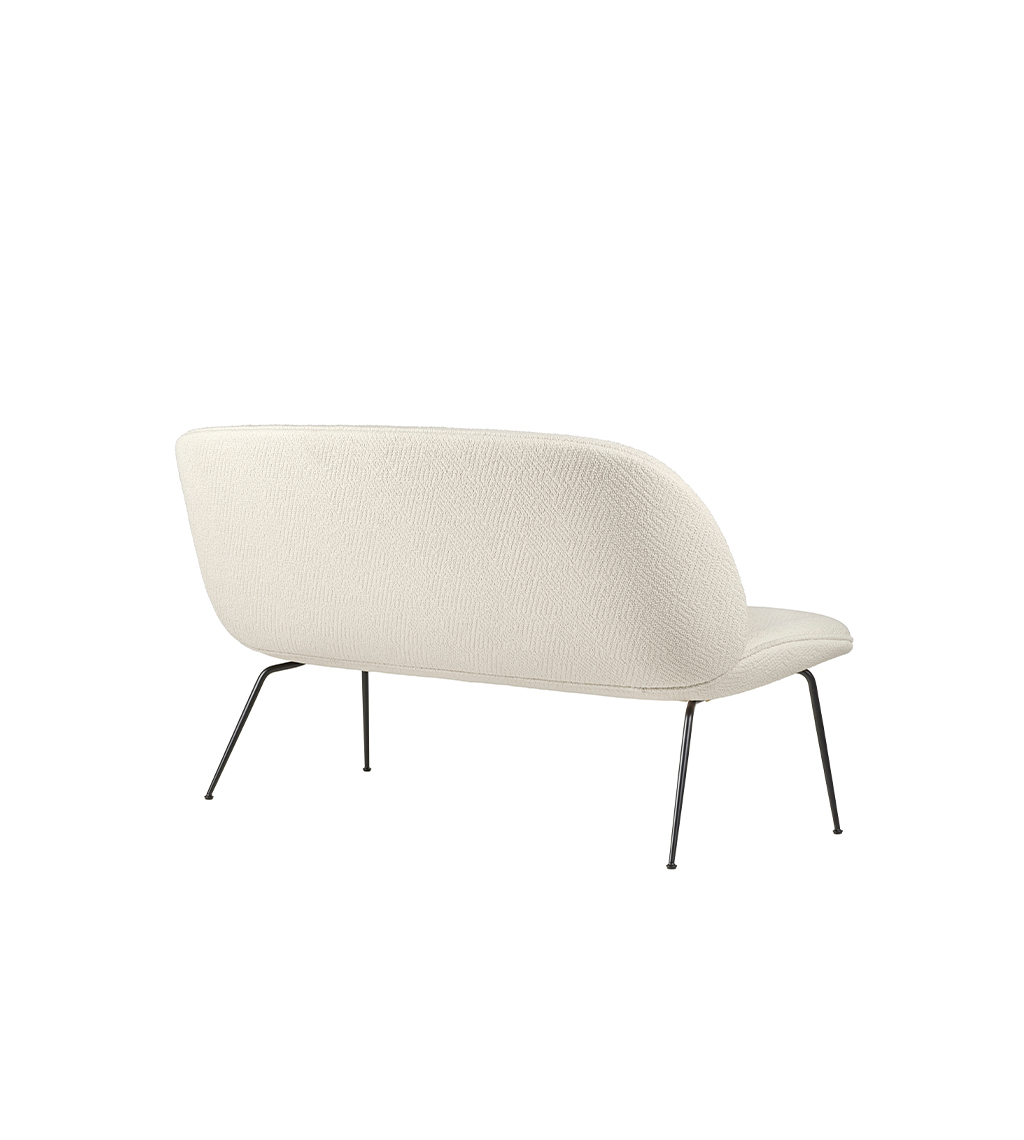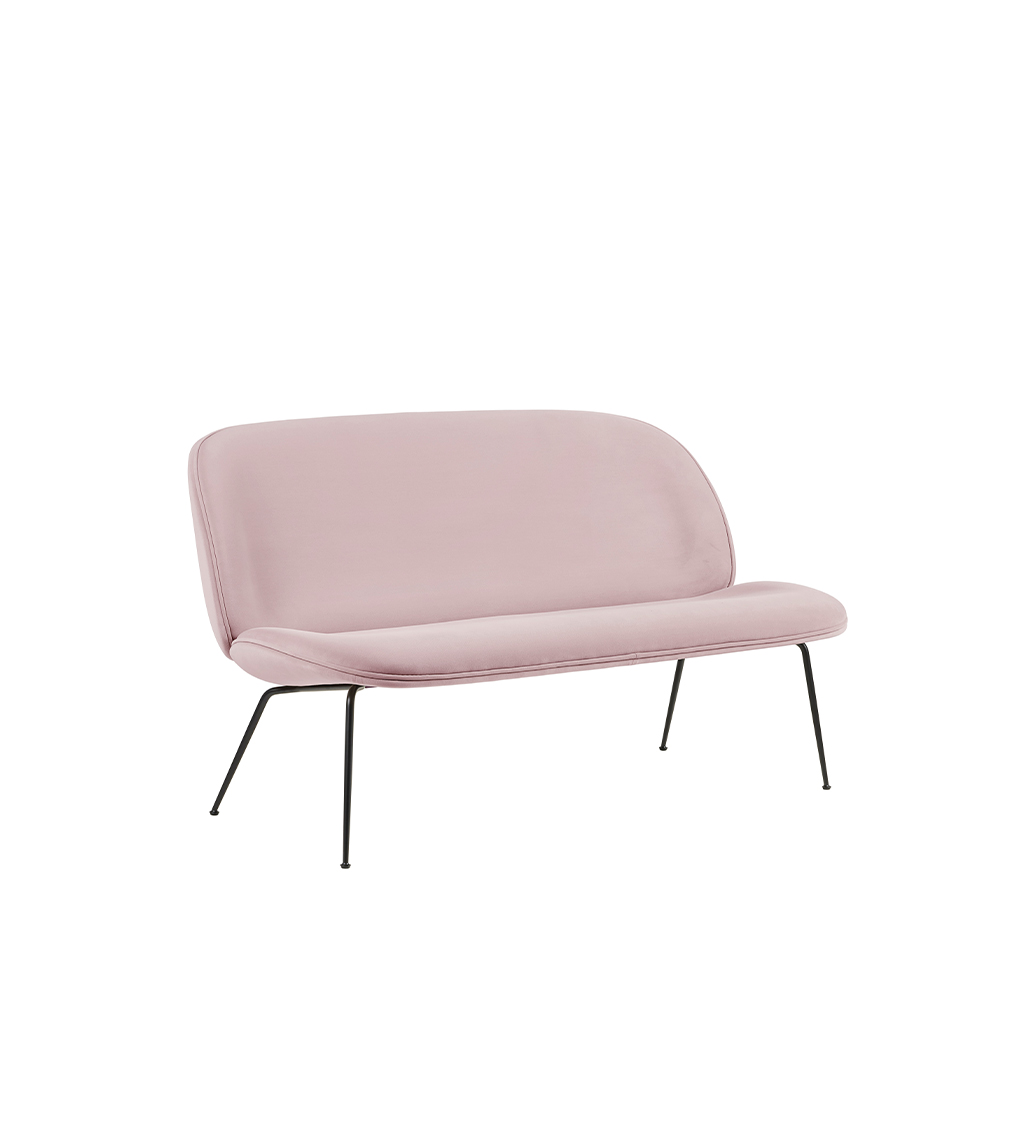 BEETLE SOFA 2-SEATER CONIC BASE – dvivietė elegantiška kolekcijos sofa. Jūsų pasirinkimui įvairios plieno apdailos ir gausi audinių/ odų paletė.