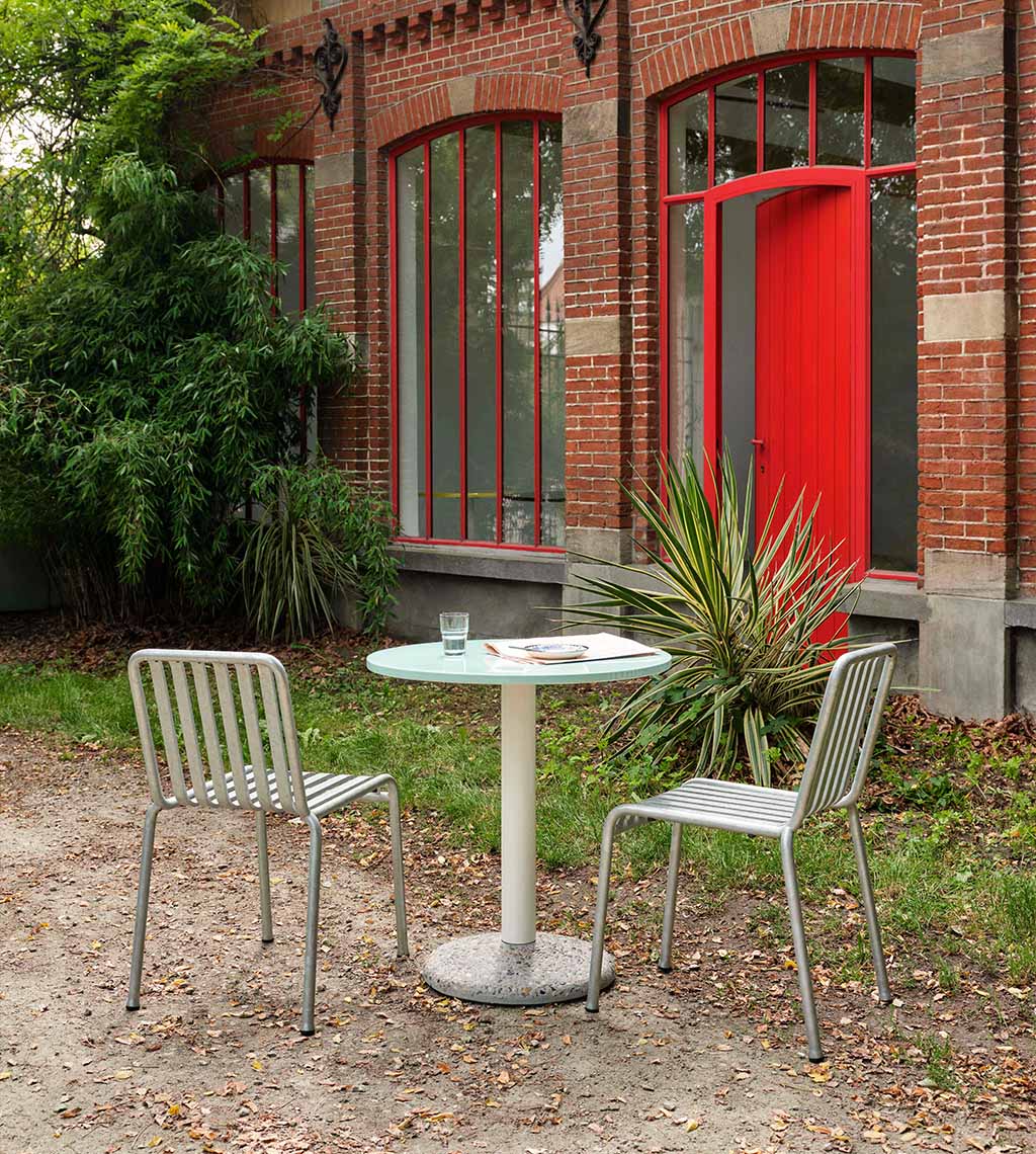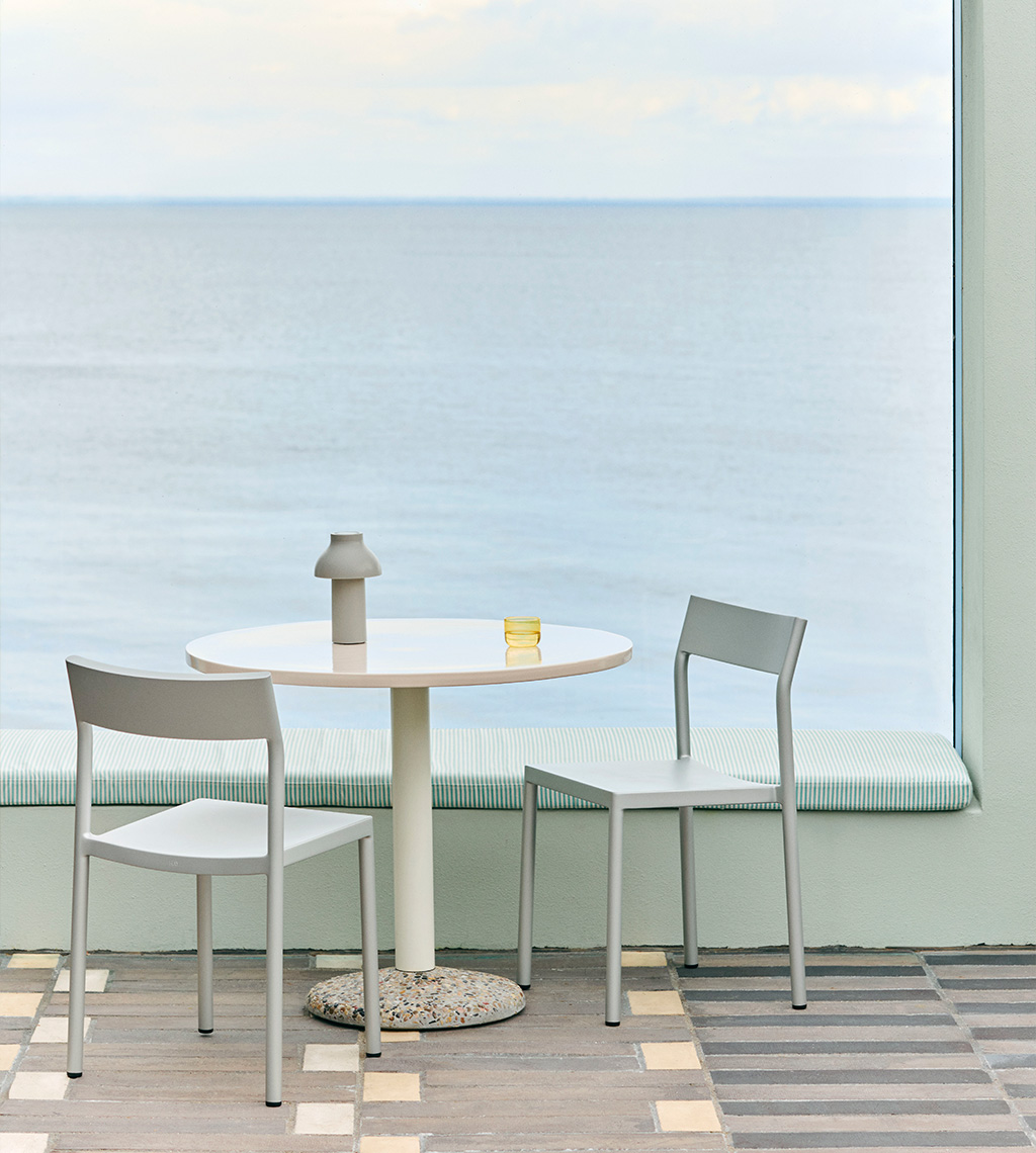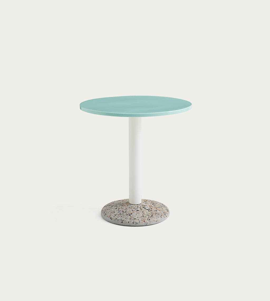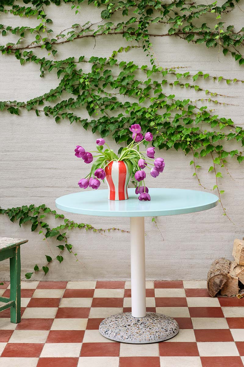 Nesupainiojama Muller Van Severen dizaino estetika, originalus medžiagiškumas bei unikalios spalvų kompozicijos – išskirtinės CERAMIC stalų serijos savybės. Konstruojami iš apvalaus, porceliano keramika padengto stalviršio, plieno kolonos bei betono pagrindo CERAMIC stalai – ne tik originalus materijų derinys, bet ir universalus, patikimas draugas kuriant išskirtines lauko, balkonų ar terasų erdves.