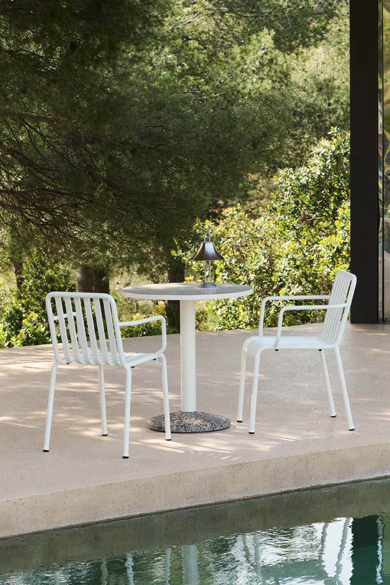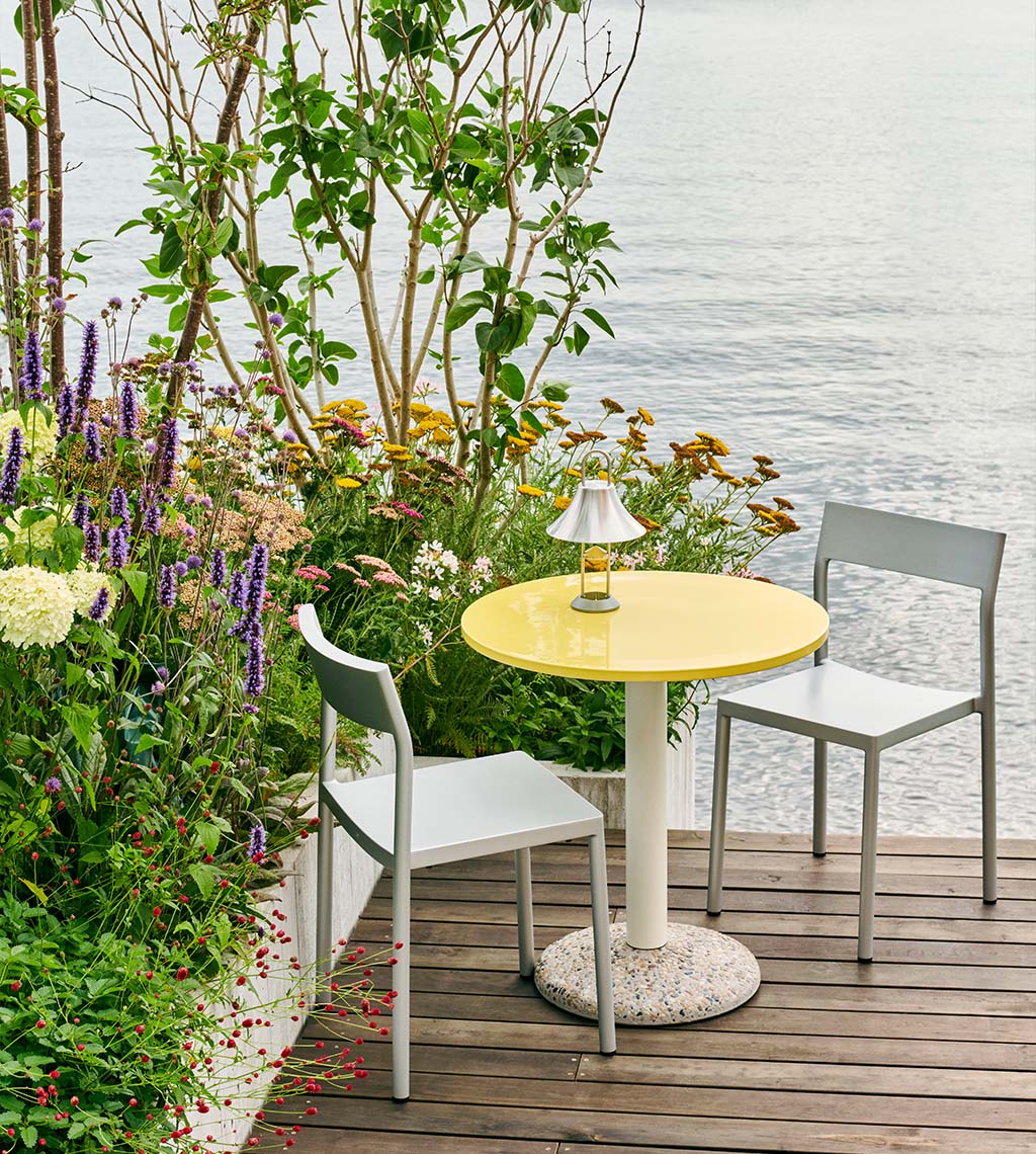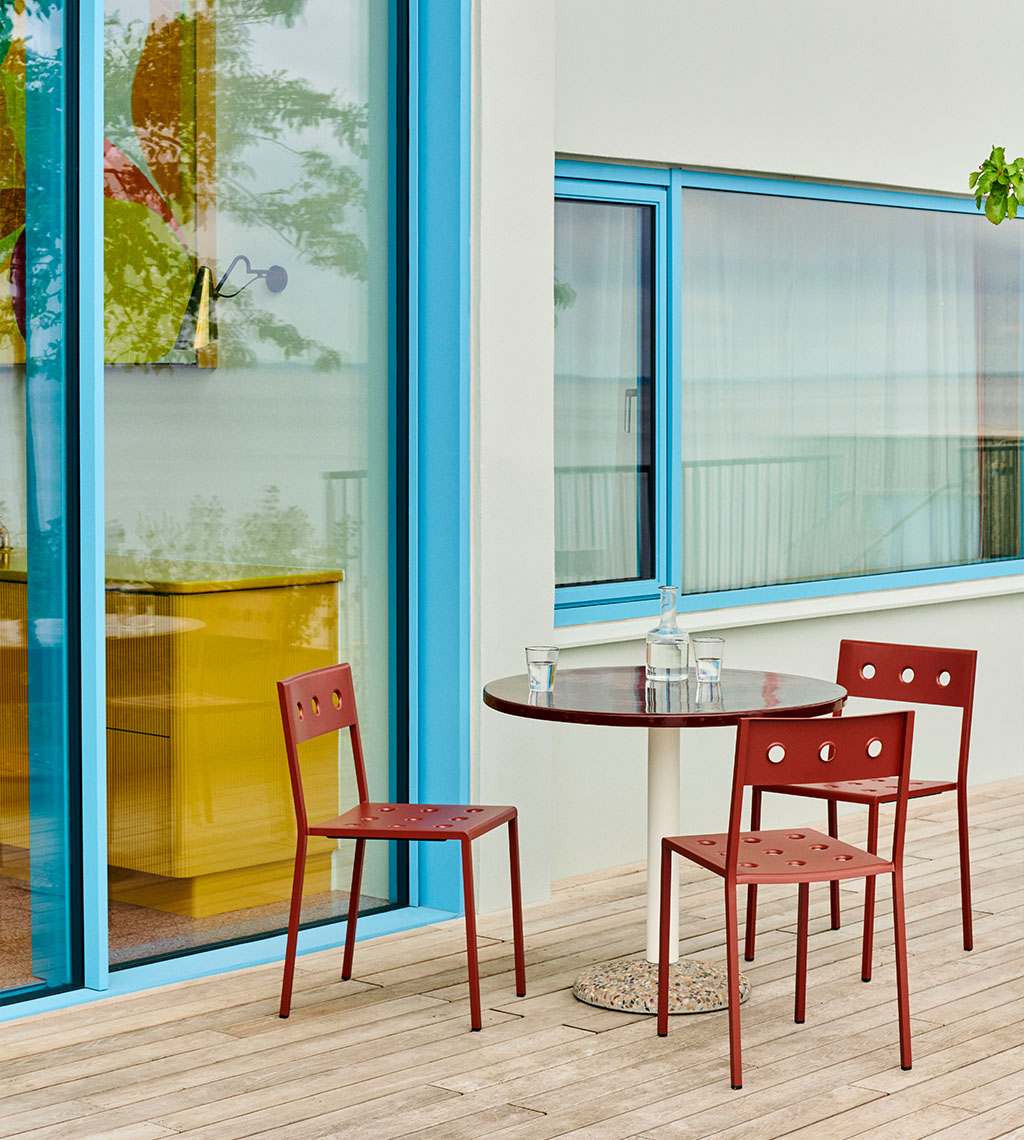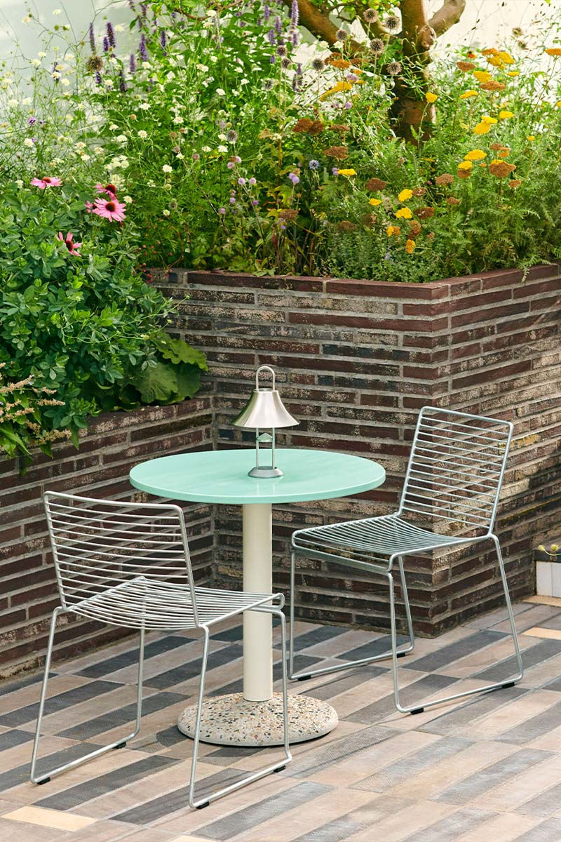 Nesupainiojama Muller Van Severen dizaino estetika, originalus medžiagiškumas bei unikalios spalvų kompozicijos – išskirtinės CERAMIC stalų serijos savybės. Konstruojami iš apvalaus, porceliano keramika padengto stalviršio, plieno kolonos bei betono pagrindo CERAMIC stalai – ne tik originalus materijų derinys, bet ir universalus, patikimas draugas kuriant išskirtines lauko, balkonų ar terasų erdves.