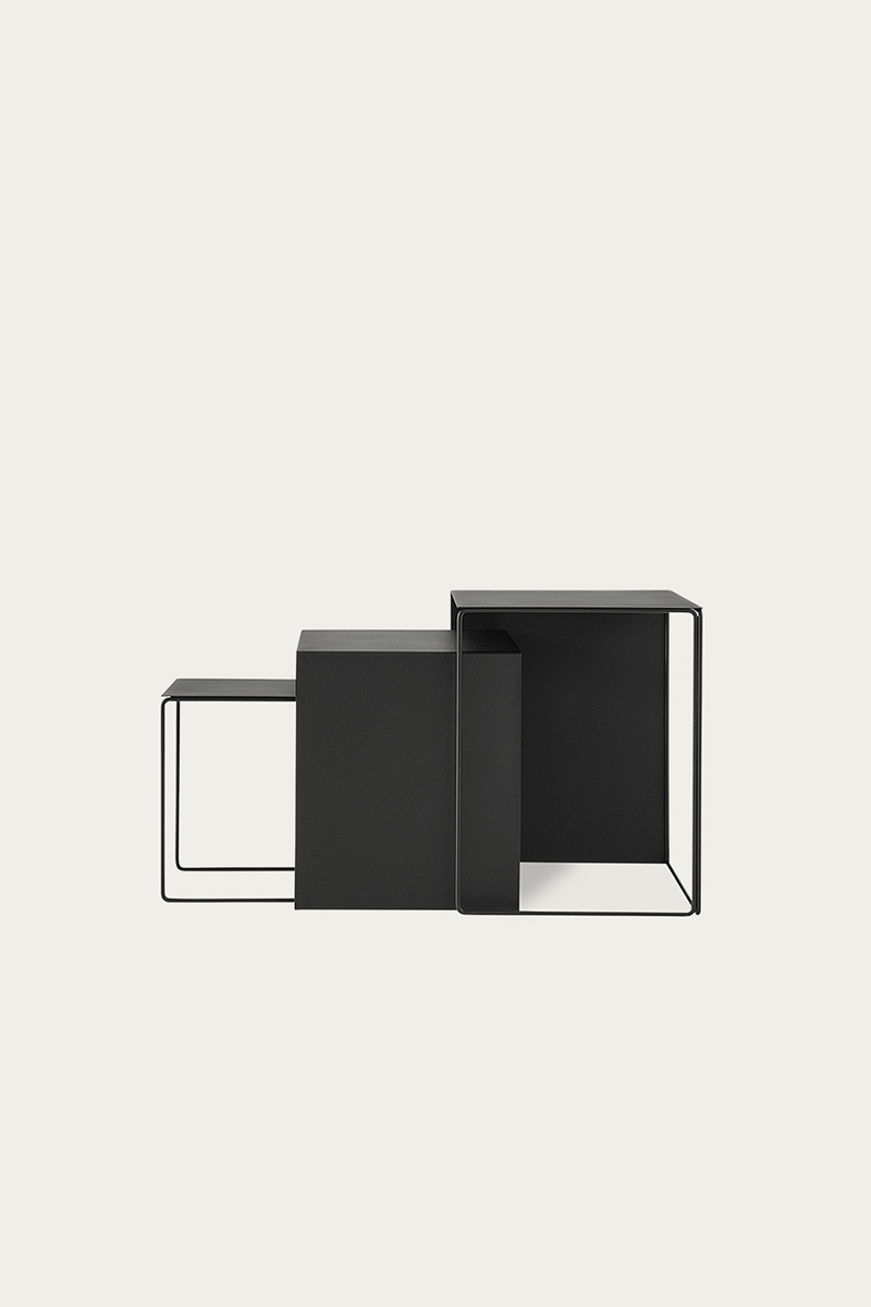 Panašūs, bet skirtingi, derantys kartu, tačiau nuostabūs ir atskirai, CLUSTER suteikia galimybę pažaisti ir improvizuoti kuriant kiekvienai progai labiausiai tinkančią stalelių kompoziciją. Šios serijos dizainas remiasi elementaria geometrija, minimalistinio dizaino principais bei intuityvios, todėl visada sėkmingos funkcijos dėsniais. Gaminami iš dažyto plieno, siūlomi kelių žavių atspalvių. Rinkinyje – trys staleliai.