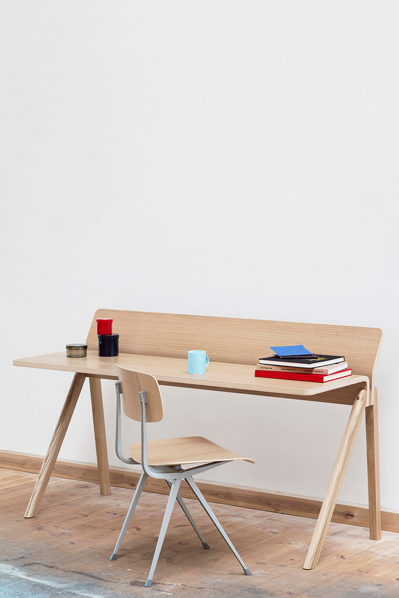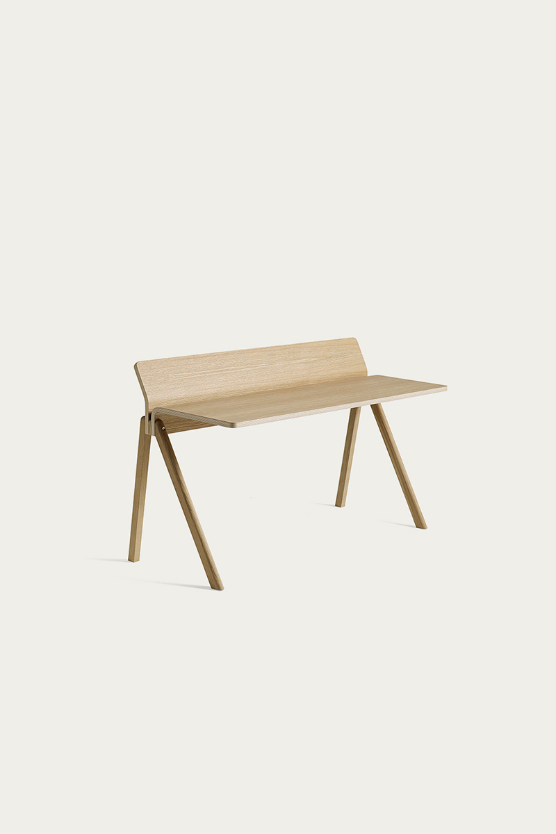 COPENHAGUE 190 DESK – rašomasis stalas, kurio stalviršis pagamintas iš formuotos faneros, plastiška forma primenantis sulenktą popieriaus lapą. Atsiradusi vertikali plokštuma tarnauja ir kaip atrama knygai ar užrašamas.
