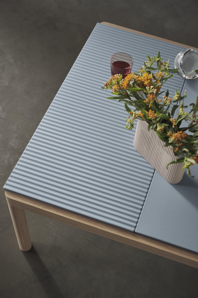 Įkvėptas tradicinio stalelio, plytelėmis dengtu stalviršiu, COUPLE COFFEE TABLE alsuoja šiuolaikiškumu bei nuosaikia elegancija. Stalelio dizainas vienija dvi skirtingas, tačiau natūralios kilmės medžiagas: FSC™ sertifikuotą ąžuolo medieną bei akmens masės keramiką. „Mane visuomet žavėjo įvairi medžiagų tekstūra, todėl aš jau seniai norėjau sukurti gaminį, kurio paviršius dovanotų keramikai būdingą šiurkštumą", – savo viziją paaiškina dizaineris Sylvain Willenz. COUPLE COFFEE TABLE dizainas leidžia rinktis ir tarpusavyje derinti dviejų tipų keramikinius stalviršius: švelniu, lygiu paviršiumi bei dekoruotą subtiliomis bangelėmis. Siūlomi net 36 skirtingi variantai, padeda išsirinkti tinkamiausio dydžio, spalvos bei apdailos COUPLE COFFEE TABLE.