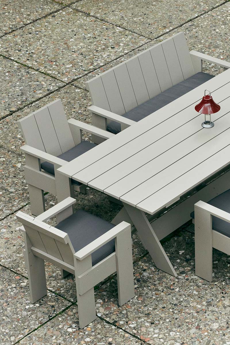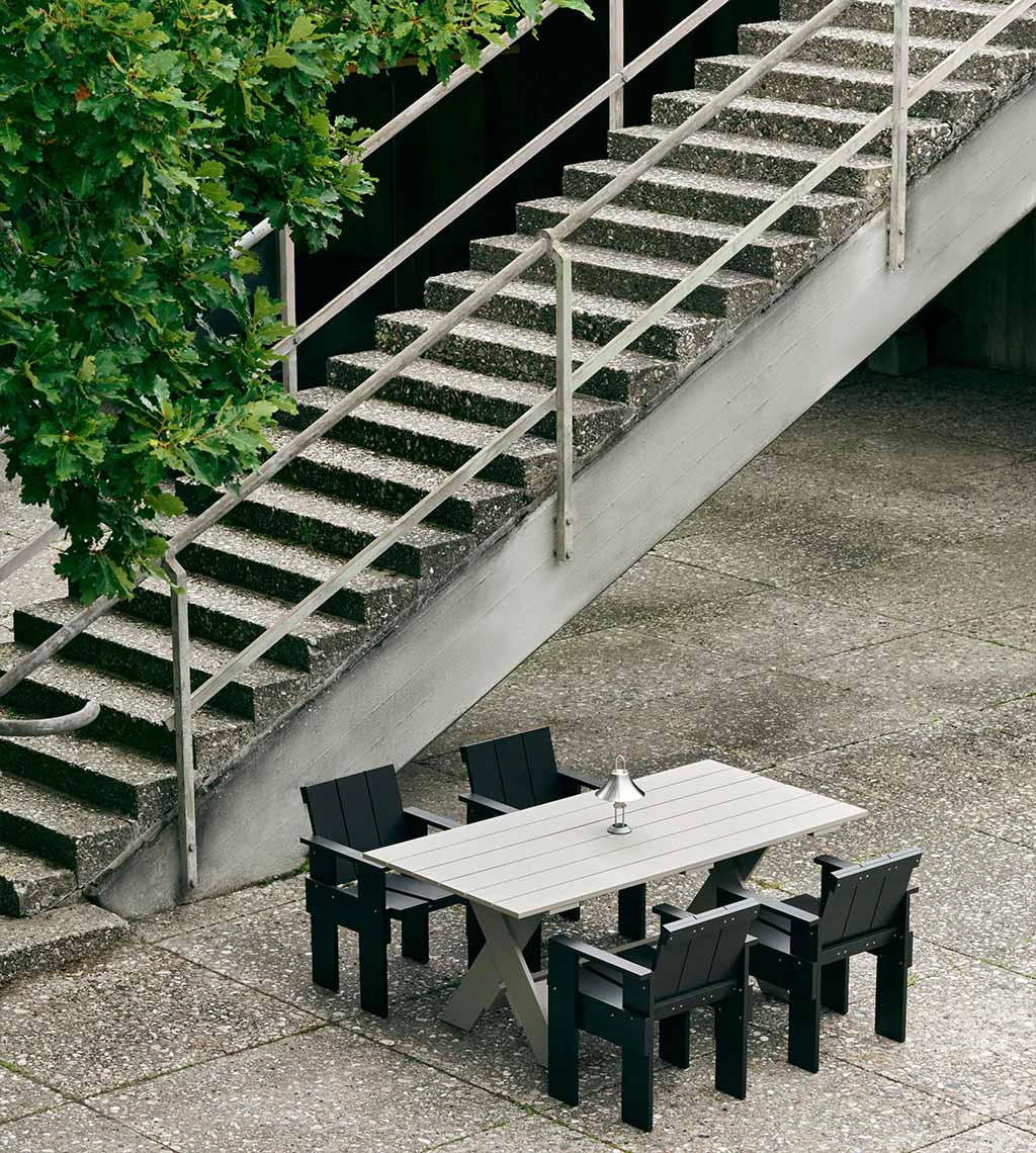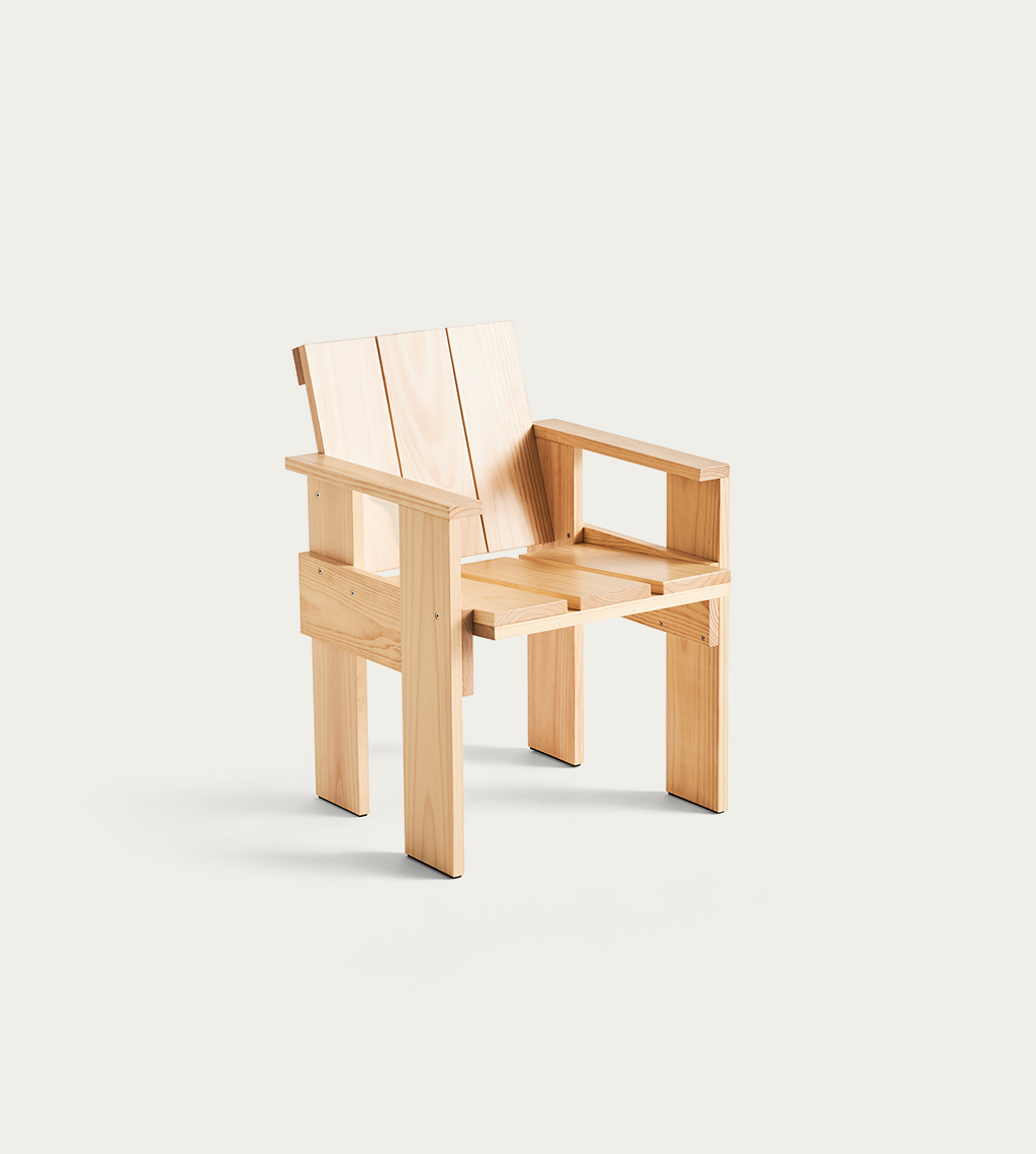 CRATE kolekcijos istorija prasidėjo 1934 m., kuomet garsus danų architektas bei dizaineris Gerrit Rietveld užsimojo sukurti patogius, prieinamus ir stilingus baldus iš paprastų medinių dėžių. Rietveld Originals x HAY atkurta CRATE serija pasižymi originaliems baldams būdingu išraiškingu charakteriu, tiksliomis proporcijomis bei architektūriškomis formomis. CRATE serijos baldai gaminami iš natūralios pušies medienos, padengtos vandens pagrindo laku, todėl gali būti naudojami tiek viduje, tiek ir lauke. CRATE kolekciją sudaro patogus krėslas kėdė, kavos bei šoninis staleliai. Sukurti kone prieš šimtą metų, CRATE baldai atspindi ir šiandieną be galo svarbias dizaino vertybes: komfortas, palanki kaina bei dizaino pagalba užkoduota modernios gyvensenos žinutė.