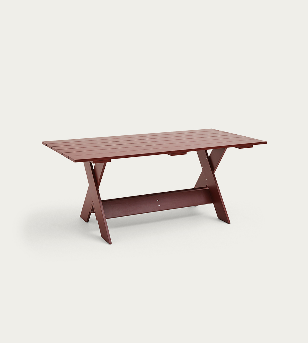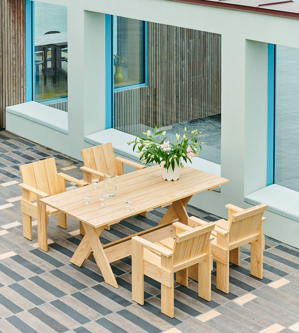CRATE DINING TABLE – seriją papildantis ir gardžių pietų lauke kviečiantis patogaus dydžio stalas.