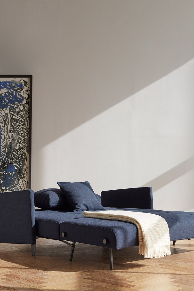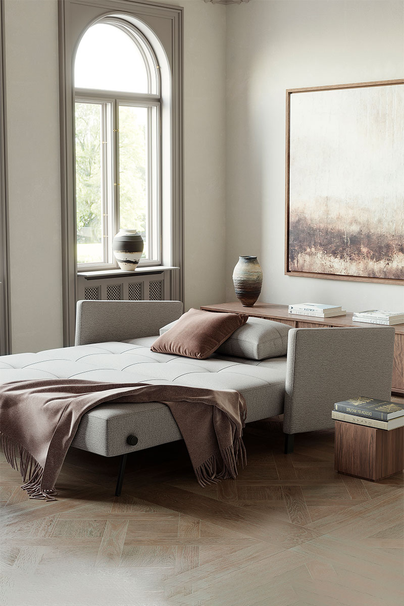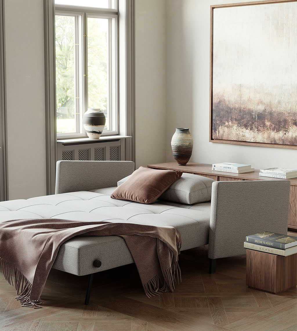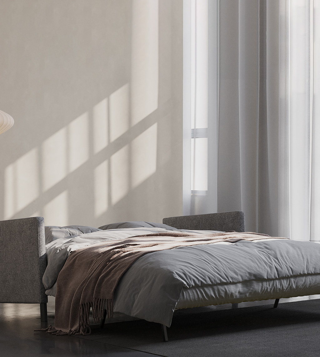 Puikus sprendimas itin kompaktiškoms gyvenamosioms erdvėms. Integruotos „No-zag" tipo spyruoklės ir automatinė papildomų kojelių išskleidimo sistema, leis mėgautis nesudėtinga sofos transformacija į dvigulę lovą ir puikiu sėdėjimo bei miego komfortu. Jūsų pasirinkimui – du sofos lovos dydžiai. Papildomai galima rinktis atramą galvai.