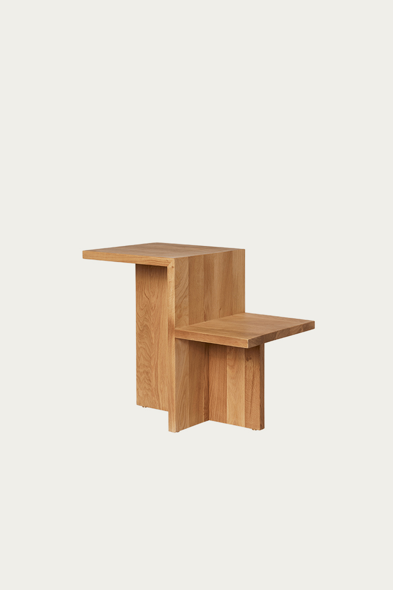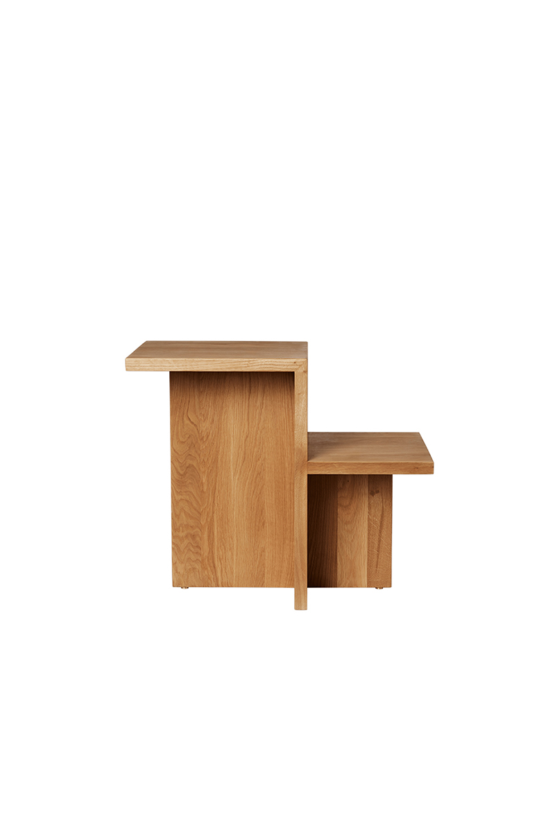 DISTINCT stalelių serijos dizaino įkvėpimas glūdi japoniškojo minimalizmo tradicijose. Kompleksinė baldo struktūra kuriama vos vieno, 3D erdvėje keliaujančio elemento pagalba: paprasta, funkcionalu ir tik tiek, kiek reikia, kad būtų pasiekta paveiki formos išraiška. Lakoniška stalelio konstrukcija padeda išryškinti sodrią natūralaus ąžuolo struktūrą bei akcentuoti architektūrinę dizaino inspiraciją.