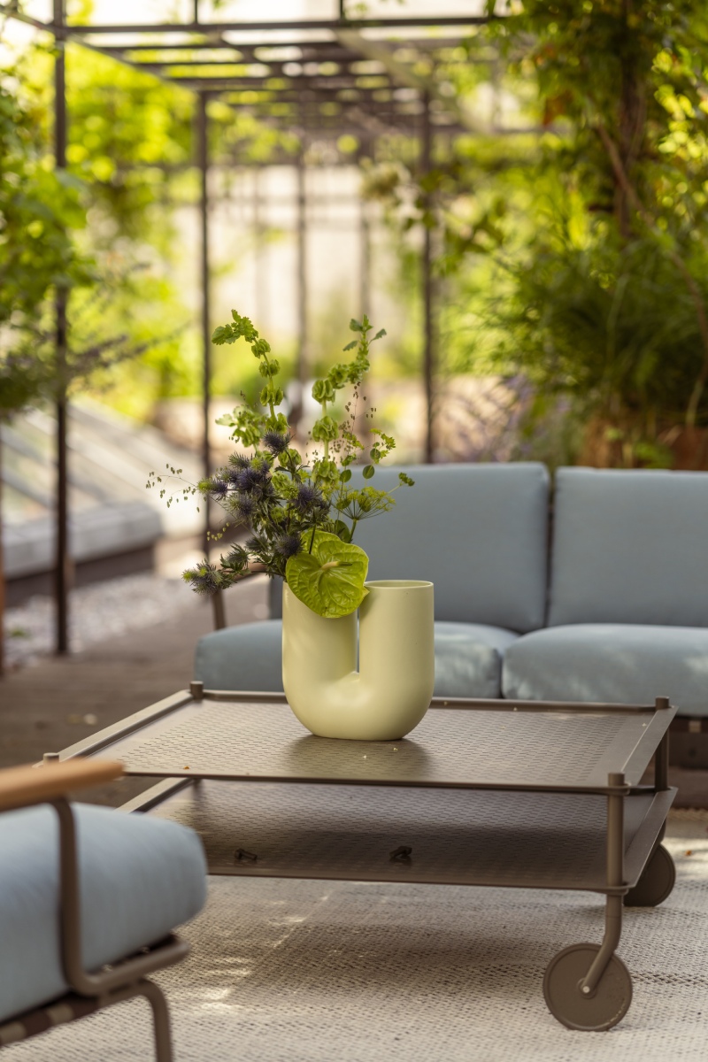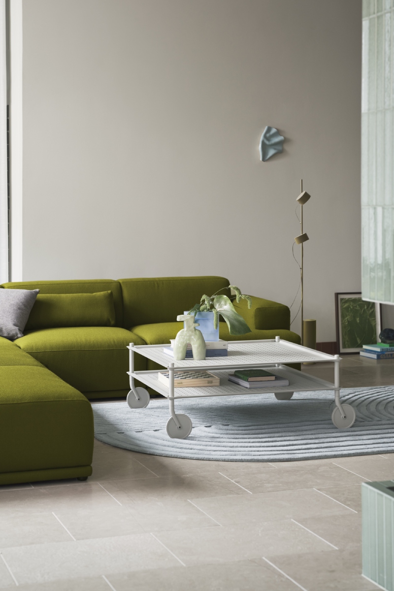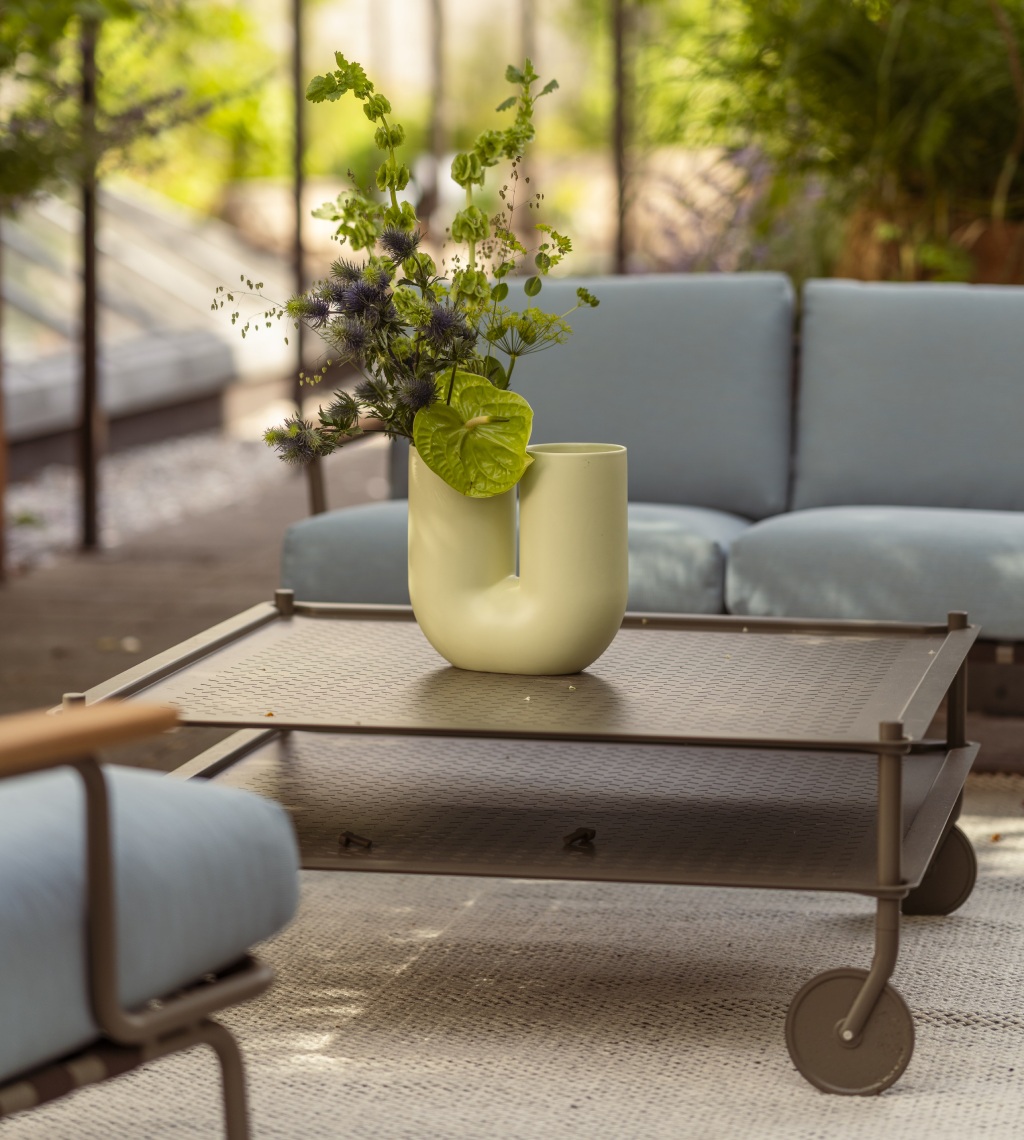 Šiuolaikiškas ir funkcionalus FLOW COFFEE TABLE dizainas kuria pridėtinę vertę įvairiausiuose kontekstuose. Mobilus, tad itin lengvai pritaikomas besikeičiantiems poreikiams, jis sklandžiai keliauja po vidaus erdves, o prireikus ir į lauko zoną. Subtili monochrominė perforuoto plieno išorė, elegantiškos detalės ir funkcija, pranokstanti tradicinio kavos stalelio ribas.