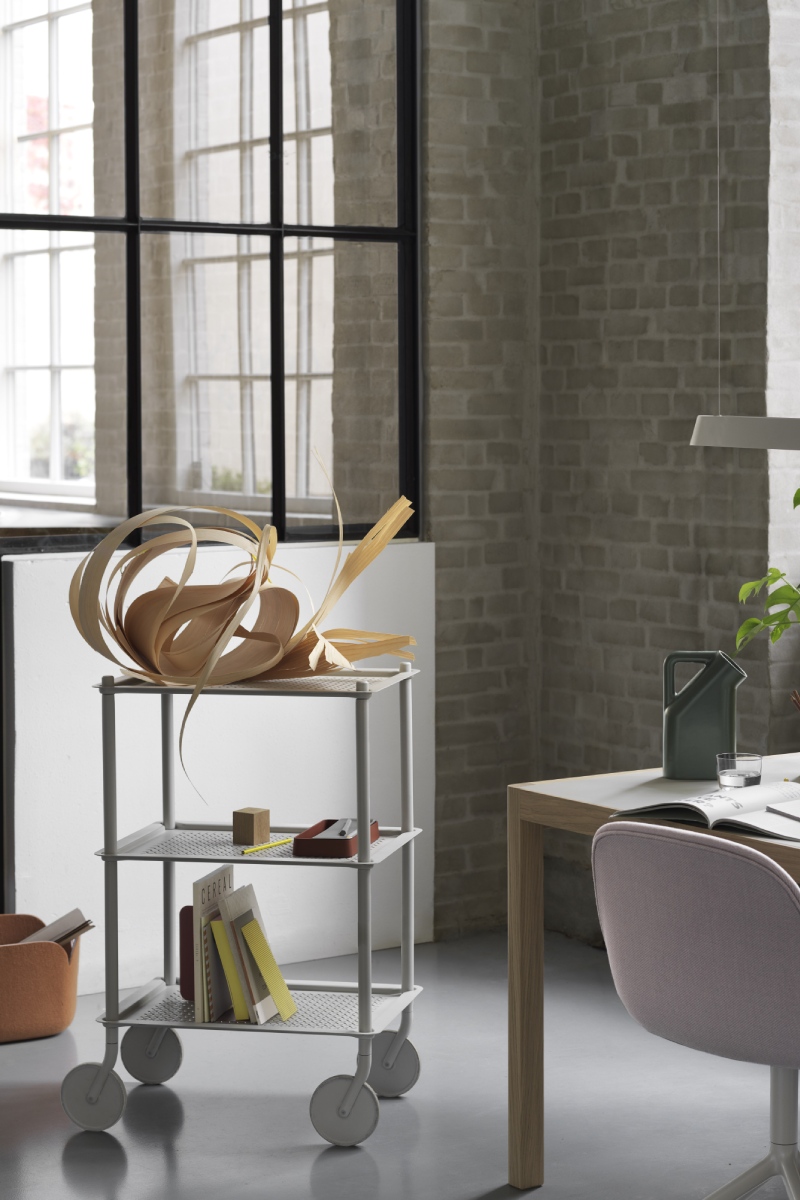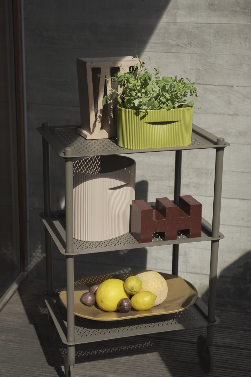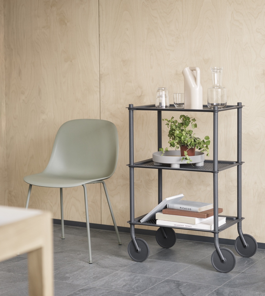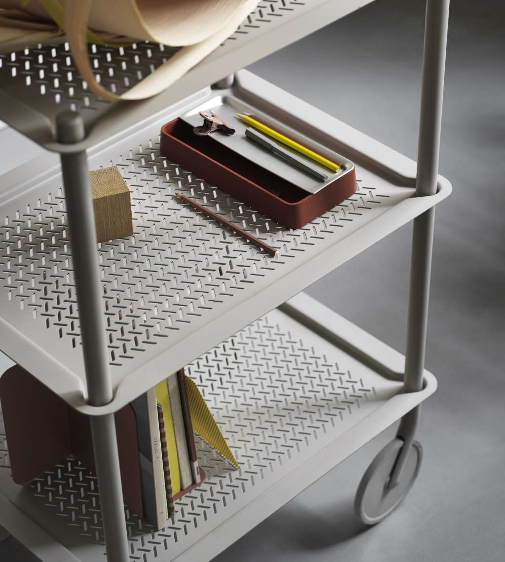 Šiuolaikiškas ir funkcionalus FLOW TROLLEY dizainas kuria pridėtinę vertę įvairiausiuose kontekstuose. Mobilus, tad itin lengvai pritaikomas besikeičiantiems poreikiams, jis visuomet po ranka. Subtili monochrominė perforuoto plieno išorė ir elegantiškos detalės. Namuose, biure ar restorane.