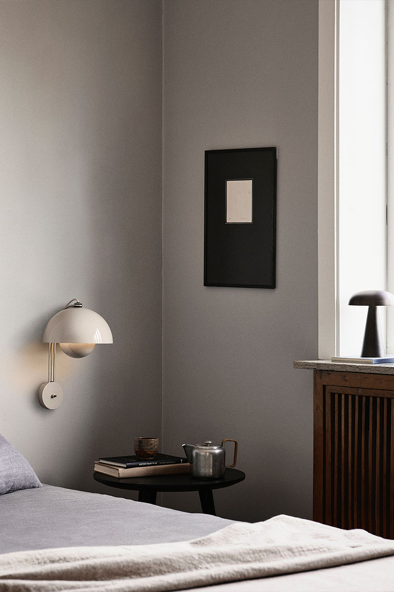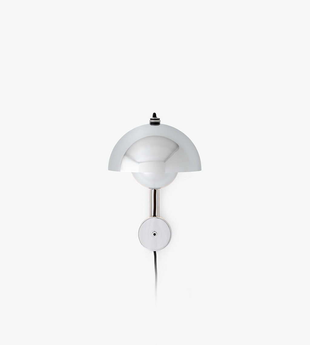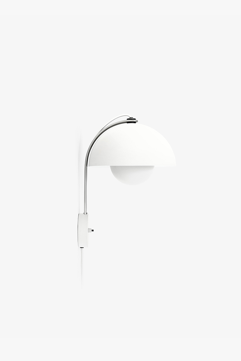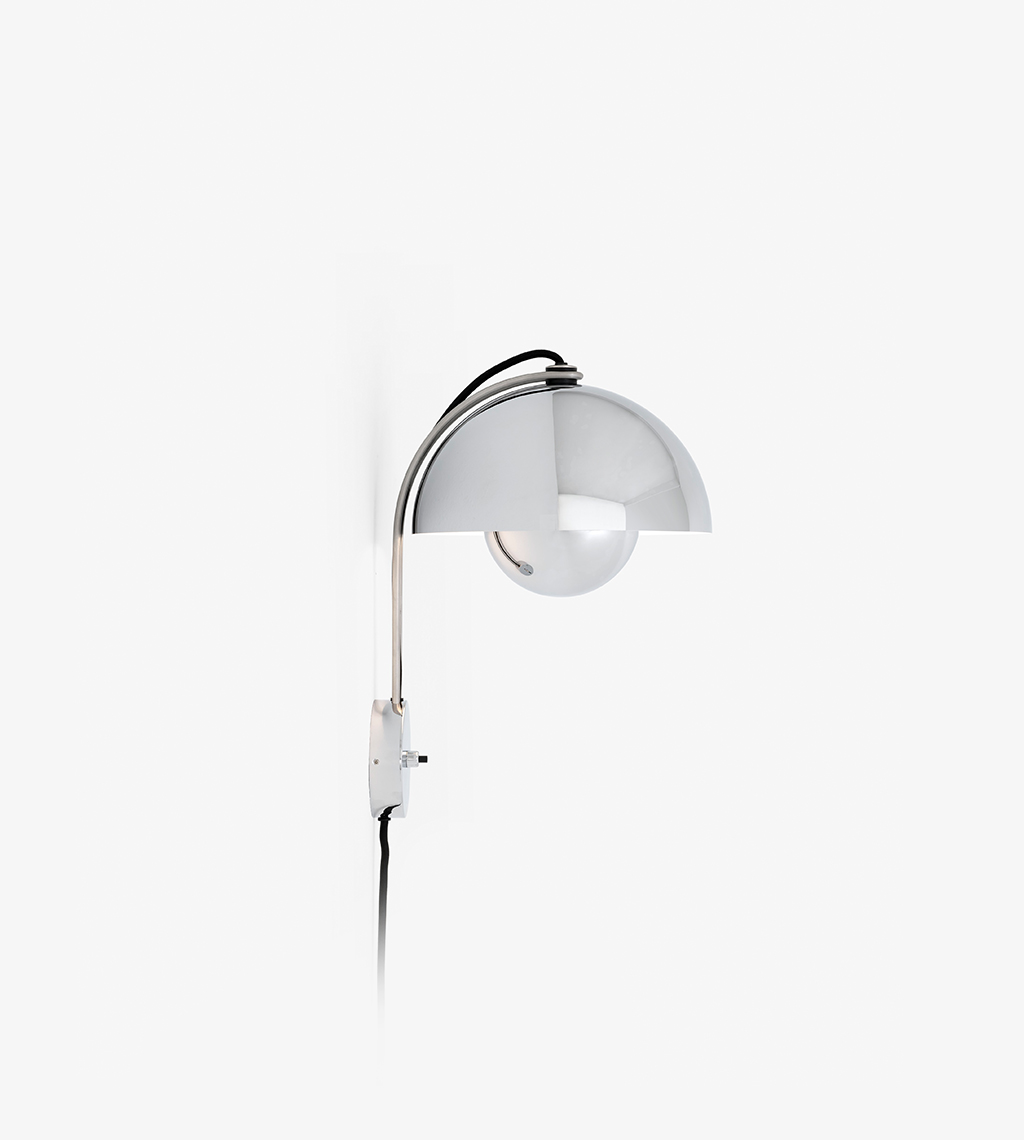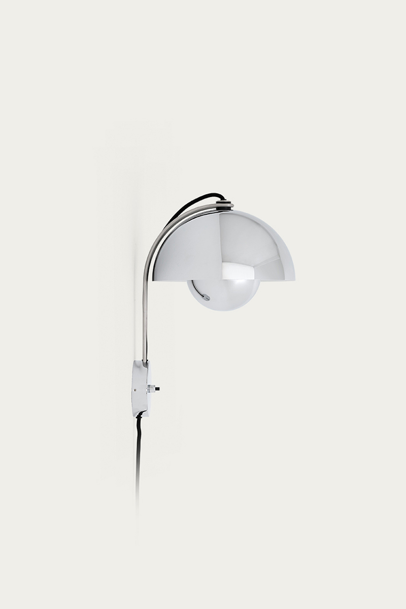 FLOWERPOT VP8 – kolekcijos sieninis šviestuvas, kurio stiebas ir pagrindas suteikia šviestuvui dar stipresnį futuristinį prieskonį.