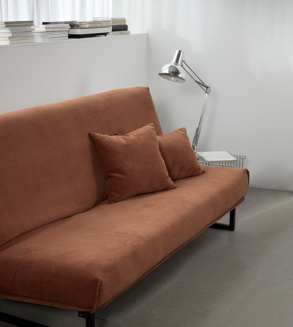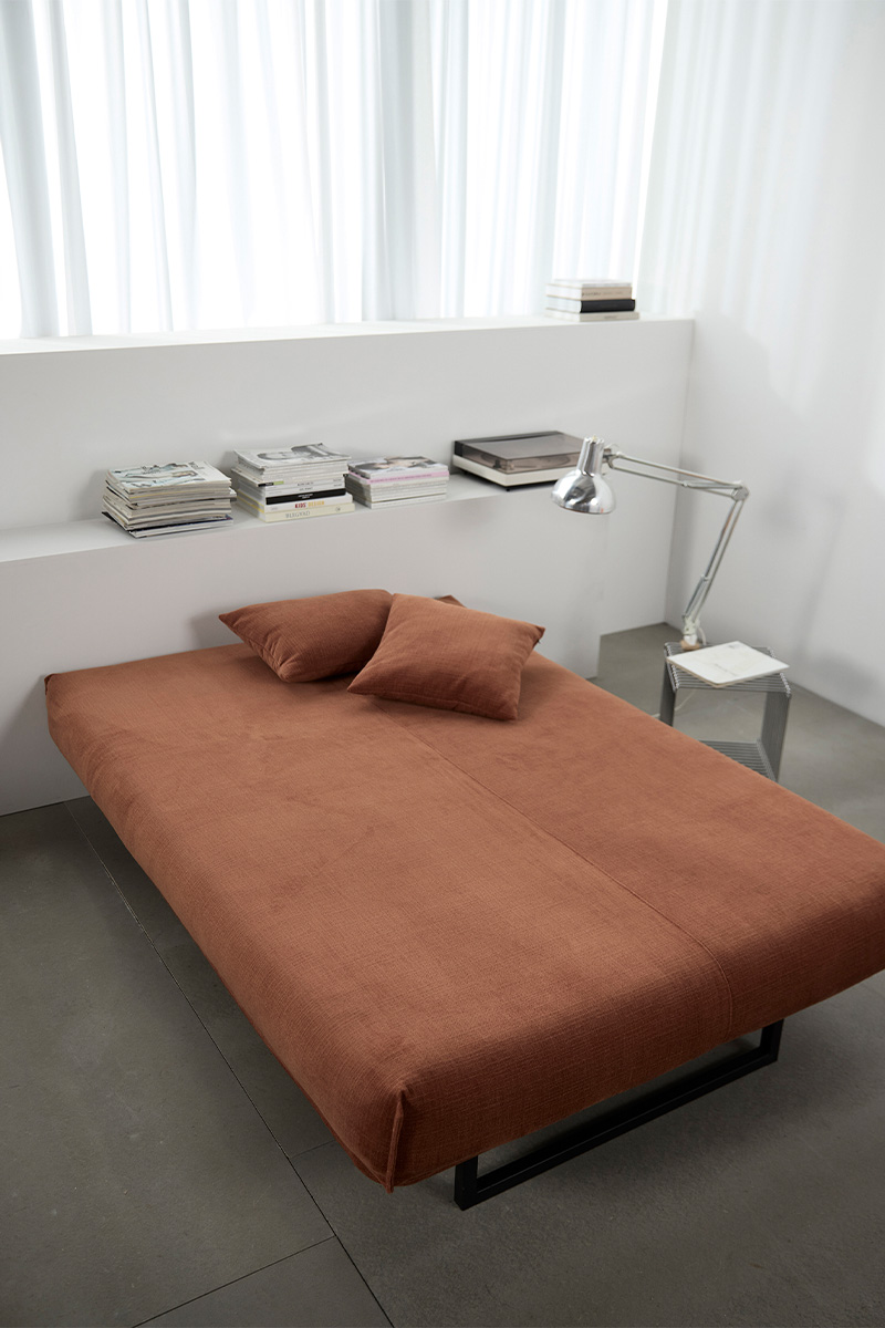 Ši multifunkcinė lova-sofa itin patogi ir kas dieną, ir kas naktį: dvi atlošo padėtys ir galvūgalio pakėlimo mechanizmas leidžia pasirinkti patogią padėtį įvairioms veikloms, o išskleistas, pasirinkto komforto čiužinys be jokių sudalinimų, užtikrina puikų miegą ir kokybišką poilsį. Komplektacijoje: tvirtas metalinis, multifunkcinis, milteliniu būdu juoda spalva dažytas sofos ir čiužinio pagrindo rėmas, aukštos kokybės klijuotos faneros grotelės, patalynės krepšys bei atlošo rėmo užvalkalas. Nuvilkus čiužinio užvalkalą, čiužinys lieka su vidiniu užvalkalu. Rėmo užvalkalą galima užsakyti papildomai.