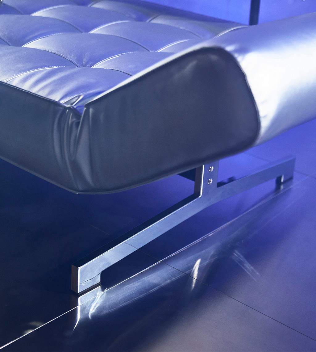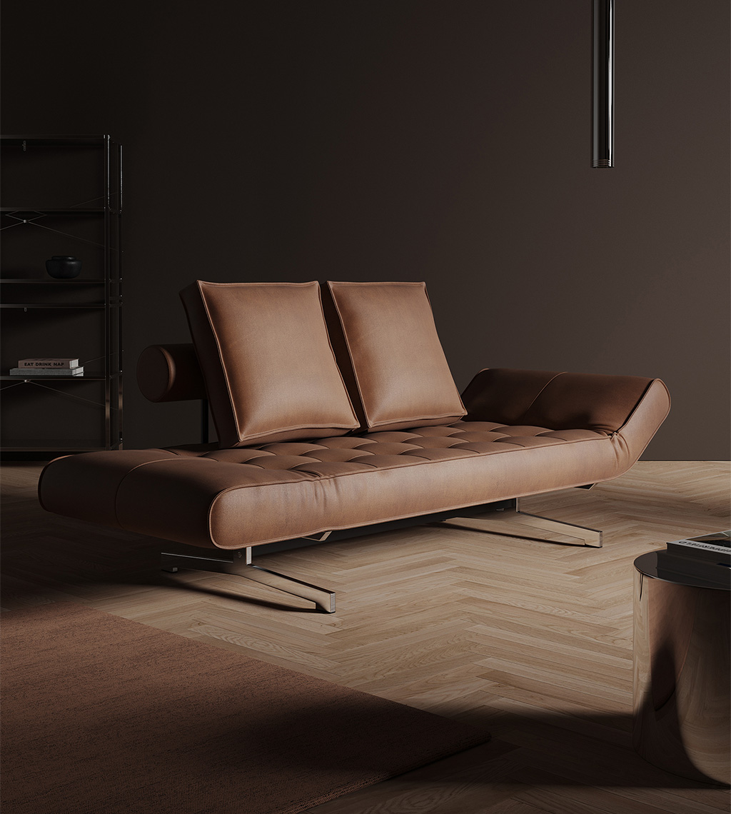 Prabangios išvaizdos kušetė su penkių pakopų atlenkiamomis dalimis abejose pusėse ir atlošo pagalvėmis. Baldas puikiai tiks poilsiui dienos metu ar puikiai tarnaus, kaip svečio lova. Čiužinyje integruotos kišeninės kūginės spyruoklės, plieno rėmas ir chromuoto plieno kojelės.