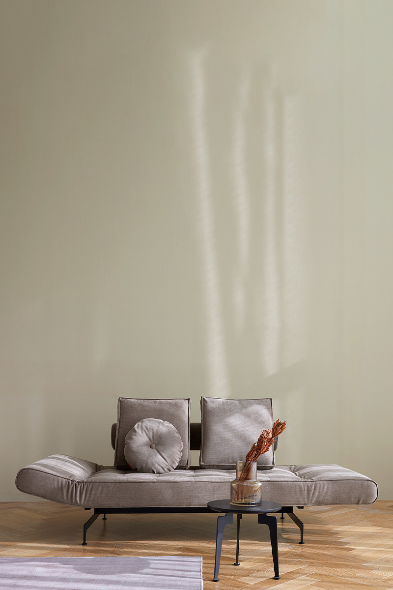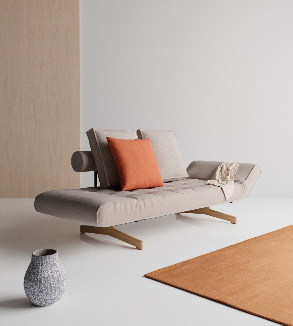 Prabangios išvaizdos, New Nordic stiliaus kušetė su penkių pakopų atlenkiamomis dalimis abejose pusėse ir atlošo pagalvėmis. Baldas puikiai tiks poilsiui dienos metu ar pasitarnaus, kaip svečio lova. Čiužinyje integruotos kišeninės kūginės spyruoklės, plieninis rėmas, lakuoto ąžuolo kojelės.