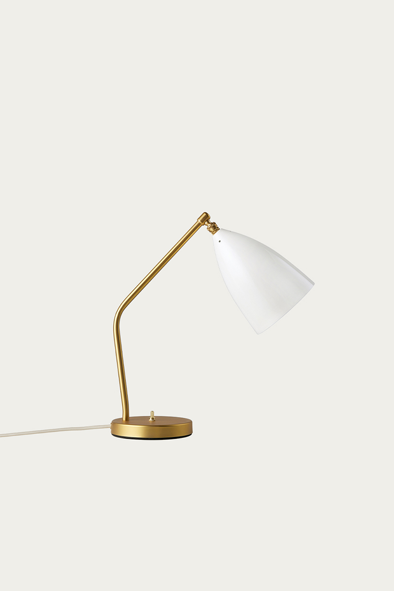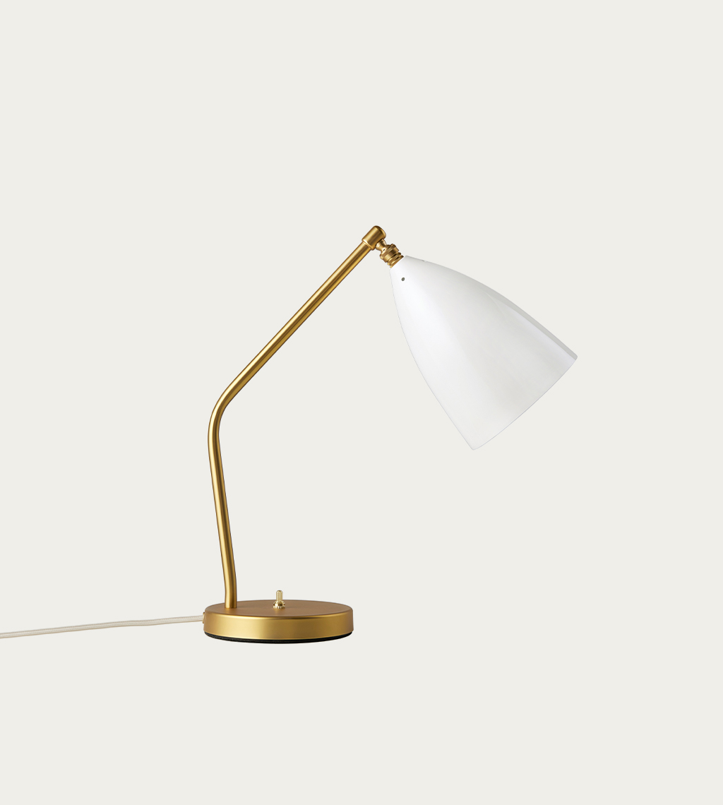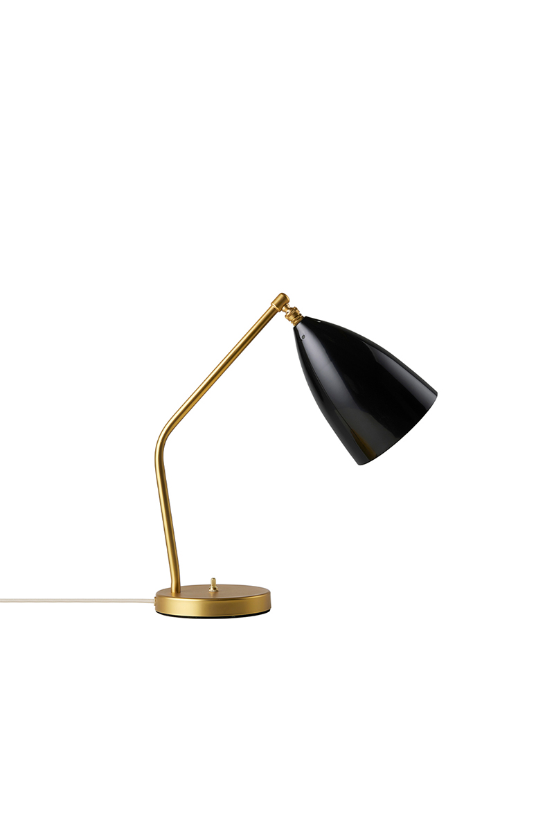 GRÄSHOPPA TABLE LAMP sukurta 1947 m., išlieka aktuali ir šiandien. Išraiškingas gaubtas darniai dera su keistoku kampu įlenktu stovu, sukuria šiuolaikišką, bet tuo pačiu ir itin klasikinę estetiką.