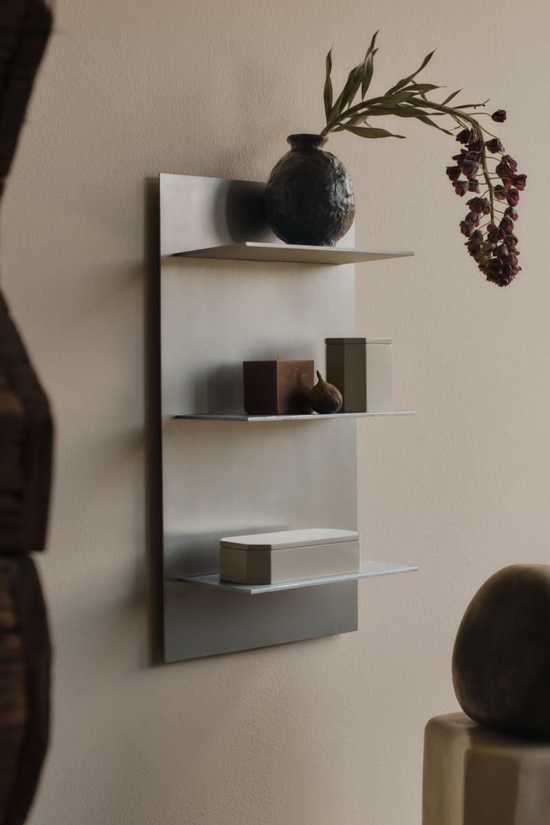 LAGER SHELF (iš danų k. sandėlis) – aliuminio lentyna, kuri išsiskiria savo minimalistine forma bei brutualistinio dizaino estetika. Taisiklinga stačiakampio forma, leidžia kabinti lentynas vieną šalia kitos, tiek iš šonų, tiek iš viršaus ar apačios – tai puikus sprendimas ieškantiems didelės, išskirtinio dizaino lentynos savo erdvei. Nesudėtingas „French cleat“ tvirtinimas, padeda lengvai ir stabiliai pritvirtinti lentyną prie sienos.