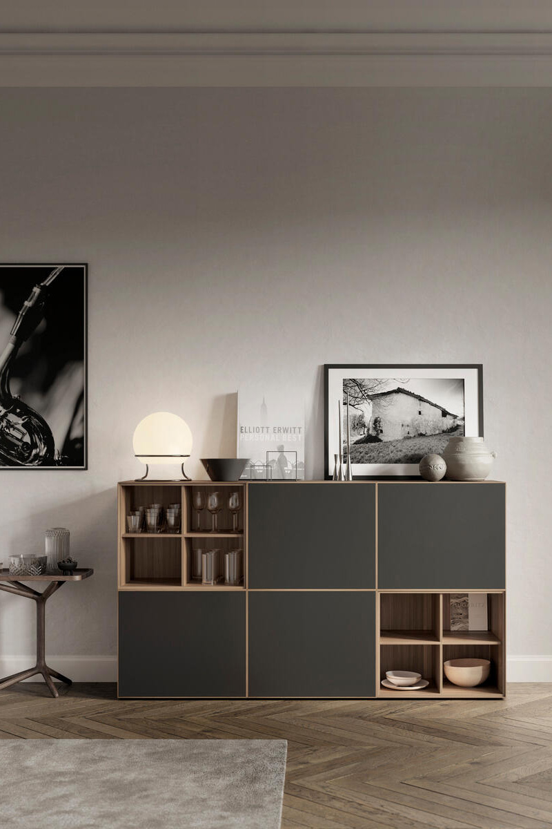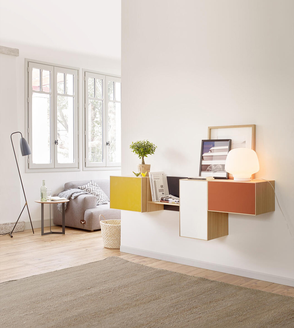 Kolekcijos LAUKI baldai – tarsi mozaika. Jie komplektuojami iš skirtingų segmentų, kurie gali būti komponuojami ant grindų, sudedami vienas ant kito ar kabinami ant sienos. Šie segmentai yra skirtingų matmenų, spalvų, apdailos, gali būti su stalčiais, durelėmis ar atviri, todėl iš jų galima sukurti begalę konfigūracijų. Pavyzdžiui, tą patį modulį galima naudoti kaip naktinę spintelę arba biuro stalo stalčių bloką. Komponuojant daugiau modelių, galima suformuoti originalią TV spintelę, komodą ar net dokumentų spintą.