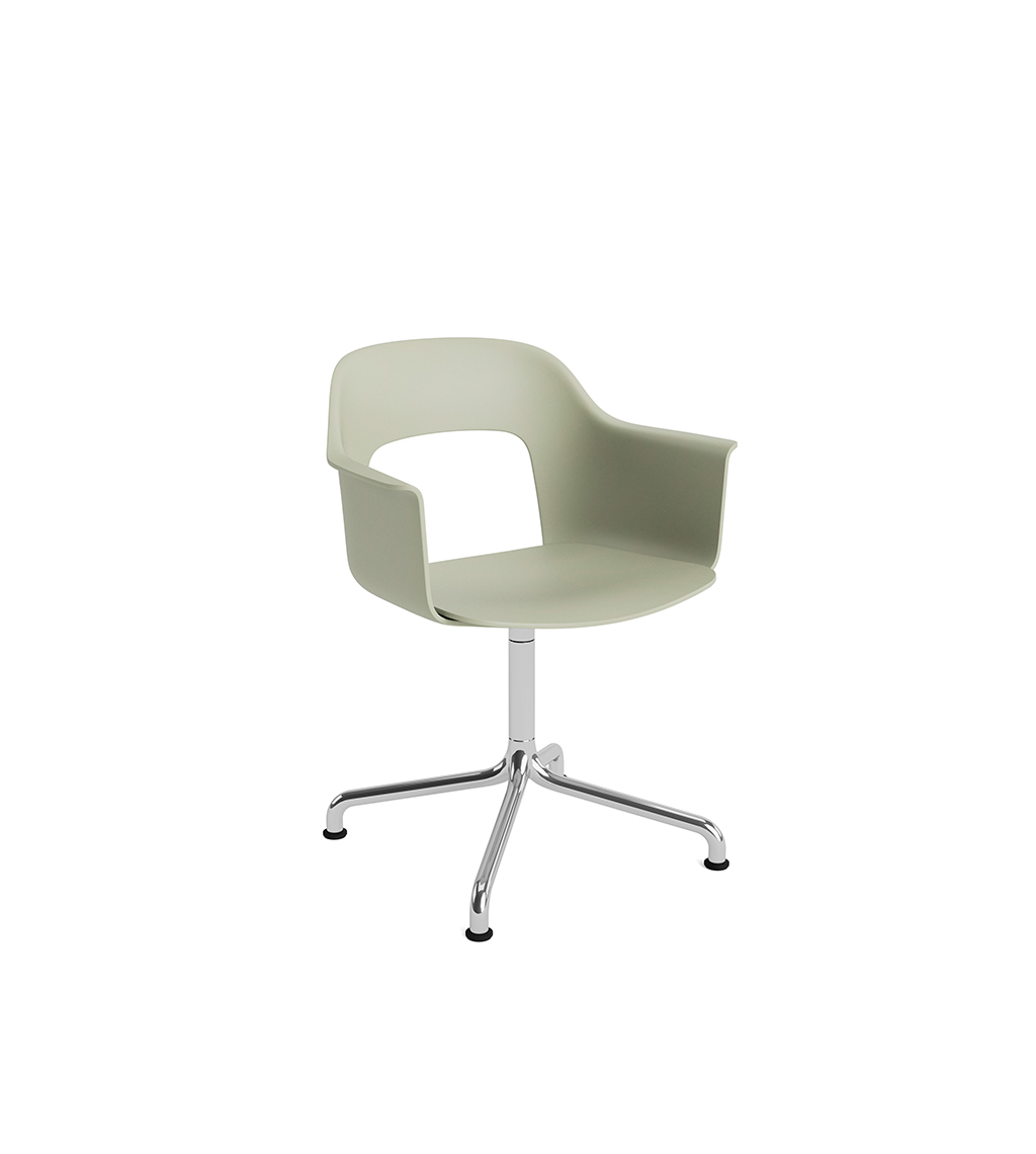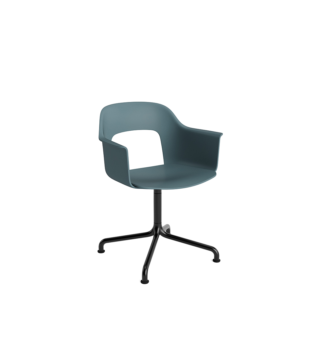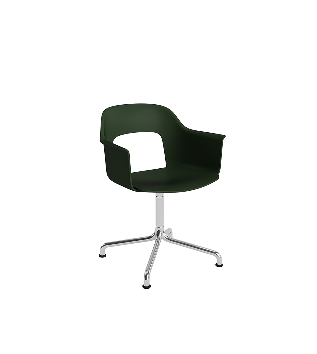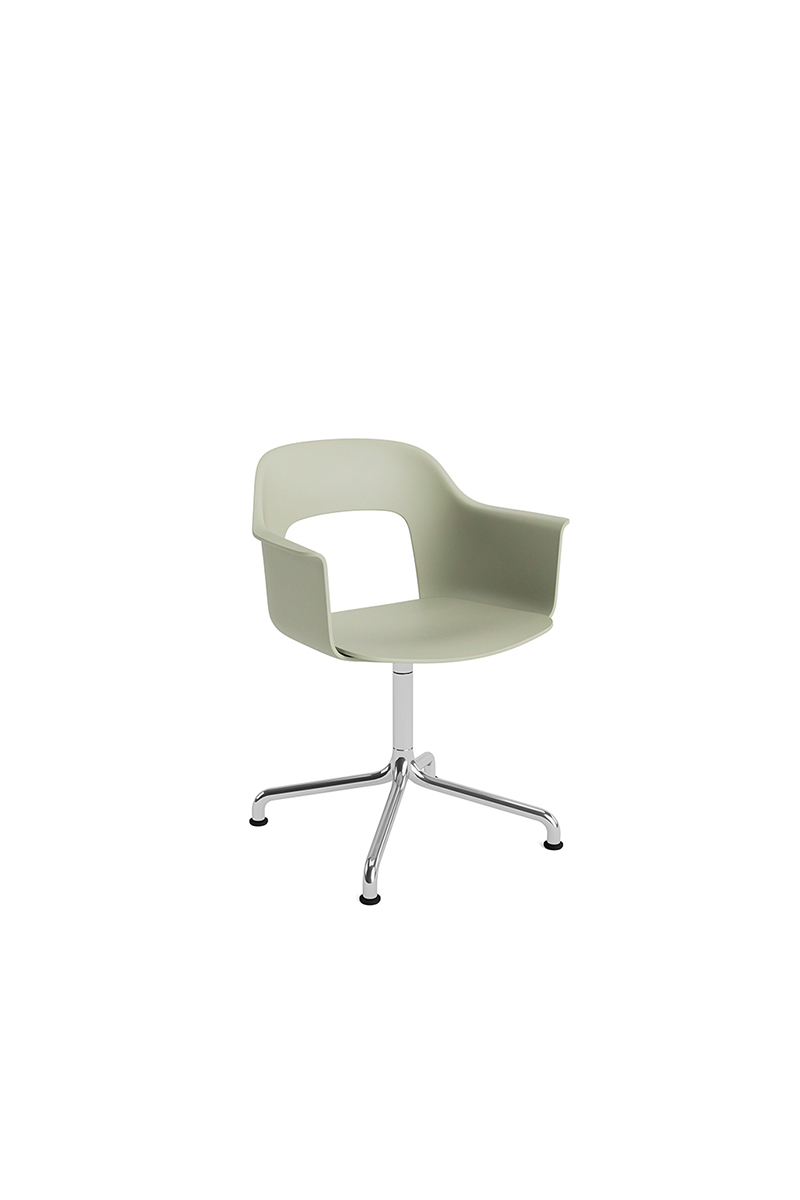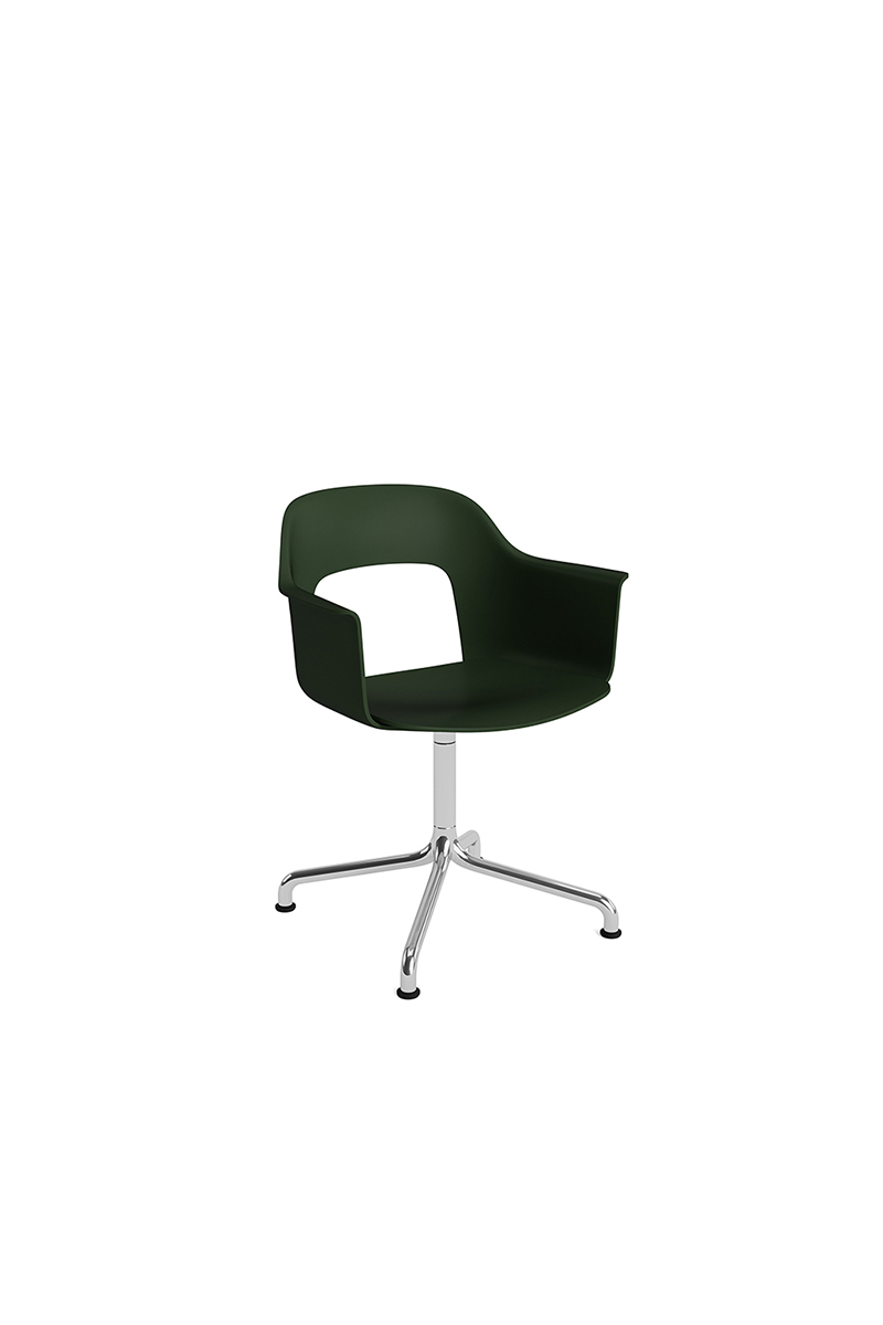 LAYOUT 252 – kėdė su porankiais, plastiko atlošu, medžio lukšto sėdimąja dalimi bei sukama aliuminio baze.