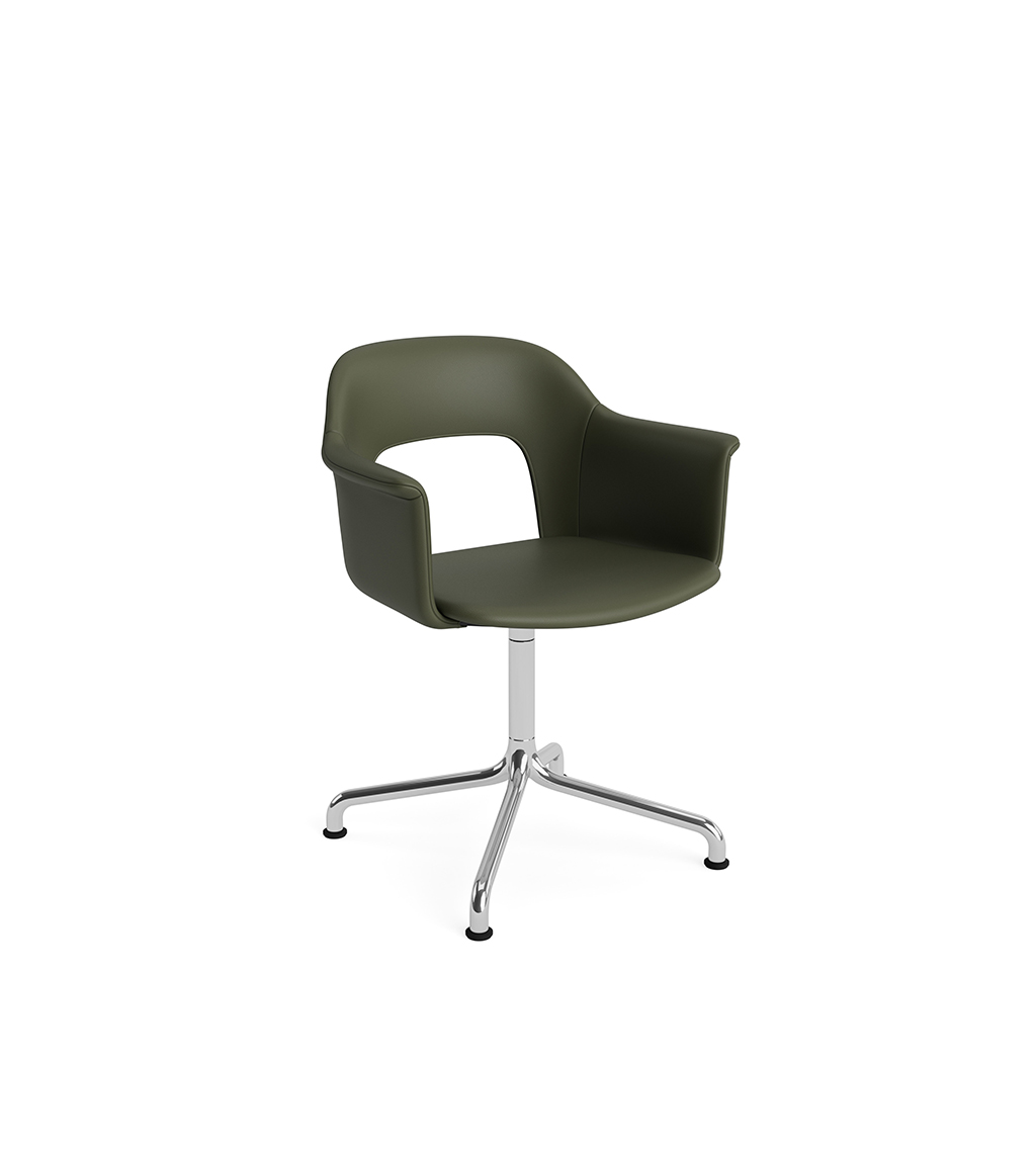 LAYOUT 254 – pilnai audiniu arba oda vilkta kėdė su porankiais ir sukama aliuminio baze.