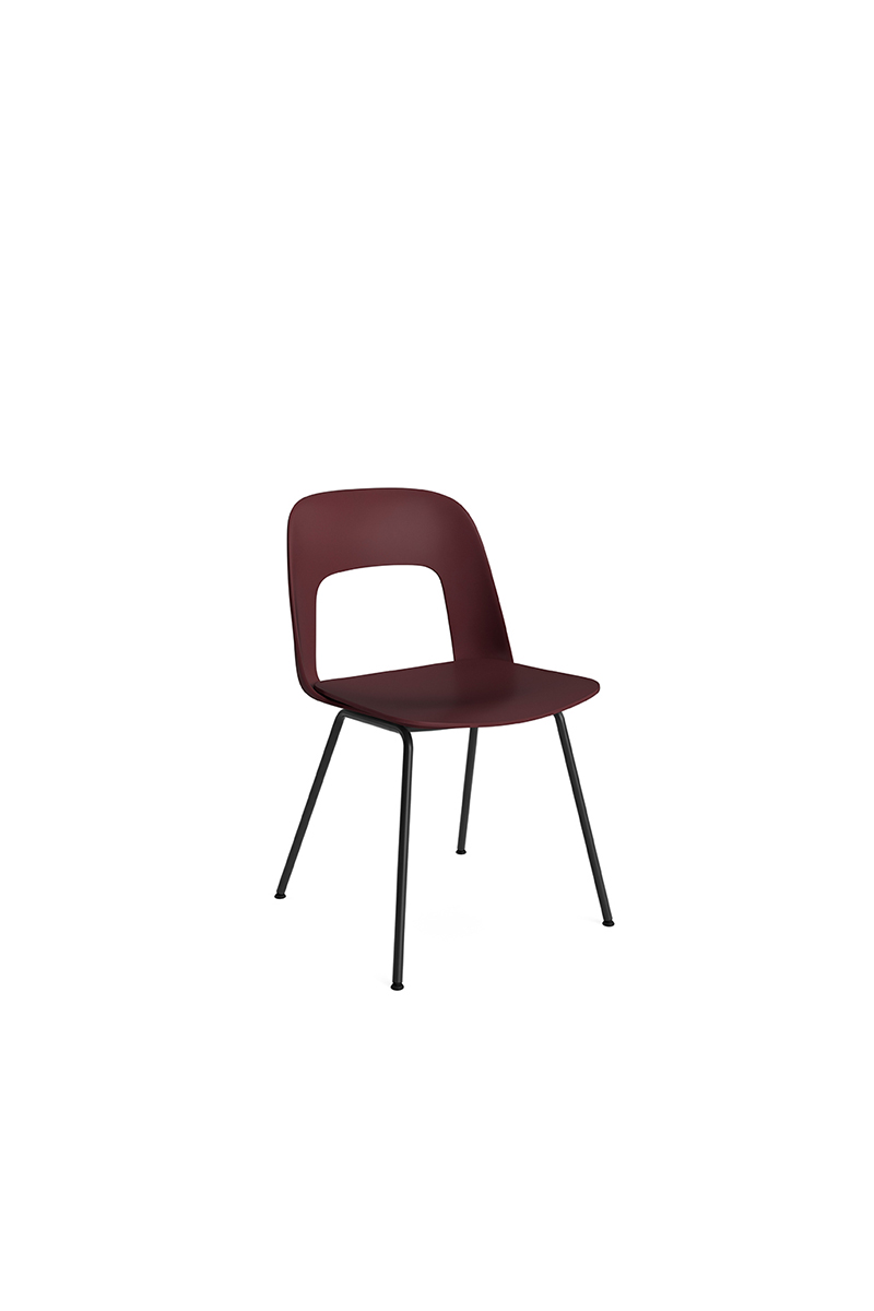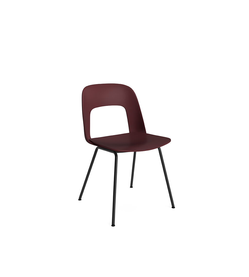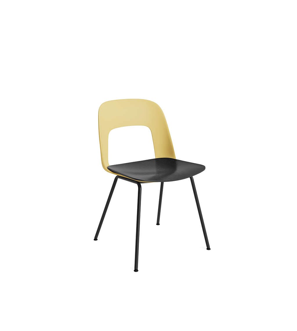 LAYOUT 112 – kėdės versija plastiko atlošu, medžio lukšto sėdimąja dalimi bei plieno kojelėmis.