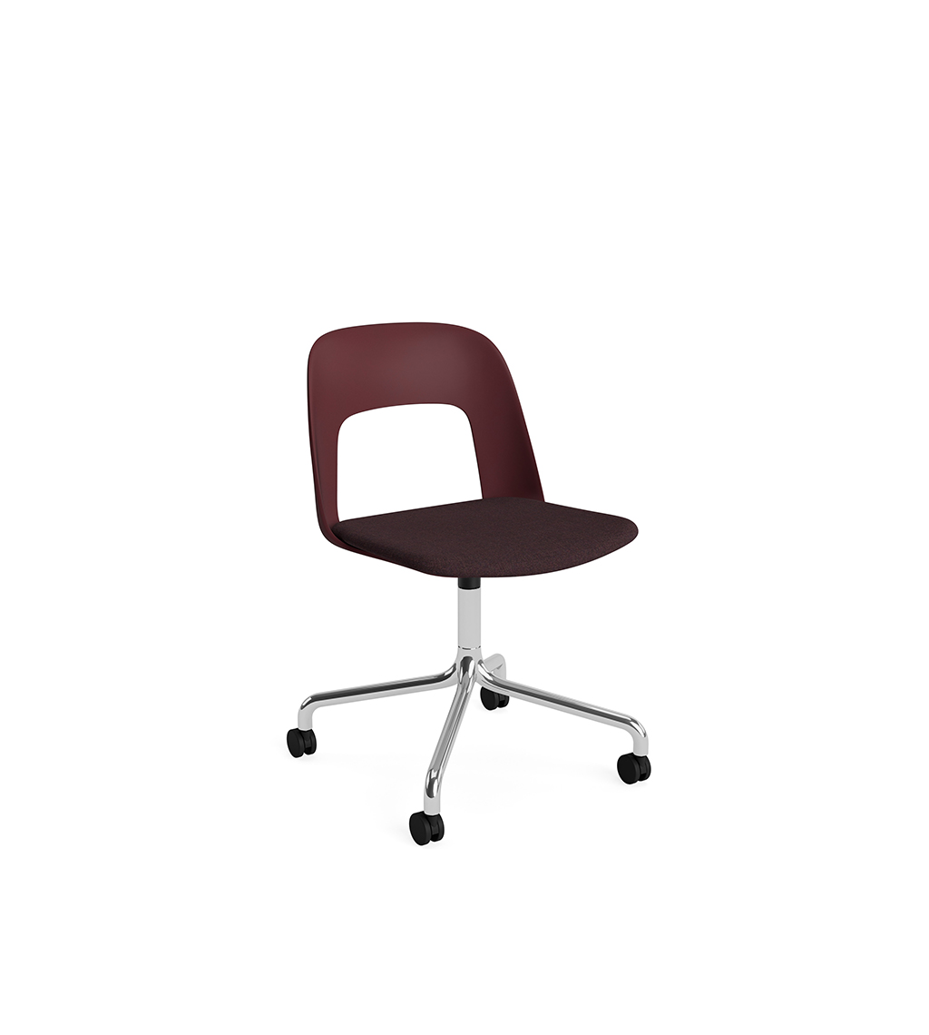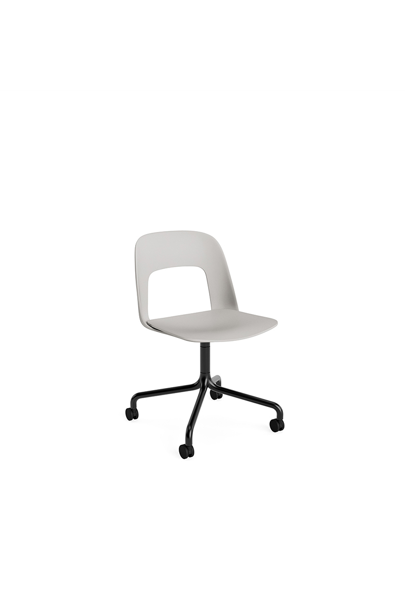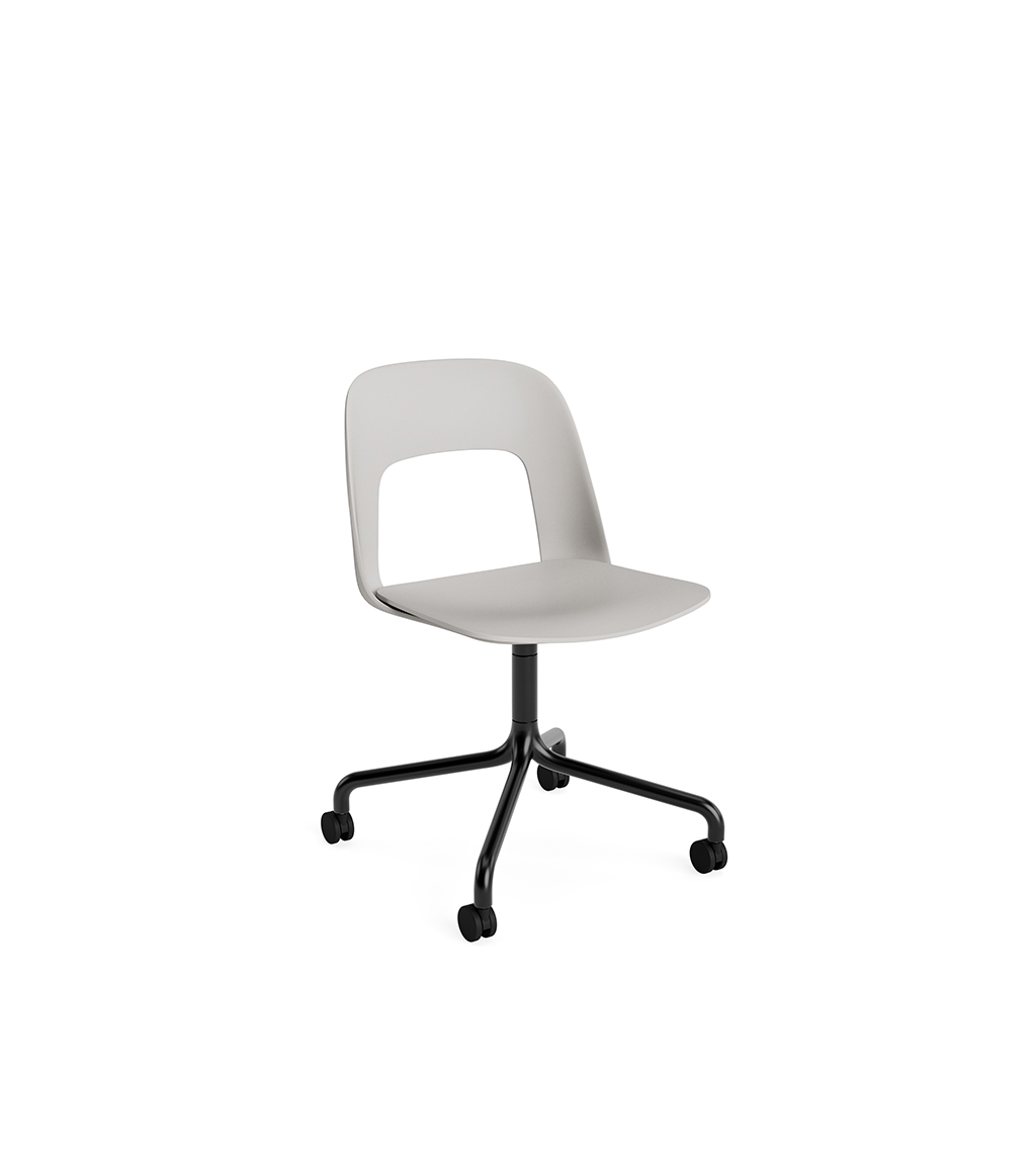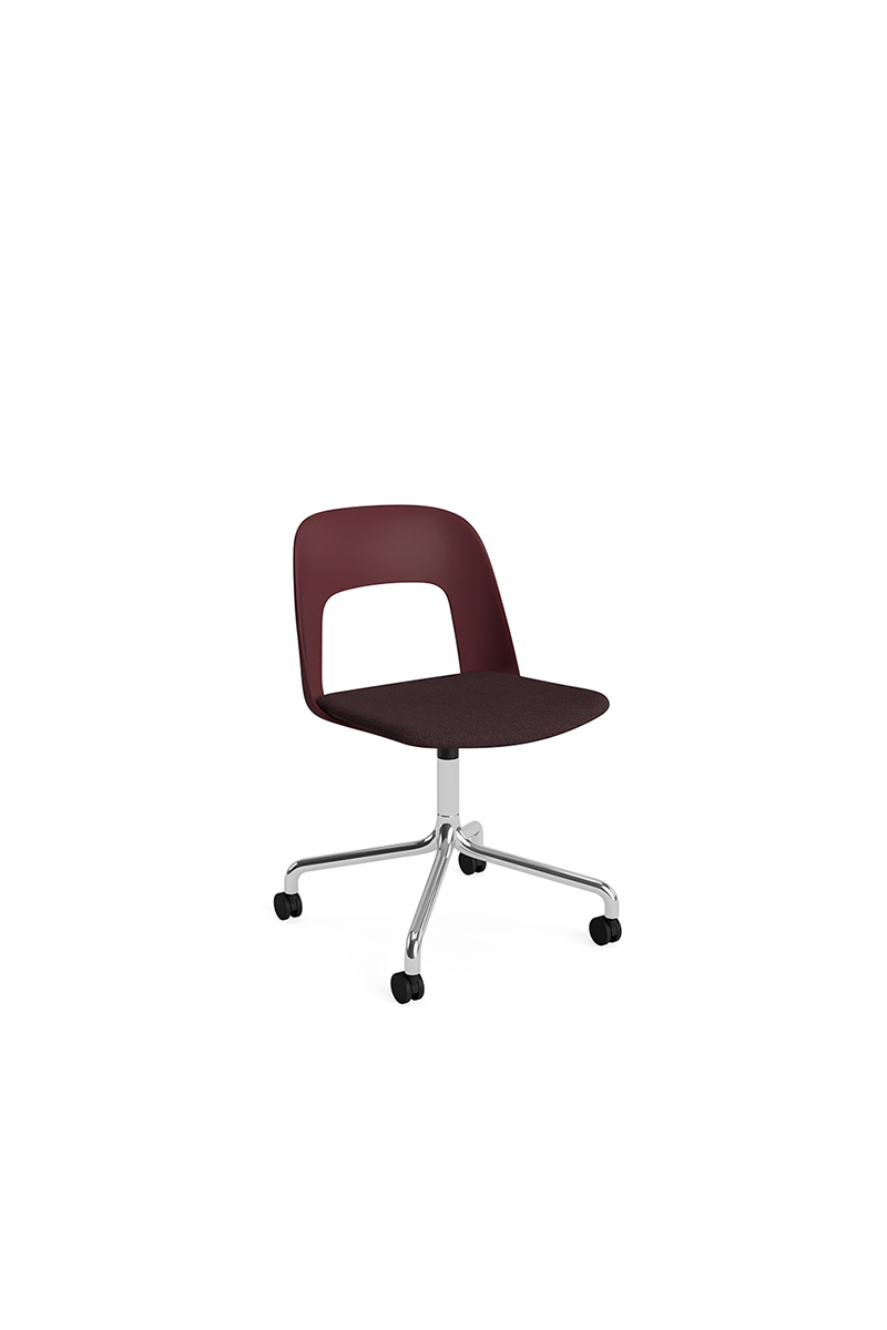 LAYOUT 162 – kėdės versija plastiko atlošu, medžio lukšto sėdimąja dalimi bei sukama aliuminio baze.