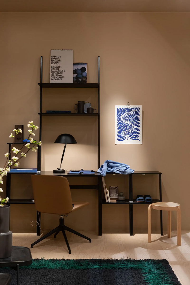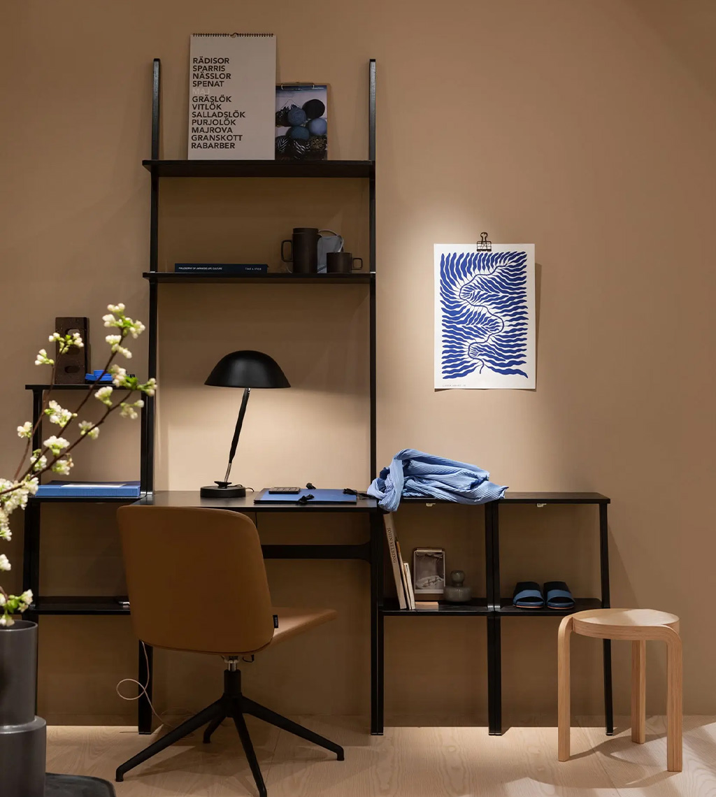 LIBRI darbo stalas, subtiliu skulptūrišku siluetu, leidžia susikurti tvarkingą, estetišką ir įkvepiančią darbo vietą. Stalas tvirtinamas prie sienos ir gali būti derinamas su kitomis LIBRI kolekcijos lentynomis. Reguliuojamos kojelės padeda stabiliai pastatyti baldą ant nelygių grindų.