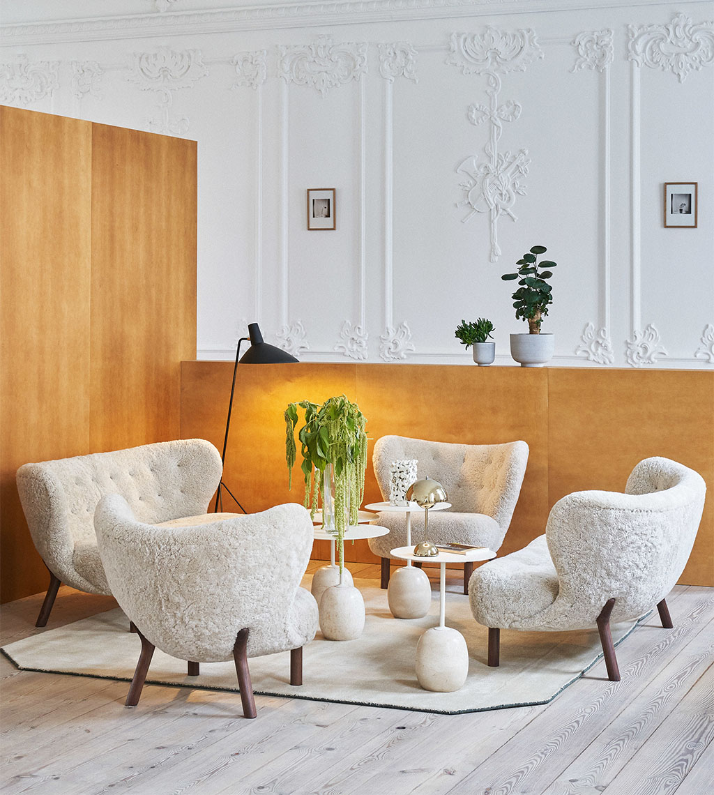 LITTLE PETRA – legendinio danų architekto bei baldų kūrėjo Viggo Boesen kūrinys, atgimęs &Tradition rankose. Sukurta dar 1938m. bei pavadinta dizainerio uošvienės garbei, mažoji Petra (iš anglų k. Little Petra) ir stebina, ir keri ergonomišku sėdėjimo komfortu bei unikalia proprocija, primenančia po žalią pievą pasklidusias minkštas aveles…