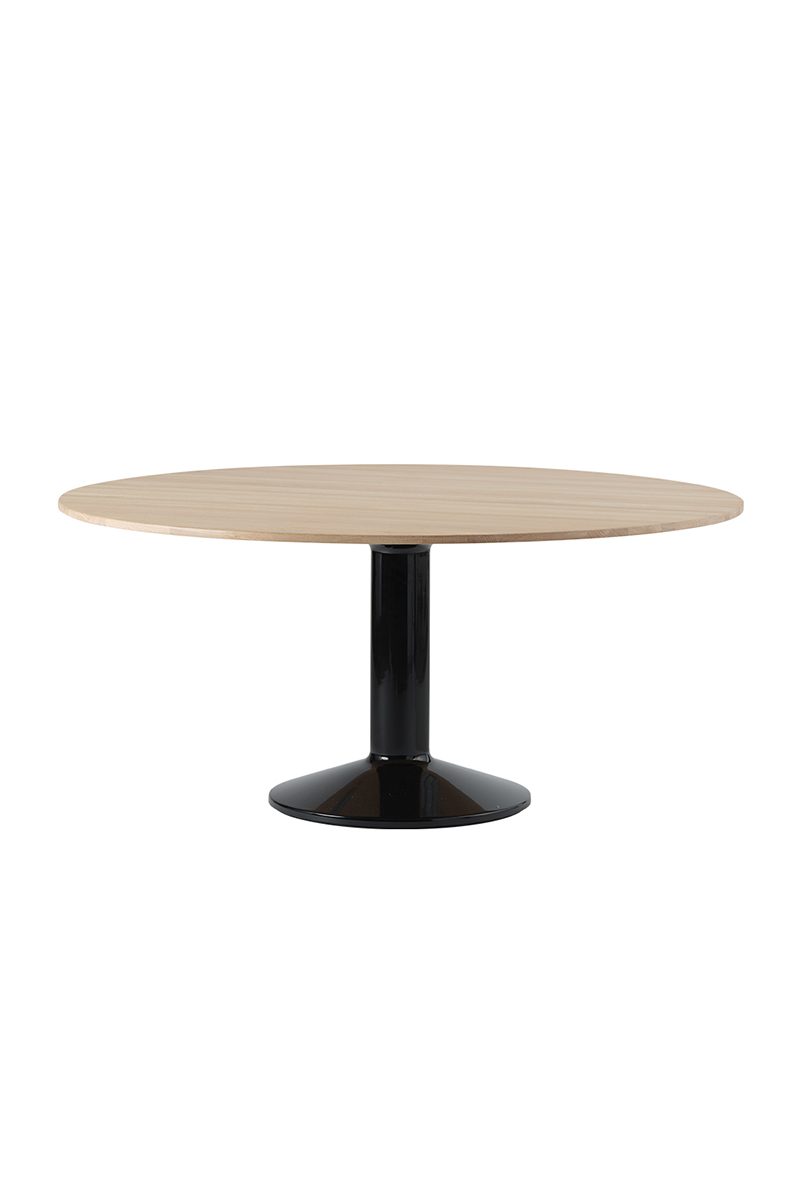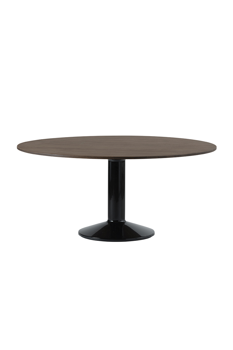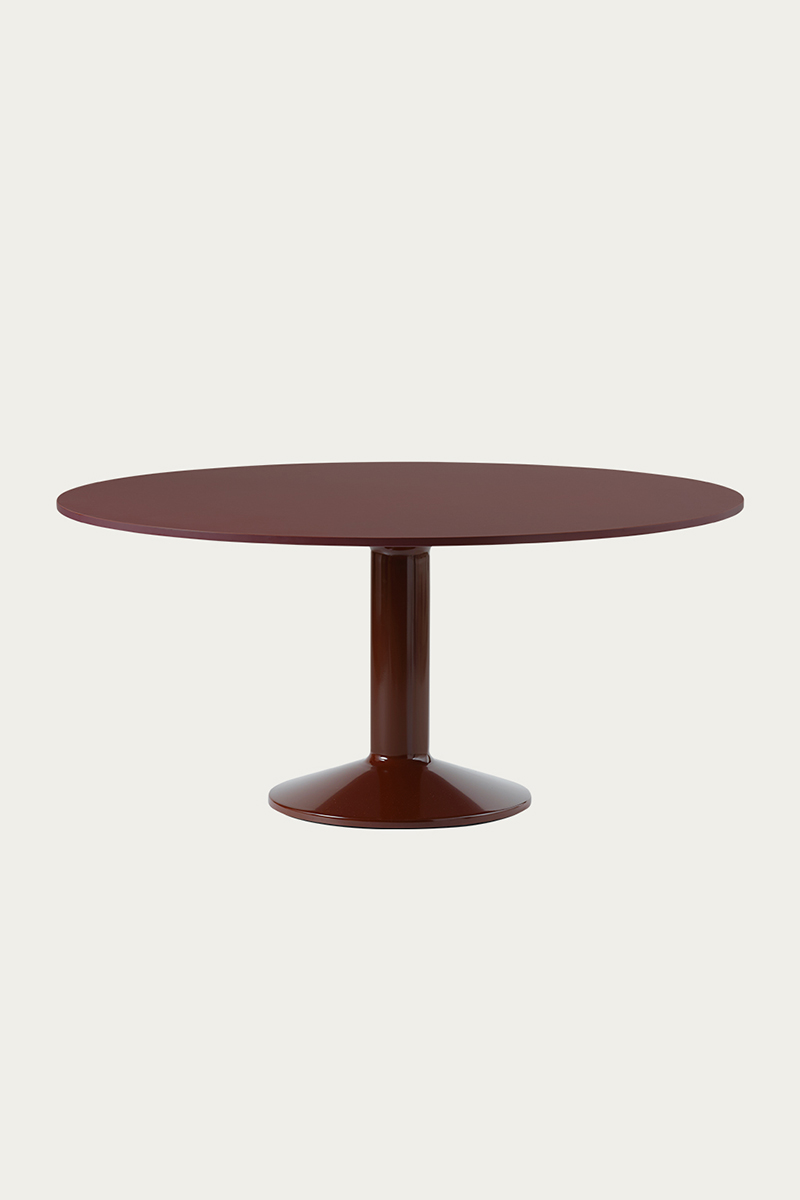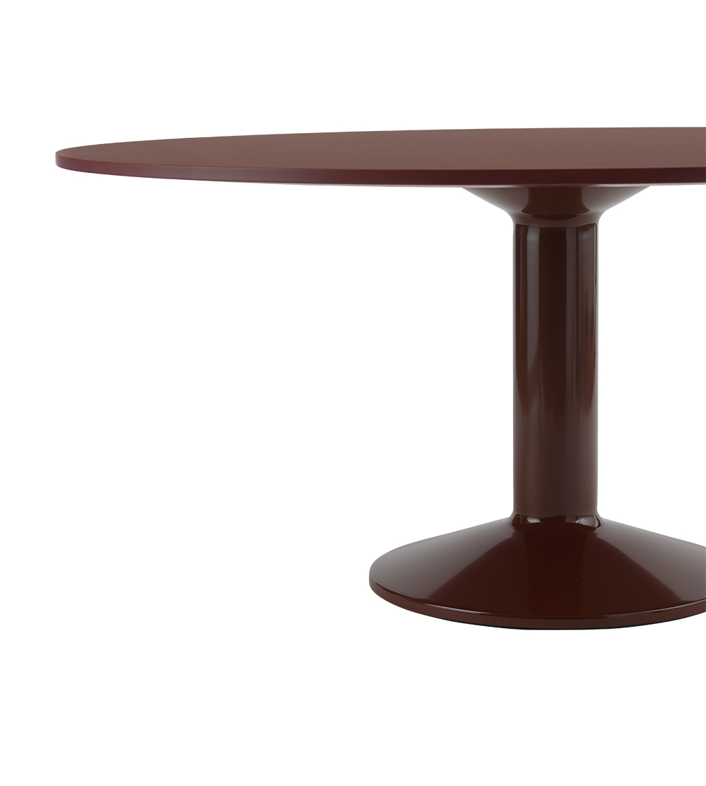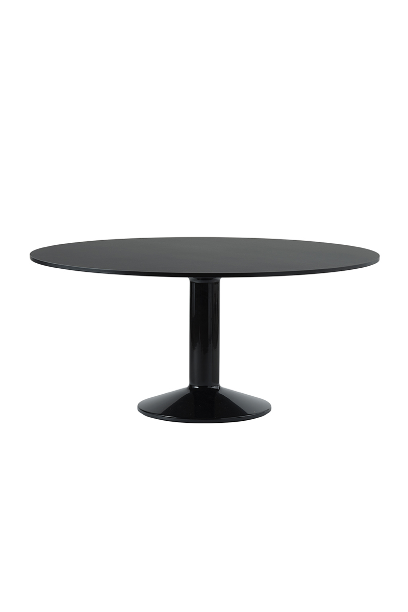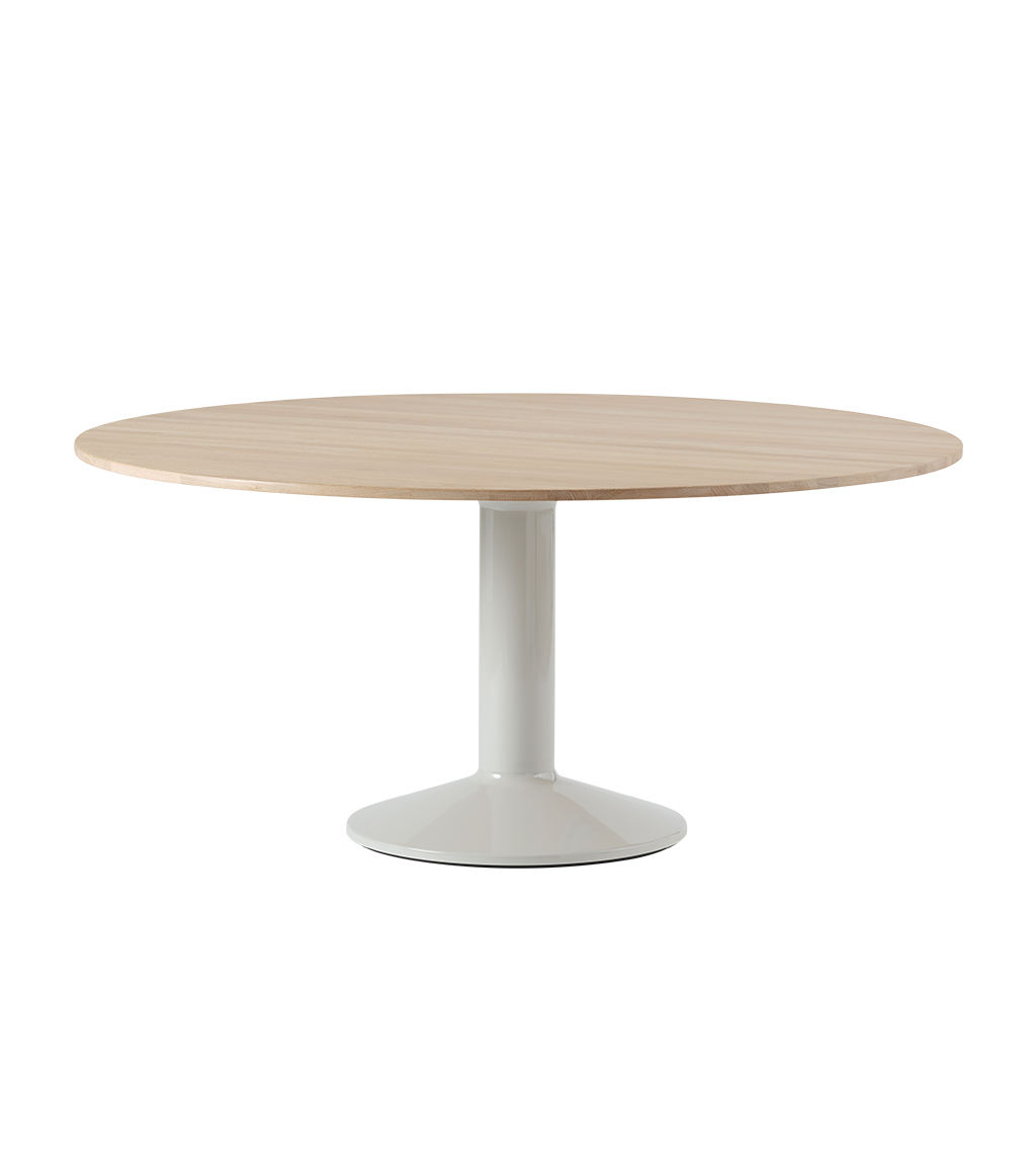 MIDST stalo pavadinimas (angl. midst – viduryje) nurodo į namų centrą, kur stalas tampa pagrindine ašimi, traukos tašku, vieta gurmaniškoms kelionėms, ilgiems pasisėdėjimams ir bendravimui. Apvali stalviršio forma suteikia erdvumo pojūtį – čia visada atsiras vietos dar vienam svečiui. Rafinuotas dizainas, kontrastingos medžiagos ir charakteringas siluetas leidžia pritaikyti stalą įvairiausiose erdvėse ir kontekstuose. Jūsų pasirinkimui – tvirta, blizgiai dažyta, kolonos formos plieno bazė, derinama su matiniu baldinio linoleumo, marmuro ar tvirto ąžuolo stalviršiu ir trys stalo dydžiai.