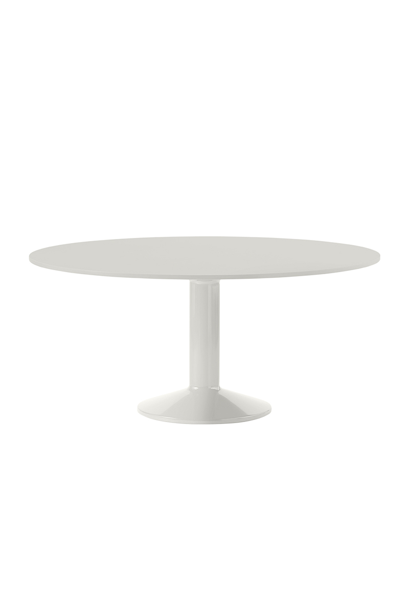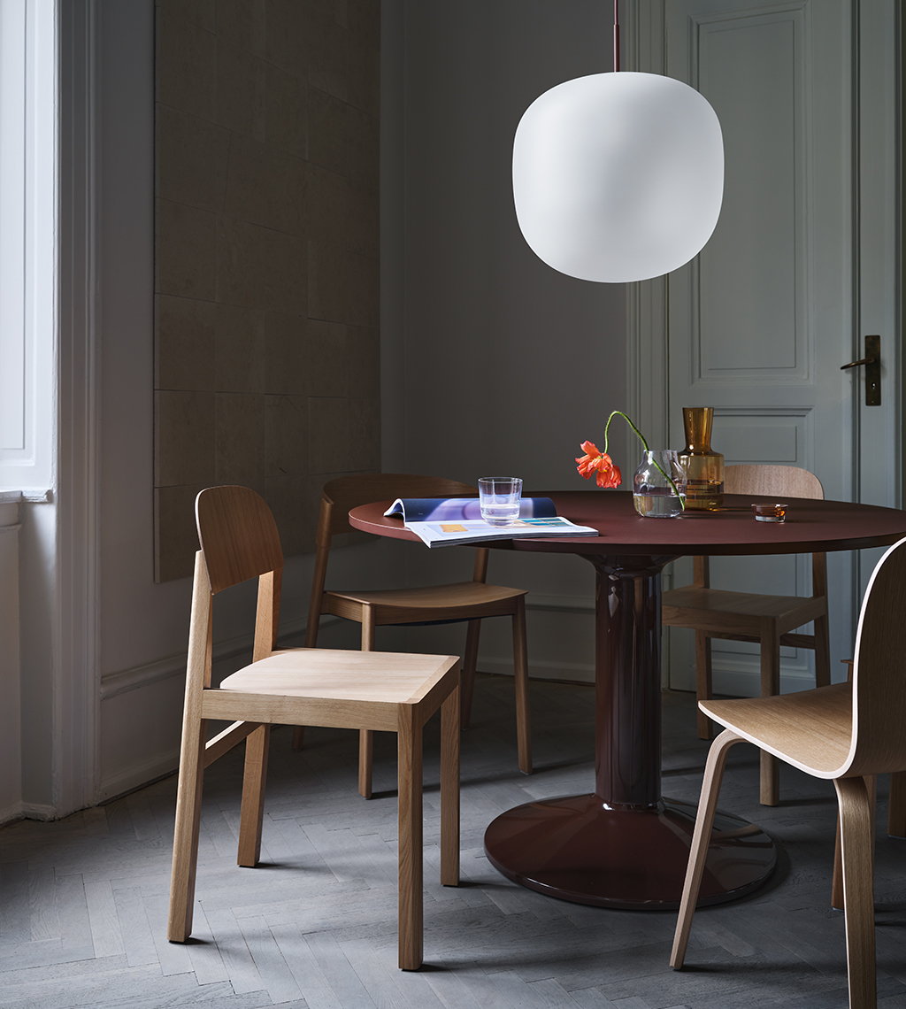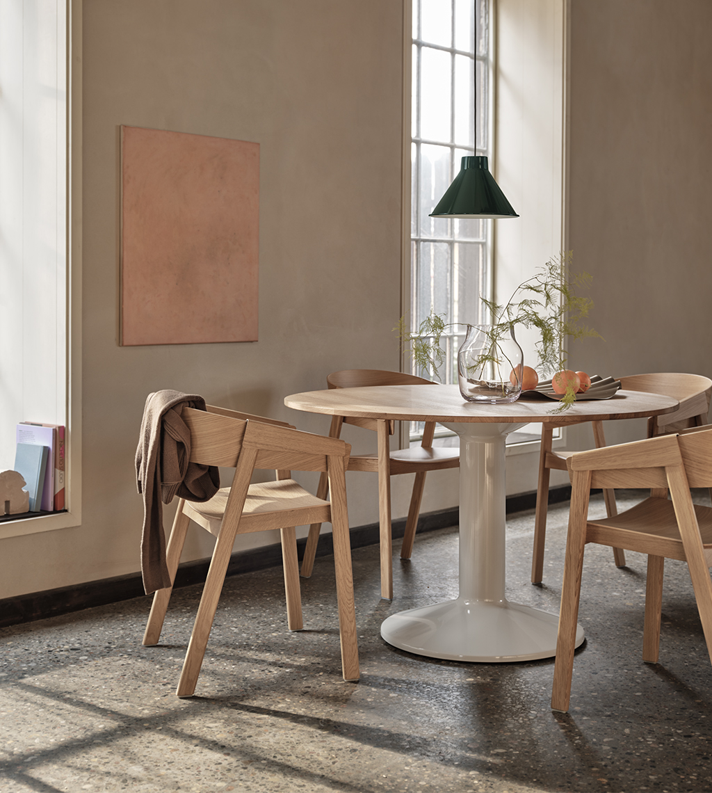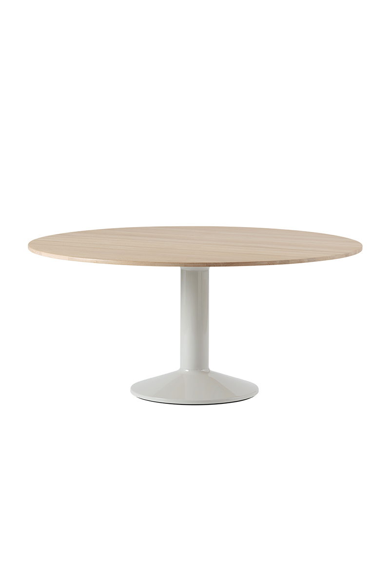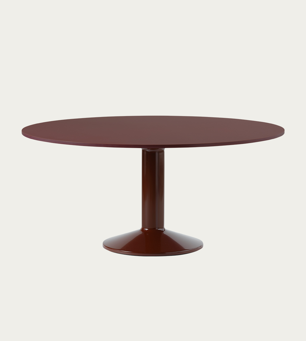 MIDST stalo pavadinimas (angl. midst – viduryje) nurodo į namų centrą, kur stalas tampa pagrindine ašimi, traukos tašku, vieta gurmaniškoms kelionėms, ilgiems pasisėdėjimams ir bendravimui. Apvali stalviršio forma suteikia erdvumo pojūtį – čia visada atsiras vietos dar vienam svečiui. Rafinuotas dizainas, kontrastingos medžiagos ir charakteringas siluetas leidžia pritaikyti stalą įvairiausiose erdvėse ir kontekstuose. Jūsų pasirinkimui – tvirta, blizgiai dažyta, kolonos formos plieno bazė, derinama su matiniu baldinio linoleumo, marmuro ar tvirto ąžuolo stalviršiu ir trys stalo dydžiai.