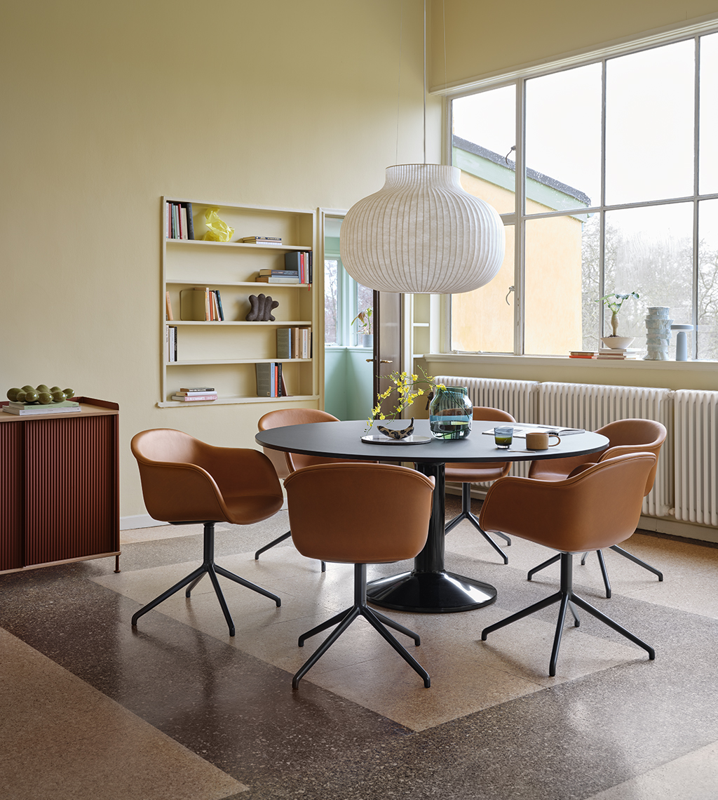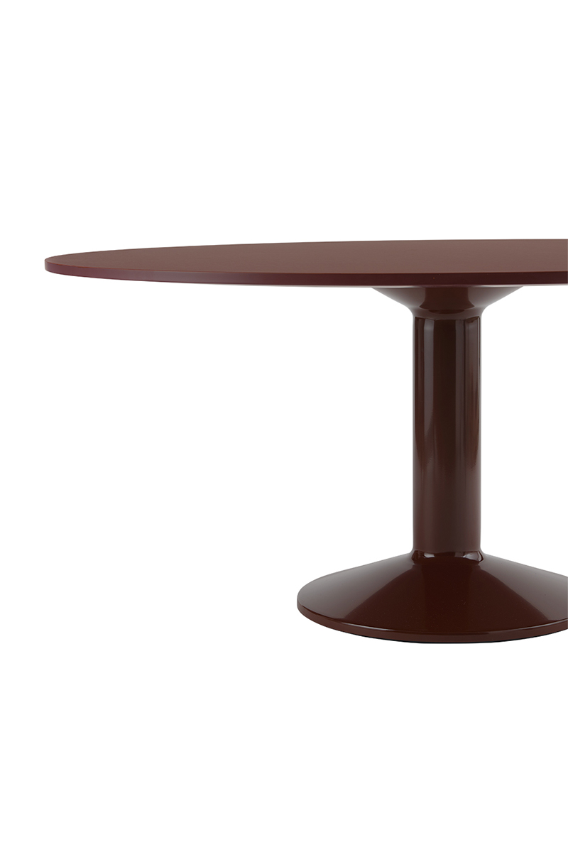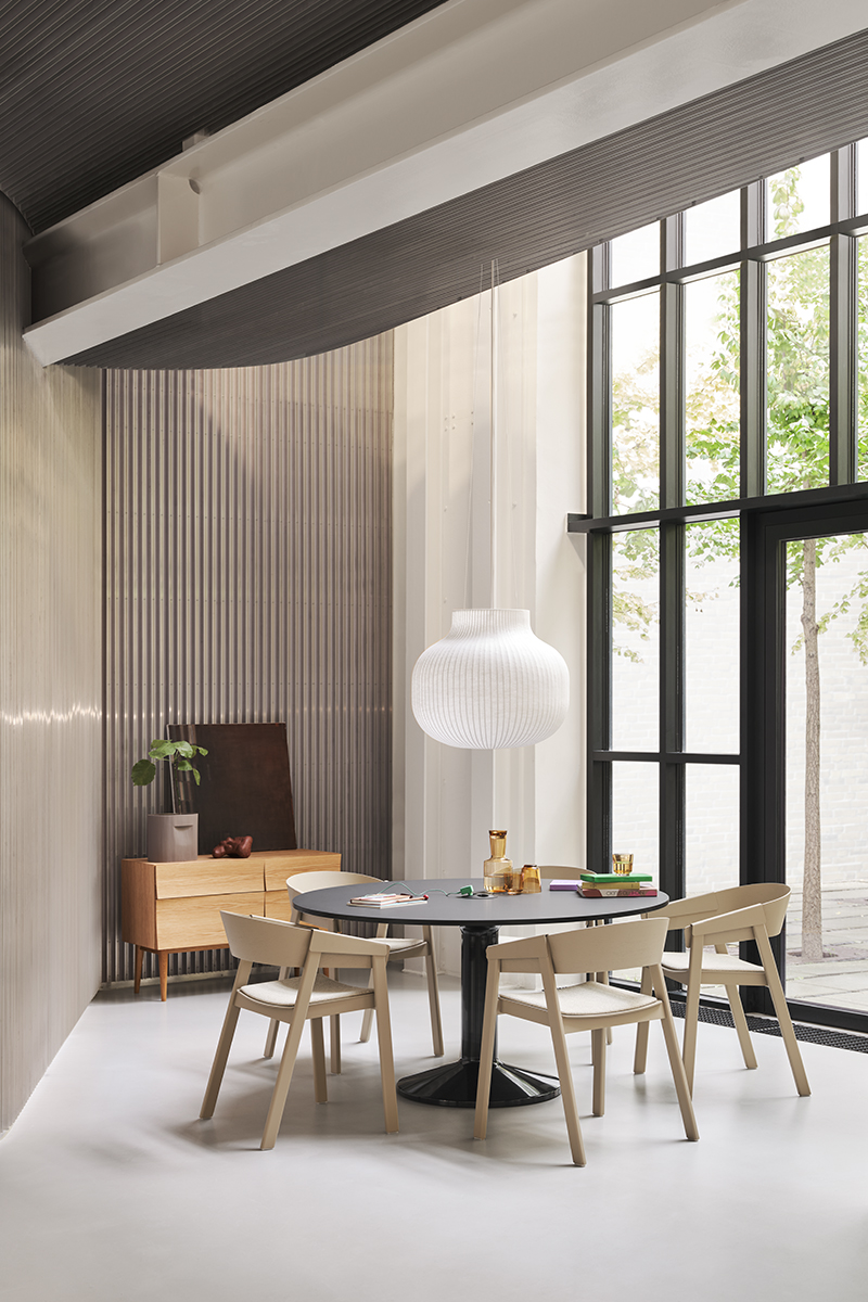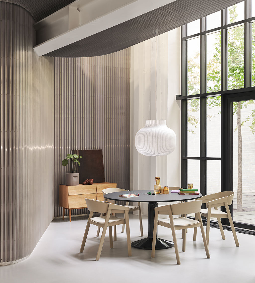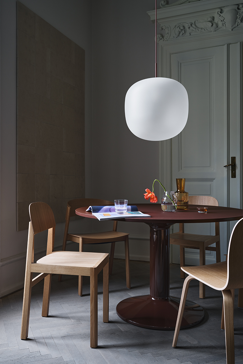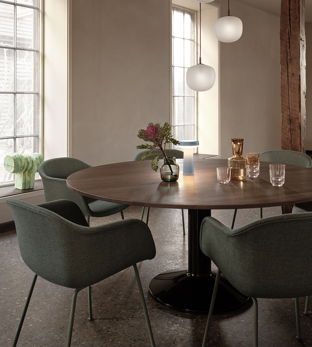 MIDST stalo pavadinimas (angl. midst – viduryje) nurodo į namų centrą, kur stalas tampa pagrindine ašimi, traukos tašku, vieta gurmaniškoms kelionėms, ilgiems pasisėdėjimams ir bendravimui. Apvali stalviršio forma suteikia erdvumo pojūtį – čia visada atsiras vietos dar vienam svečiui. Rafinuotas dizainas, kontrastingos medžiagos ir charakteringas siluetas leidžia pritaikyti stalą įvairiausiose erdvėse ir kontekstuose. Jūsų pasirinkimui – tvirta, blizgiai dažyta, kolonos formos plieno bazė, derinama su matiniu baldinio linoleumo, marmuro ar tvirto ąžuolo stalviršiu ir trys stalo dydžiai.