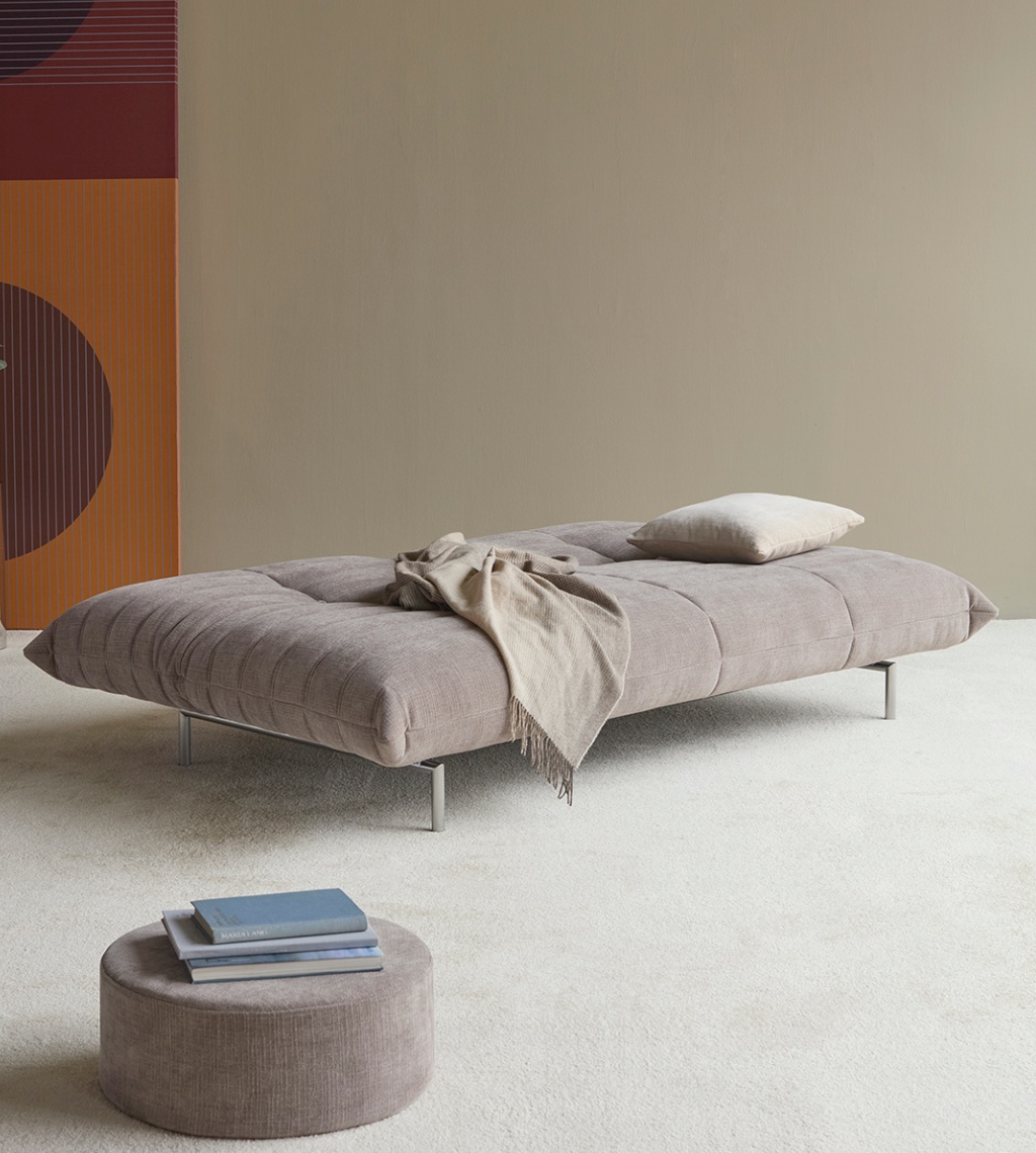 Minkšta, nesuvaržyta forma, išraiškingos siūlės ir elegantiškos plieno kojelės suformuoja autentišką, atsipalaidavusį MIKUNJO sofos charakterį. Šis universalus modelis puikiai tiks pagrindinio svetainės baldo vaidmenyje, kaip papildomas minkštas baldas darbo ar vaikų kambaryje. Pilnai išnaudokite gyvenamąją erdvę derindami MIKUNJO sofą su vienu ar keliais foteliais. Fotelį išskleidus ir priglaudus prie sofos suformuosite poilsio zoną su šezlongu, suskleidus – turėsite papildomą vietą atsisėsti. Dviejų dalių, trijų skirtingų pozicijų, lengvai reguliuojamas atlošas. MIKUNJO pasiūlo „Double Spring“ čiužinį, kuris džiugina minkštu sėdėjimo ir miego komfortu.