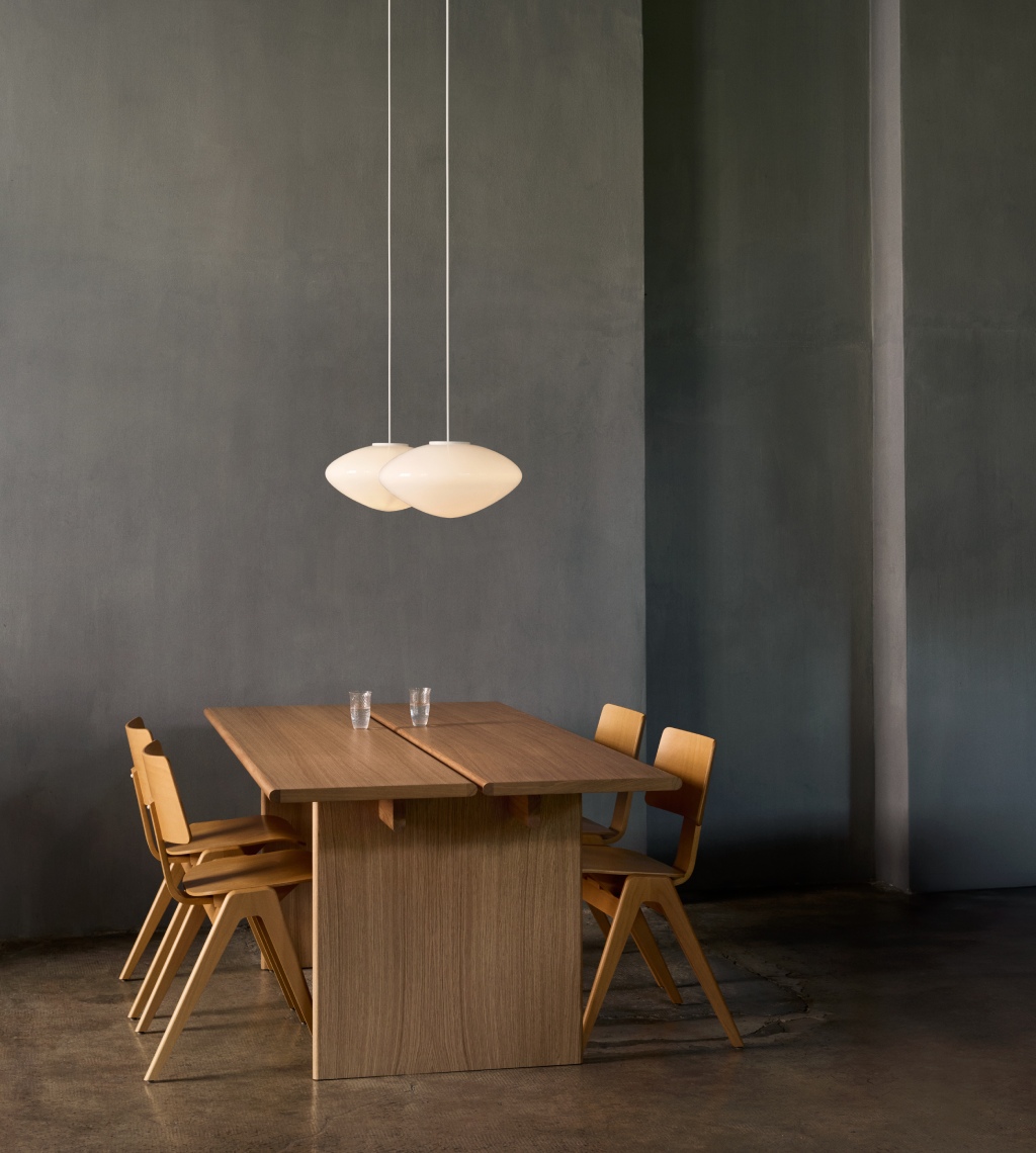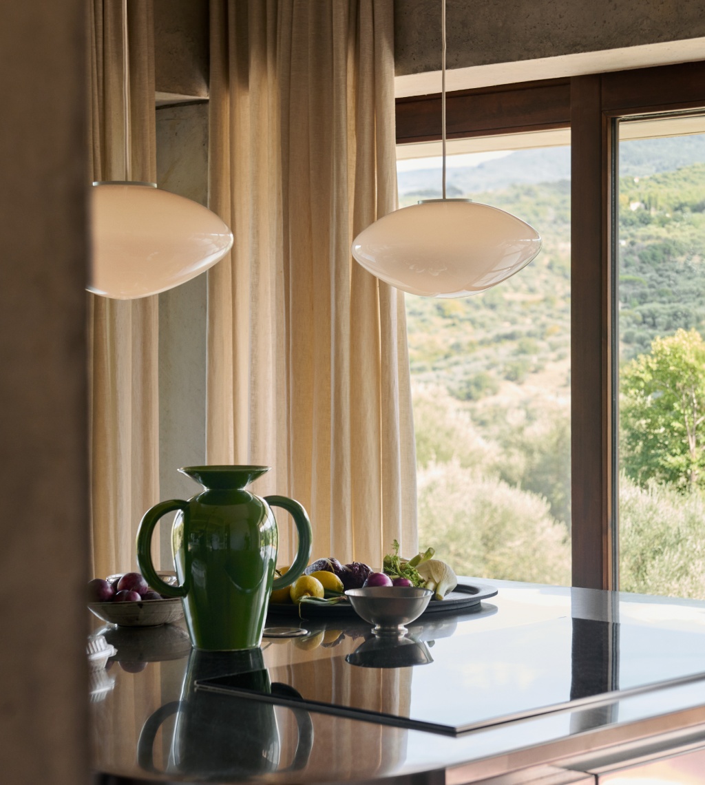 Apšvietimas gamtoje priklauso ne tik nuo paros laiko, tačiau ir nuo oro sąlygų. Rytinės saulės spinduliuose besišildantys rasos lašeliai skleidžia ypatingą šviesą bei kuria magišką, svajingą atmosferą. Įkvėpti bundančios gamtos grožio dizainerių duetas pristato MIST šviestuvų seriją. Plastiška aptaki forma, minimalistinė dizaino kalba – MIST organiška ir elegantiška šviesos buveinė. Gaminama iš burna pūsto opalinio stiklo, siūlomi du dydžiai, leidžiantys kurti dinamiškas šviestuvų kompozicijas erdvėje.