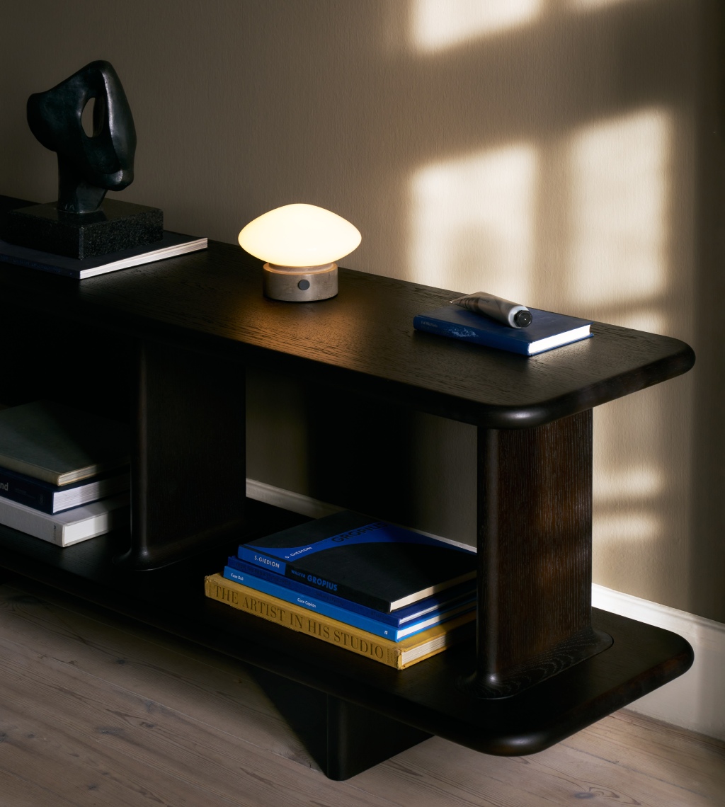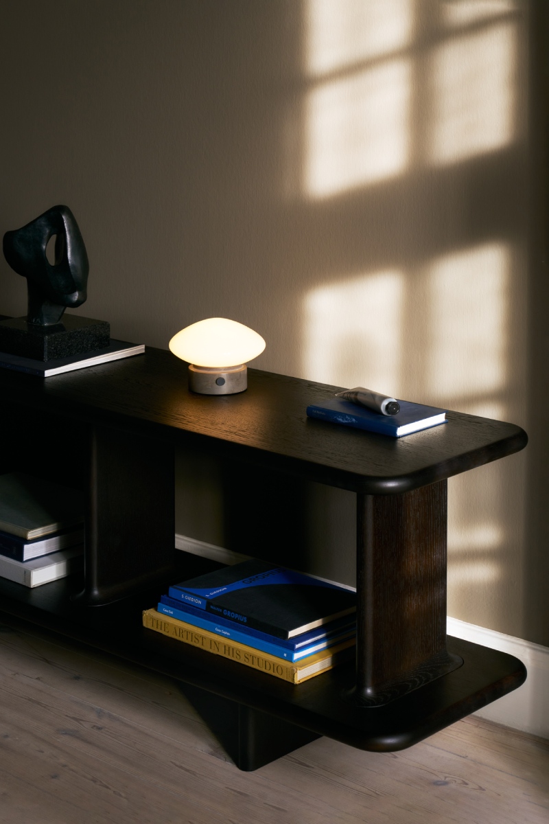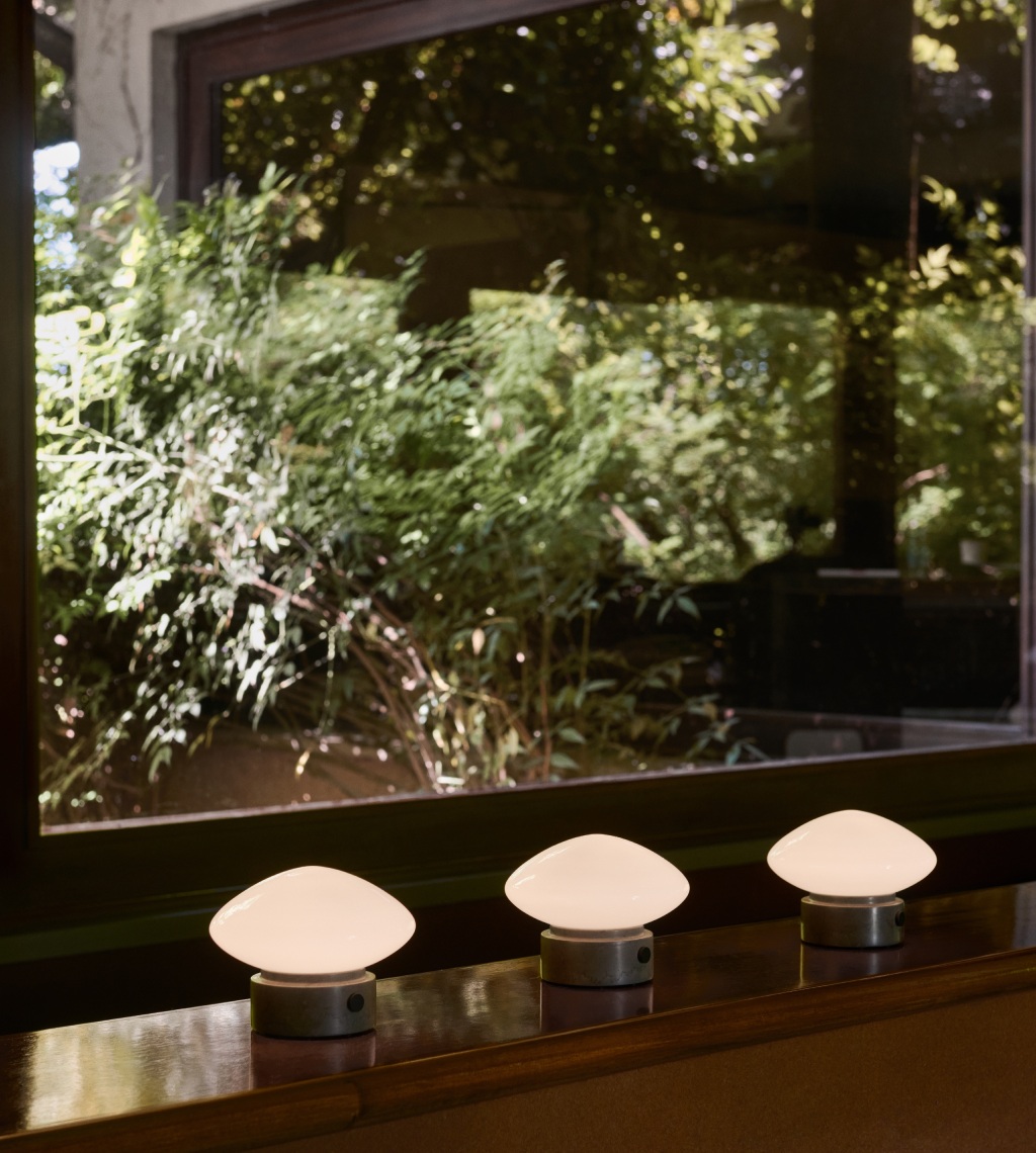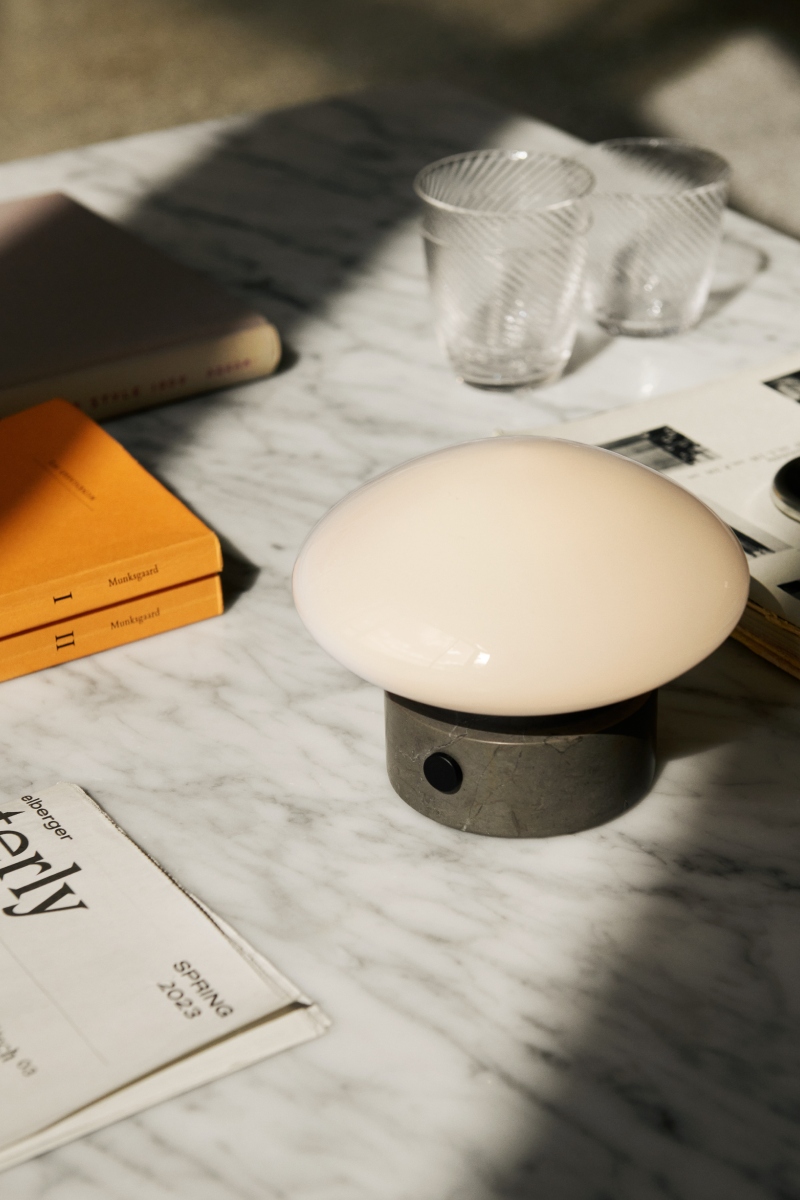 MIST AP21 – nešiojamas serijos šviestuvas, gaminamas iš burna pūsto opalinio stiklo ir marmuro bazės.