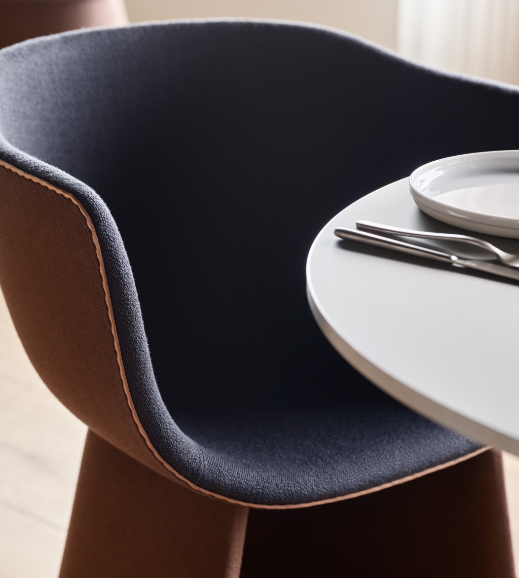 MONOLIT kėdės sukurtos ilgiems, jaukiems pasisėdėjimams prie stalo. Išskirtinė kėdės forma apgaubia sėdintįjį, suteikdama nepakartojamą komfortą, o naudojant viešose erdvėse – prireikus pasiūlo privačią vietą daiktų pasidėjimui po sėdimąja dalimi. Ši ryški, charakteringa ir šiuolaikiška kėdė savo elegantišku siluetu suteiks visoms progoms subtilios prabangos ir rafinuotumo. Susikurkite savo erdvei tinkamiausią kėdę pasirinkę patinkantį audinį ar rinkitės dviejų audinio spalvų išraiškingus derinius.