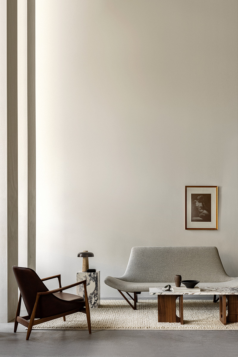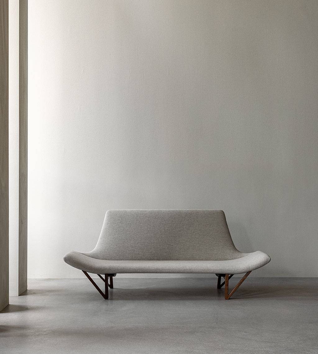 Elegantiškoji PAGODE SOFA – vyro ir žmonos, dizainerių Tove ir Edvard Kindt-Larsen kūrinys, modernistinis praėjusio amžiaus šedevras. Artistiška ir unikali sofos silueto koncepciją įkvėpimą atranda tradicinėje Azijos architektūroje (pagoda – daugiaaukščio bokšto pavidalo, kvadrato arba aštuonkampio plano budistų memorialinis statinys ir relikvijų saugykla). Plastiška, organiškai susiliejanti su aplinka, PAGODE SOFA išsiskiria natūraliam gamtos peizažui būdinga forma, tačiau tuo pačiu žavi ir itin savita, futuristine išraiška. Elegantiška trikampio formos kojelių konstrukcija primena laikančiuosius stogo elementus, architektūrai būdinga maniera suformuoja tikslų ir apskaičiuotą baldo charakterį. Sukurta 1956 m. PAGODE SOFA – laiko neskaičiuojanti dizaino ikona.