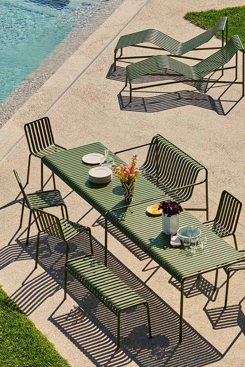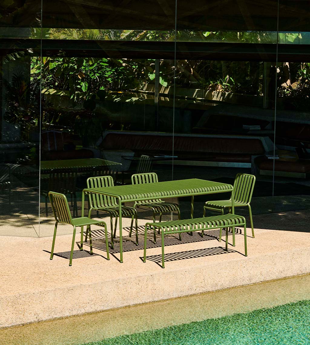 PALISSADE lauko baldų kolekcija – dizainerių Ronan & Erwan Bouroullec šedevras. Kolekcijos pradžia buvo netikėta ir evoliucionavo iš bandomųjų brolių Bouroullec studijoje gimusių prototipų. PALISSADE serijos baldai grakštūs, patvarūs, klasikinių formų, paprastos, tačiau preciziškos konstrukcijos. Kiekvienas PALISSADE savitas subtiliais kampų nuokrypiais bei linkių variacijomis, padedančiais išlaikyti besiilsintį žmogaus kūną natūralioje pusiausvyroje. Patogus ir elegantiškas dizainas, derinamas su subtilių spalvų palete, atrodys puikiai tiek miesto, tiek užmiesčio aplinkoje, jos neužgožiant, o papildant.