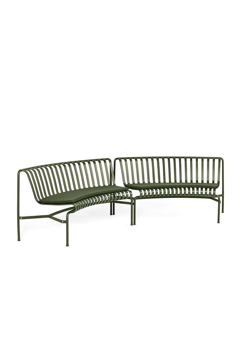 PALISSADE PARK DINING BENCH CUSHIONS – specialiai PALISSADE PARK kolekcijos suolams skirtas paminkštinimas. Pagamintas iš praktiškojo olefino (olefinas – sintetinis pluoštas), paminkštinimas išsisikiria neslystančiu, stabiliu pagrindu bei teflonu padengtu, vandeniui atspariu paviršiumi. Komplekte 2 vnt.
