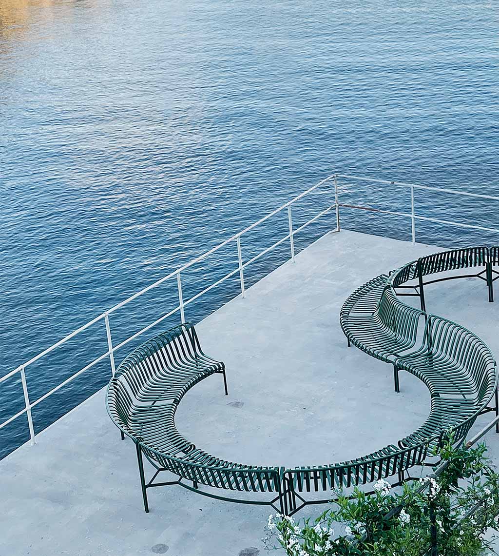 Evoliucionavęs iš eksperimentinių Ronan & Erwan Bouroullec studijoje gimusių prototipų, gaivios estetikos gūsis, vardu PALISSADE, pažadino apsnūdusias lauko erdves ir pakvietė visus atrasti iki tol nepatirtą eleganciją jose. Grakštūs, patvarūs, klasikinių formų, paprastos, tačiau preciziškos konstrukcijos baldai pakerėjo stulbinančiu grožiu bei išskirtiniu komfortu. Neįtikėtina serijos sėkmė paskatino kūrėjus ir toliau plėsti PALISSADE galimybių ribas ir dar atidžiau pažvelgti į žmogaus ir artimų lauko erdvių santykį. Atkartojantys PALISSADE būdingą stilistiką, PALISSADE PARK BENCH suoleliai išsiskiria jiems patikėta pirmapradžio elemento misija: lyg muzikiniai garsai – nuostabūs solo, tačiau gebantys jungtis į įspūdingas kompozicijas bei formas. PALISSADE PARK BENCH skirti papildyti tiek viešas, tiek ir privačias lauko ar terasos erdves.