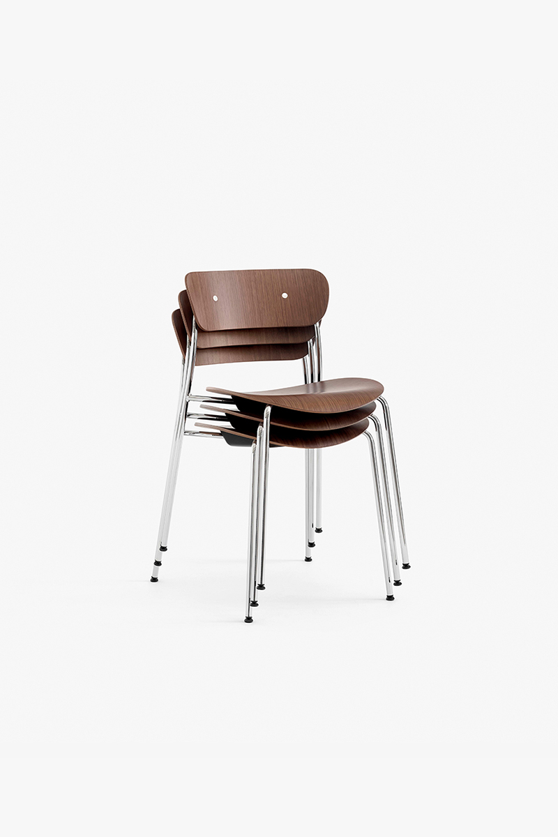 PAVILION kėdė, sukurta dizainerių dueto Anderssen & Voll, savo pavadinimu ir sukūrimo istorija susieta su legendiniu pastatu, esančiu pačioje Kopenhagos širdyje – „Langelinie Pavilion“. Šis iškilus miesto simbolis pirmą kartą buvo pastatytas 1885 metais, perstatytas 1902 metais, o trečiąjį kartą atgimė modernistinės architektūros pavidalu 1958 metais. Iškentęs nemažai negandų, šiomis dienomis pastatas naudojamas kaip renginių, švenčių ir priėmimų vieta. PAVILION kėdės – lengvos, tinkamos naudoti masiniams susibūrimams, sudedamos viena ant kitos, tačiau itin modernios, kaip ir pats „Langelinie Pavillion“ – su charakteriu. Plonos plieno kojelės suteikia lengvumo, o plastiškas siluetas, primindamas atsilaisvinusį virvės mazgą, tik sustiprina nesvarumo pojūtį.