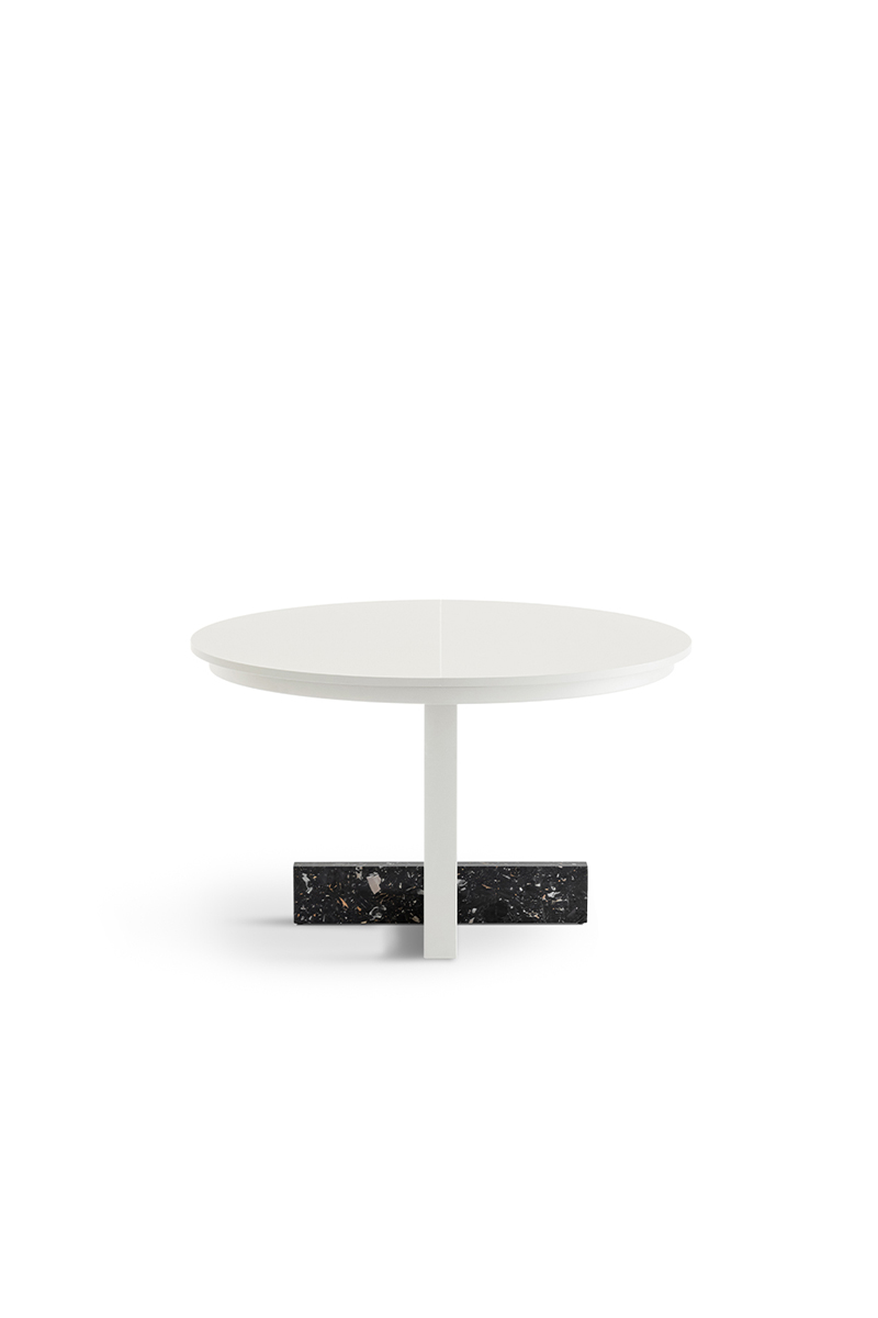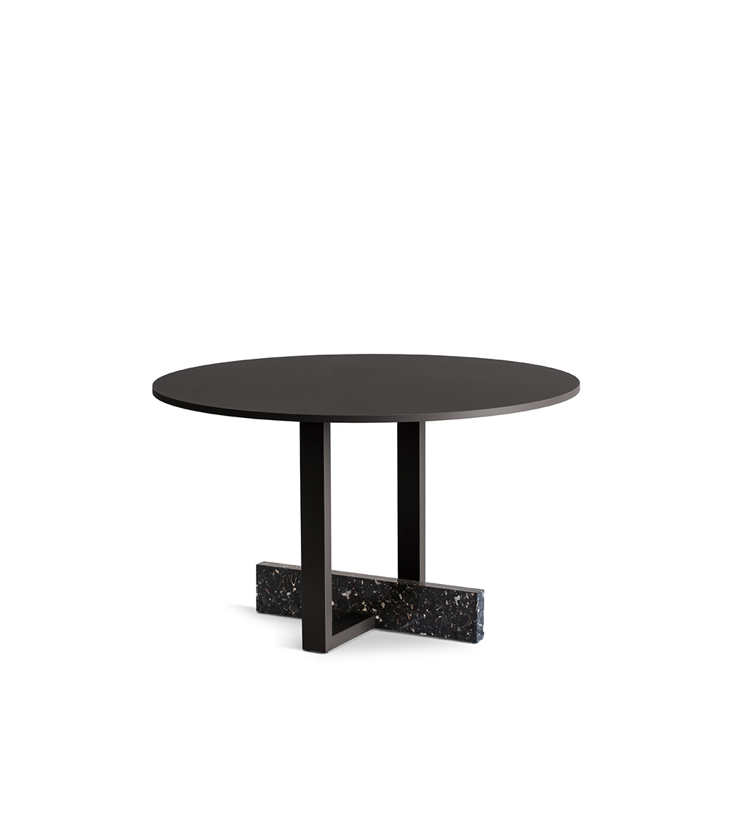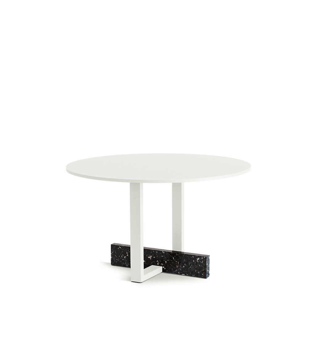 Dizainerių dueto Brogliato Traverso sukurtas apvalus stalas PIED-À-TERRE – taps kiekvienos erdvės akcentu bei socialinio gyvenimo centru. Tvirtas, skulptūriškas perdirbto marmuro pagrindas, dažyto plieno rėmas ir švelnus bei praktiškas laminuotas stalviršis darniai susijungia į akį traukiantį architektūrinį objektą. Suburianti apvali stalviršio forma natūraliai skatina pokalbius, kuria ryšį ir lygiavertiškumą tarp susėdusiųjų, jį lengva komponuoti erdvėje.