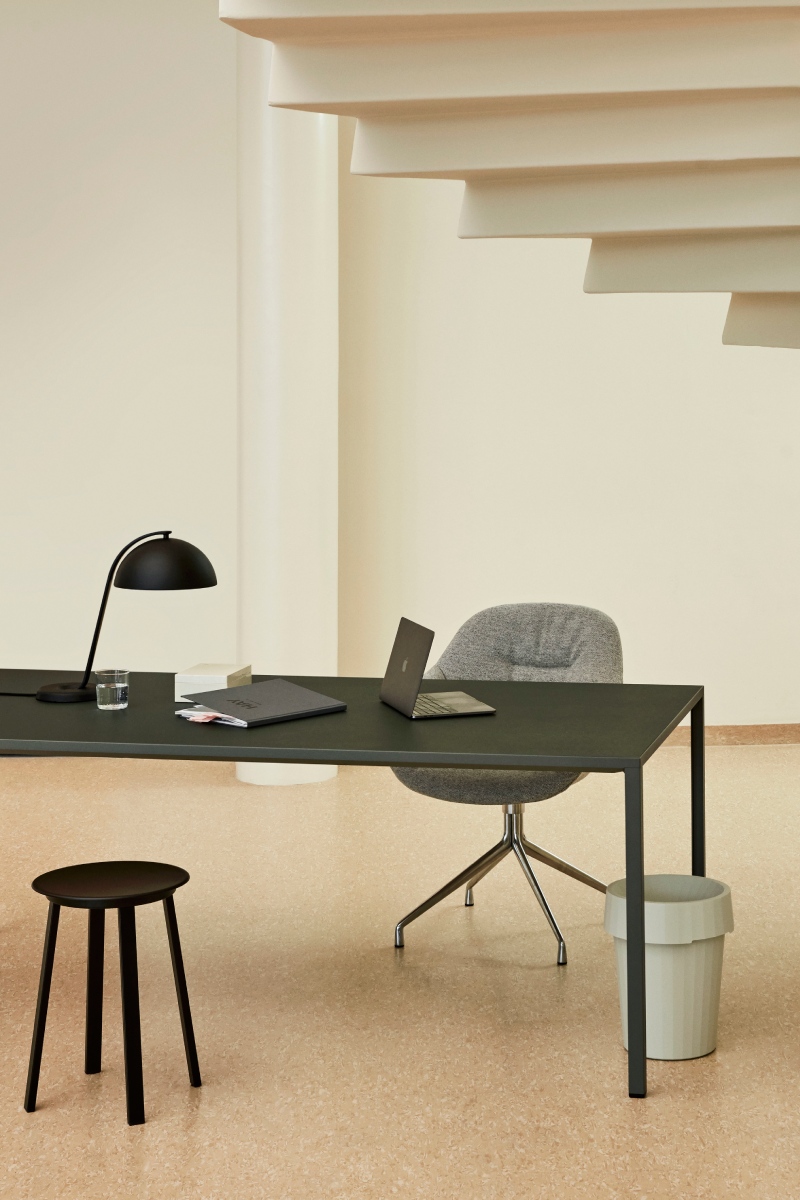 REVOLVER šeimos narys – REVOLVER STOOL. Žemesnėje versijoje guolis yra įmontuotas tiesiai po sėdyne, leidžiantis judėjimą aplink savo ašį. Daili, šiek tiek įgaubta sėdynė bei tvirtos, it stygos tiesios kojelės garantuoja stabilumo pojūtį kūno kalbos sūkuryje. Proporcinga, tvirta ir skirta tarnauti žmogui, REVOLVER kviečia prisėsti gyvam pokalbiui.