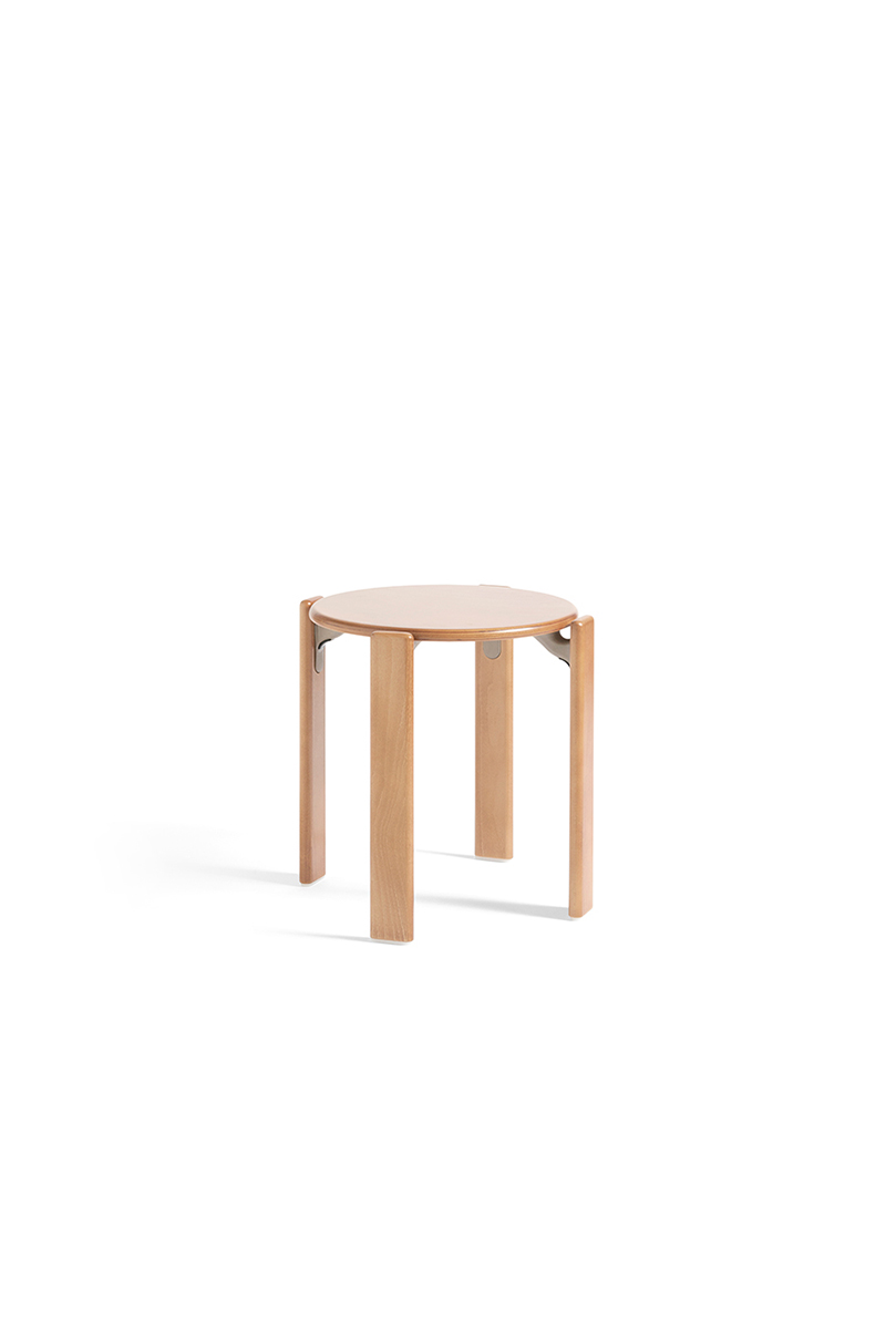 Gaminama iš natūralios buko medienos, REY STOOL – kolekciją papildžiusi taburetė. Kaip ir kiti serijos objektai, ji gali būti personalizuojama renkantis originalias spalvas.