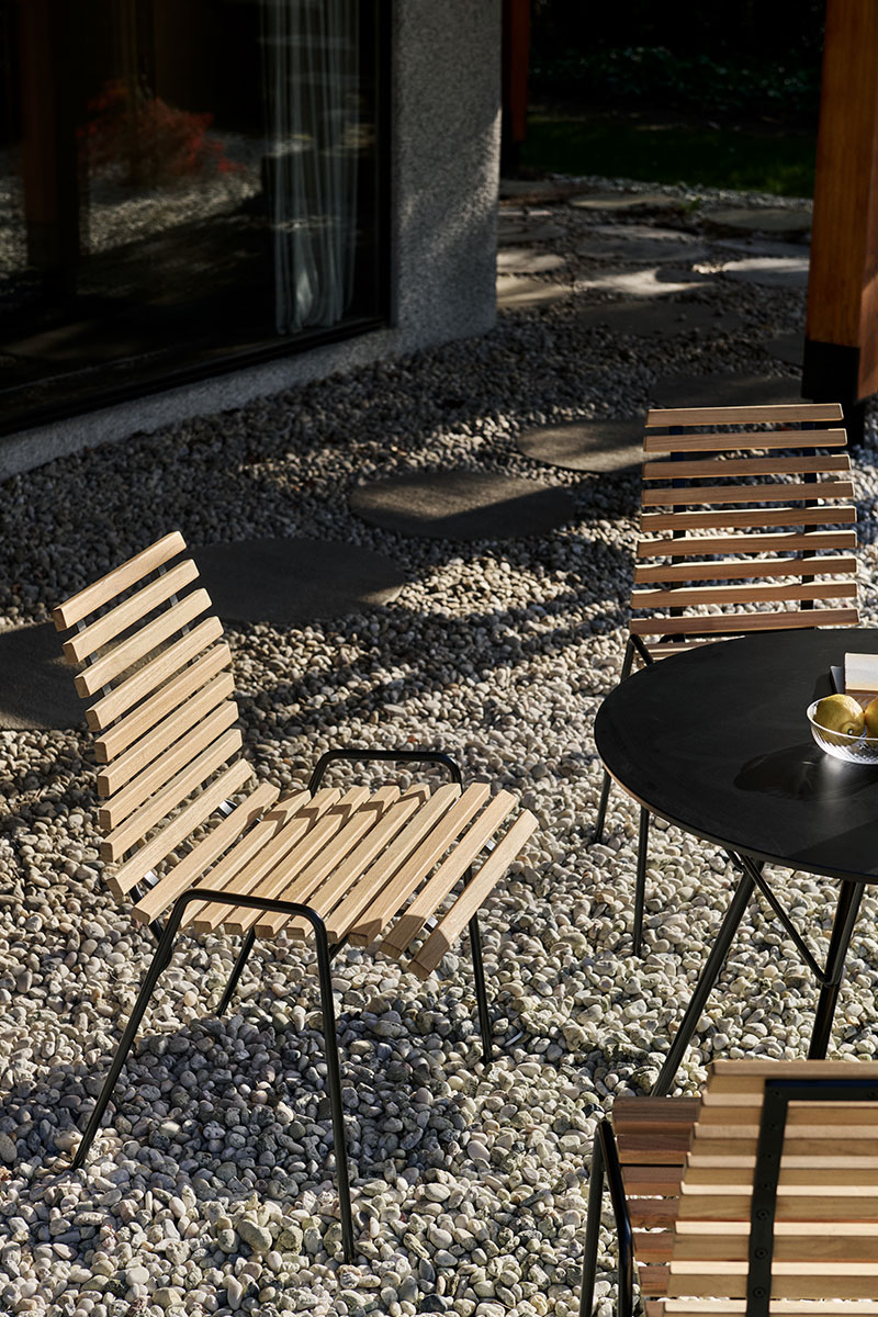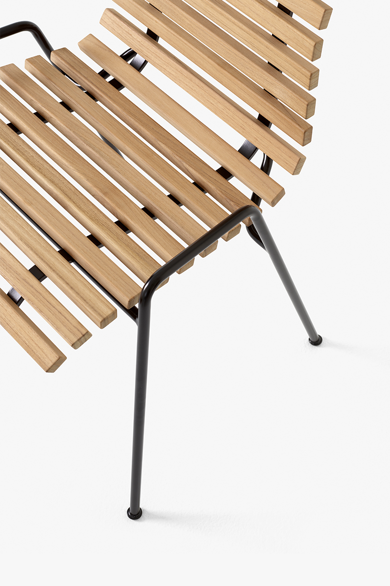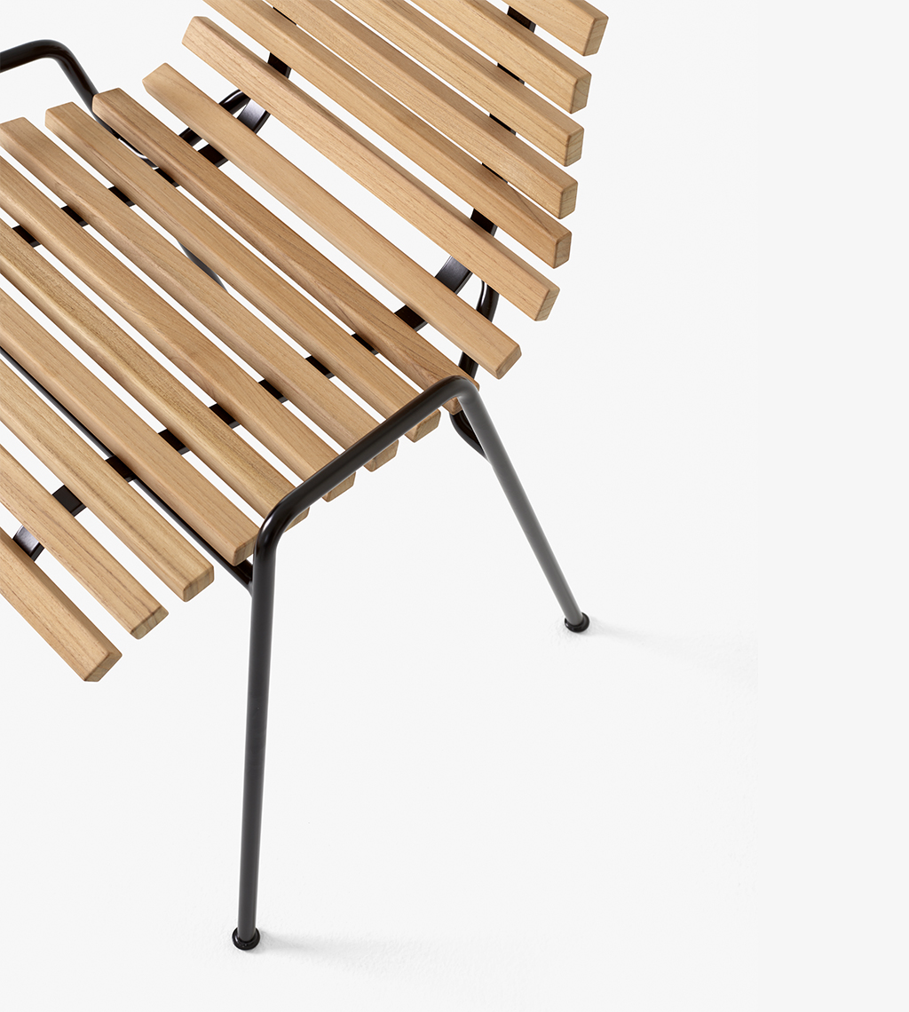 RFH TERRACE CHAIR – žymaus anglų baldų dizainerio Robin Day kūrinys atgimęs &TRADITION rankose. Sukurta 1951m. Londono Karališkosios koncertų salės „Royal Festival Hall“ terasai, kėdė žavi ir šių dienų kontekste. Ši smulkutė, nesudėtingos konstrukcijos kėdė, gaminama iš tikmedžio lentjuosčių, tvirtinamų ant organiškai išlenkto tvirto plieno rėmo – ypač puikus pasirinkimas siekiant kuo efektyviau išnaudoti nedideles lauko erdves.