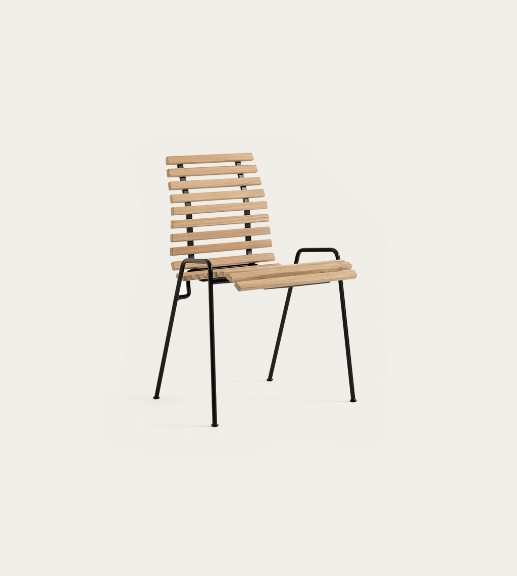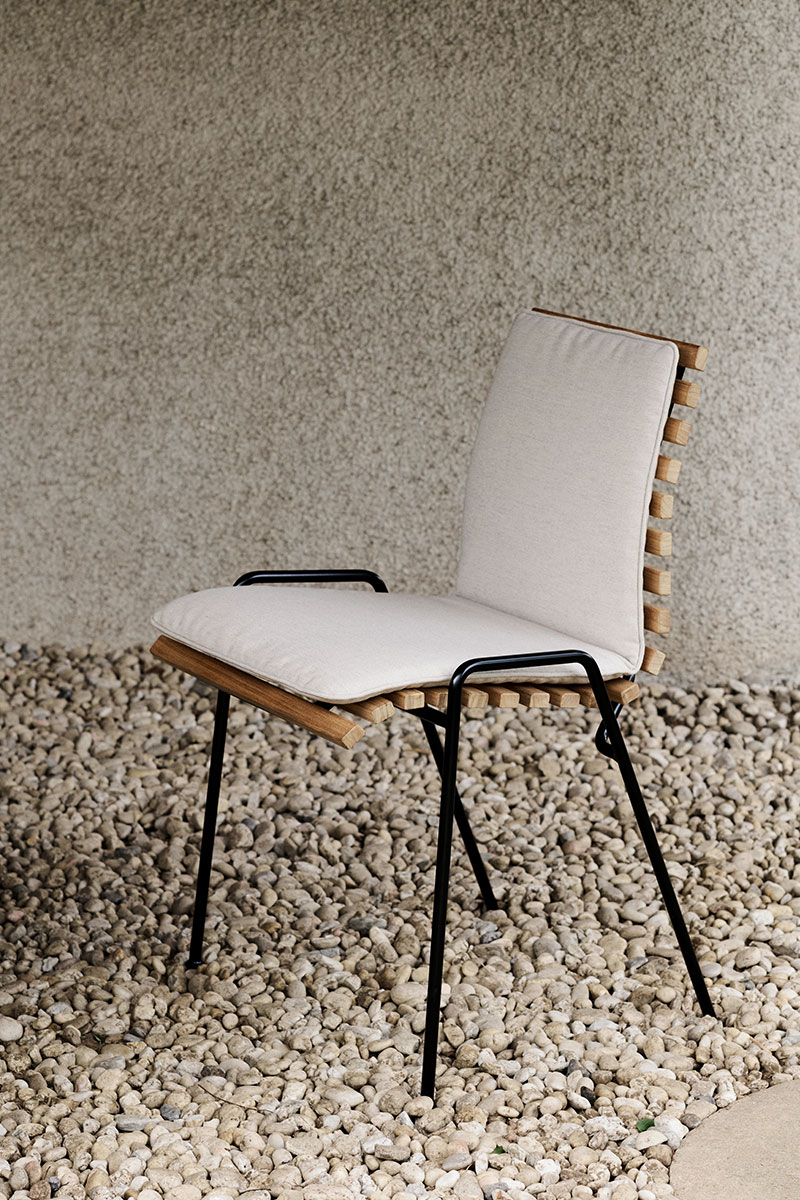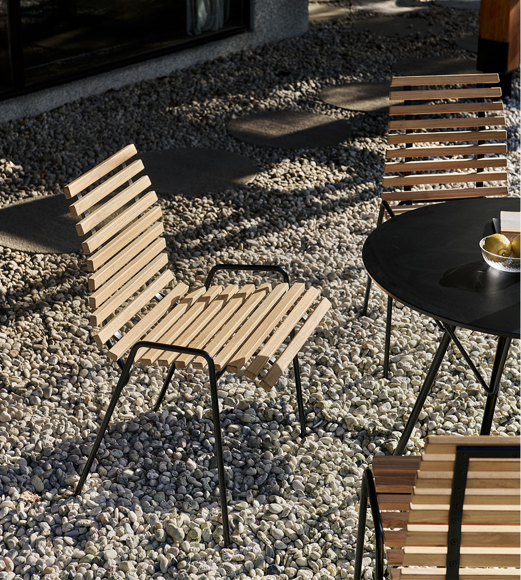 RFH TERRACE CHAIR – žymaus anglų baldų dizainerio Robin Day kūrinys atgimęs &TRADITION rankose. Sukurta 1951m. Londono Karališkosios koncertų salės „Royal Festival Hall“ terasai, kėdė žavi ir šių dienų kontekste. Ši smulkutė, nesudėtingos konstrukcijos kėdė, gaminama iš tikmedžio lentjuosčių, tvirtinamų ant organiškai išlenkto tvirto plieno rėmo – ypač puikus pasirinkimas siekiant kuo efektyviau išnaudoti nedideles lauko erdves.